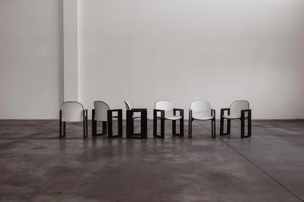 Afra & Tobia Scarpa "Dialogo" Chairs For B&b Italia, White, 1973, Set Of 6