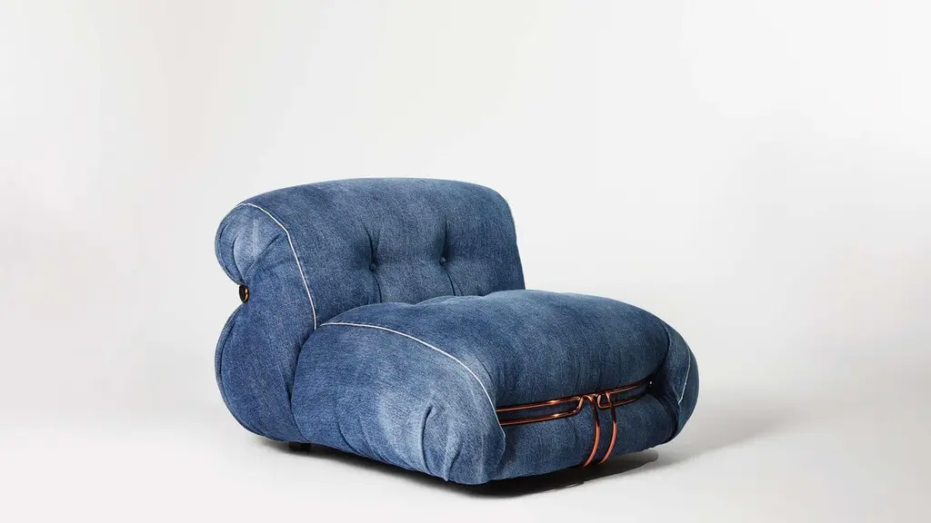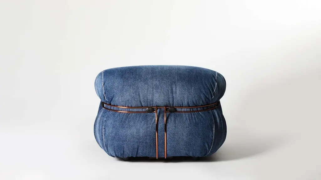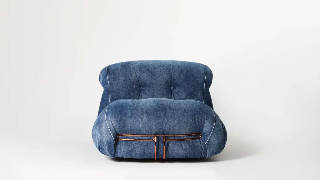 Afra And Tobia Scarpa Roy Rogers Denim Soriana Armchair Manufactured by CassinaDENIM REFINEMENT BY DESIGNThe iconic contours of Soriana, the armchair by Afra & Tobia Scarpa, Compasso d’Oro award-winner in 1970, come together with the most prized jeans fabric to produce an exclusive piece that fuses fashion and furniture.Soriana in denim crafted by Roy Roger's is produced with Japanese selvedge denim of the highest quality. A fabric made of special long-fibre American cotton woven only on traditional shuttle looms, original in the 1960s, it features a white border with a red thread, known as the selvedge, that keeps it from fraying.Jeans from the historic Roy Roger's archive inspired the armchair upholstery and the stone-wash effect and hand-fading that run along the folds. The large metal brace that embraces the fabric is made of copper, the rivet material used in the 5-pocket jeans.STRUCTURESacks filled with BioFoam® microspheres, copper brace.PADDINGRecycled blown PET fibre, recovered by Plastic Bank®UPHOLSTERYRoy Roger's selvedge denimThe iconic contours of Soriana, the armchair by Afra & Tobia Scarpa, designed in 1969 and awarded the Compasso d'Oro the following year, come together with the most prized denim to produce an exclusive piece that fuses fashion and furniture. Developed with the first Italian blue jeans brand, Soriana in denim crafted by Roy Roger's is produced with Japanese selvedge denim of the highest quality. A fabric made of special long-fibre American cotton woven only on traditional shuttle looms, original in the 1960s, it features a white border with a red thread, known as the selvedge, that keeps it from fraying. Jeans from the historic Roy Roger's archive inspired the armchair upholstery – stone-wash effect and hand-fading run along the folds of the upholstery, highlighting the soft, enveloping design – while the large metal brace that embraces the fabric and gives it shape, is made of copper, the rivet material used in the 5-pocket jeans. Soriana washed/styled by Roy Roger's has a conscious soul. Thanks to the work carried out by Cassina LAB, the structure is composed of a series of sacks filled with BioFoam® microspheres – the first patented organic-based foam composed of biopolymers derived from natural sources – a durable, biodegradable material, compostable at the end of its life cycle. Comfort is ensured by padding made from recycled blown PET fibre recovered by Plastic Bank®, the same material used to pad the slipcover that envelops the internal structure like a soft quilt.Important information regarding images of products:Please note that some of the images show other colors and variations of the model, these images are only to present interior design proposals. The item that is selling is on the first image. Important information regarding color(s) of products:Actual colors may vary. This is due to the fact that every computer monitor, laptop, tablet and phone screen has a different capability to display colors and that everyone sees these colors differently. We try to edit our photos to show all of our products as life-like as possible, but please understand the actual color may vary slightly from your monitorAbout the manufacturer:In a continuing dialogue between past, present, and future, Cassina has created the I Maestri collection, revisiting furnishing designs by the twentieth century’s best-known architects, including Le Corbusier, Pierre Jeanneret, Charlotte Perriand, Charles Rennie Mackintosh, Gerrit Thomas Rietveld, Franco Albini, Frank Lloyd Wright and Marco Zanuso. While the designs and functional concepts have been precisely preserved, the models have been manufactured using evolved technology. This is also the company that has manufactured iconic pieces of contemporary design from the 1950s to the present day, ideated by some of the most important international designers. Today Cassina continues to look to the future of design with audacious, passionate curiosity and an open, holistic approach. It affirms its exclusive ability to furnish a home’s living and dining spaces completely and iconically with The Cassina Perspective: a concept, a philosophy, an informed, futuristic thought. A detailed, expansive horizon of combinations; when placed together, the products have an innovative soul and the modern icons create authentic, welcoming, personal atmospheres involved in a conversation dominated by a code of design excellence, formal sensitive awareness, solidity and cultural authority.