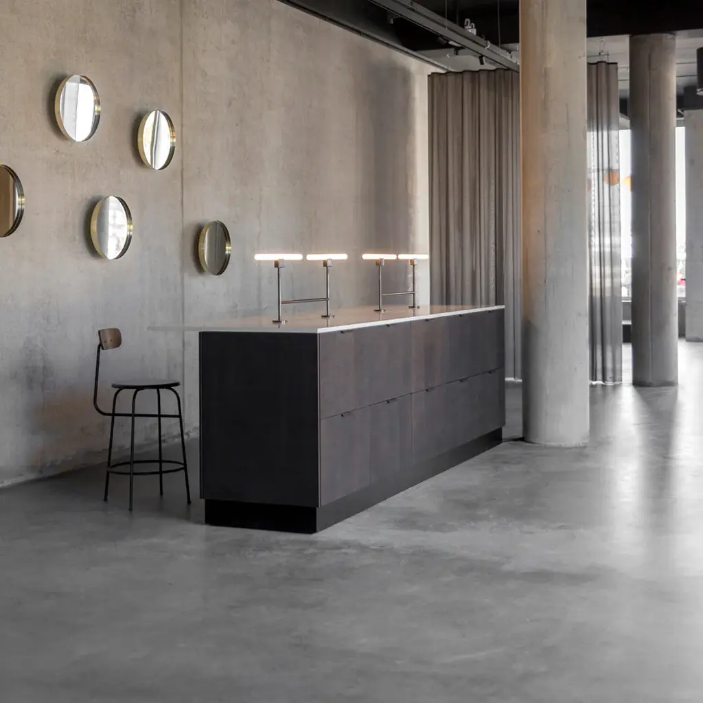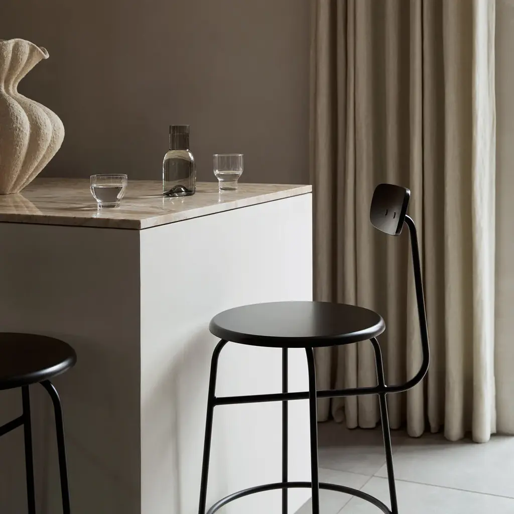 A study of unity between functionalism and minimalism, the Afteroom Stool is the ultimate expression of the Bauhaus-inspired Afteroom series. It is a stool cut back to the absolute necessities, yet it still operates as an integral part of an overall space, adding strong, clean lines to any room. The Afteroom Stool is rendered in black Powder-Coated steel and comes with or without an upholstered seat. The stool is available in three heights, a stool, counter stool and bar stool, making it easy to slide up against a bar or keep in the home as small-space or additional seating. In keeping with the original Afteroom chair series, this extension of the hugely popular line is bound to be embraced by those looking to enhance the seating in their commercial or residential spaces. Upholstered and bar-level versions followed. The newly-released Afteroom Stool takes the series a step further, to a place of ultimate minimalism and easy comfort. With clean lines and a sturdy base, the Afteroom Stool is as much at home pulled up to the window of a coffee shop as it is around the dinner table.