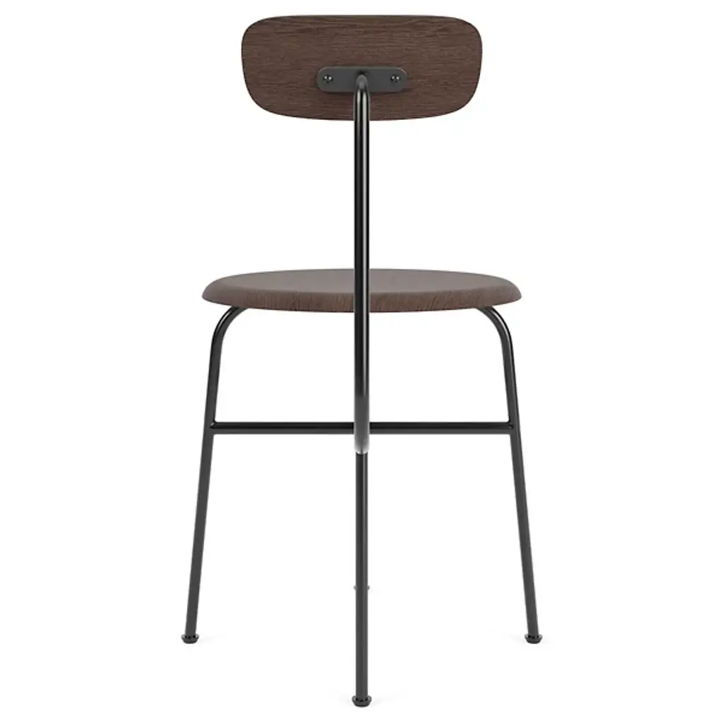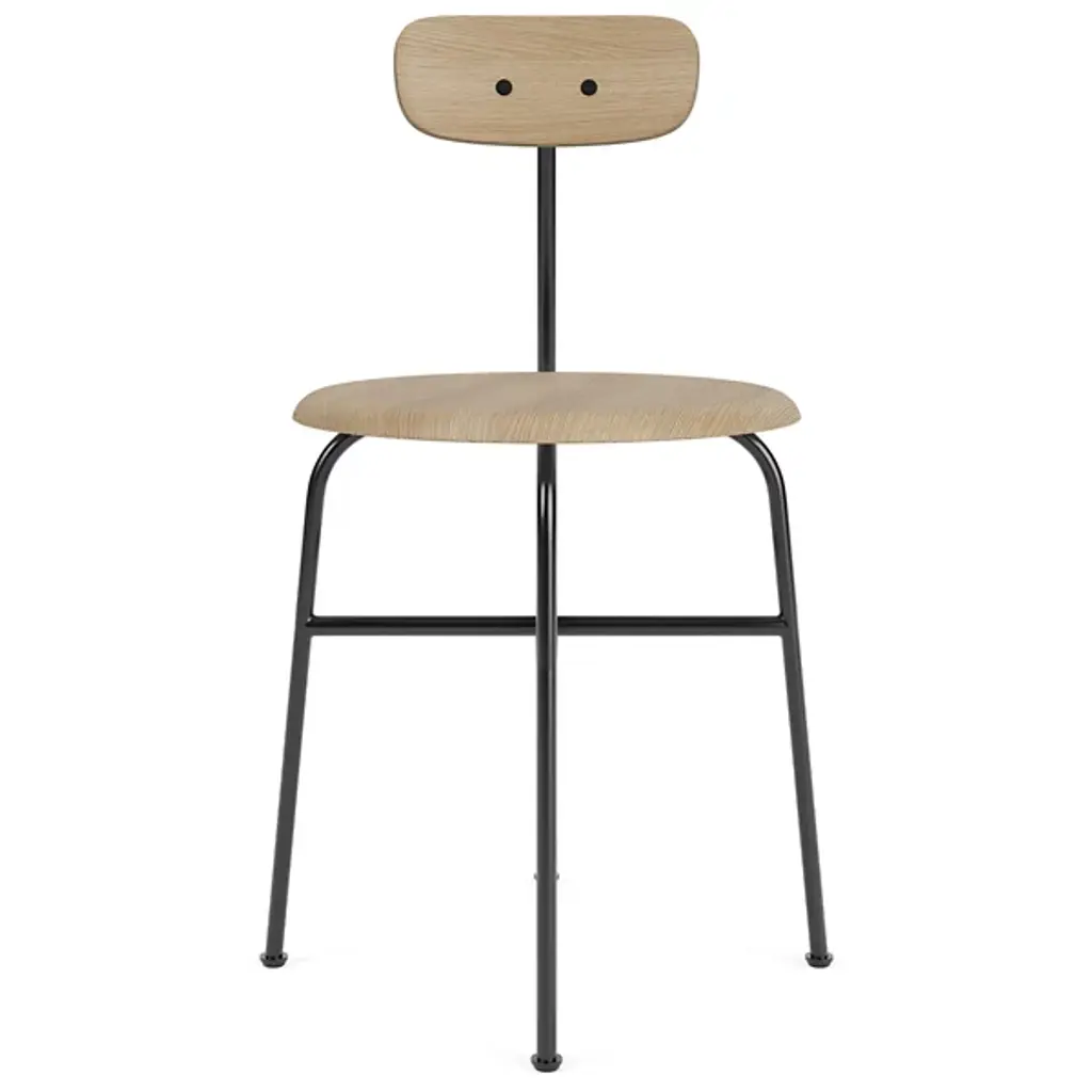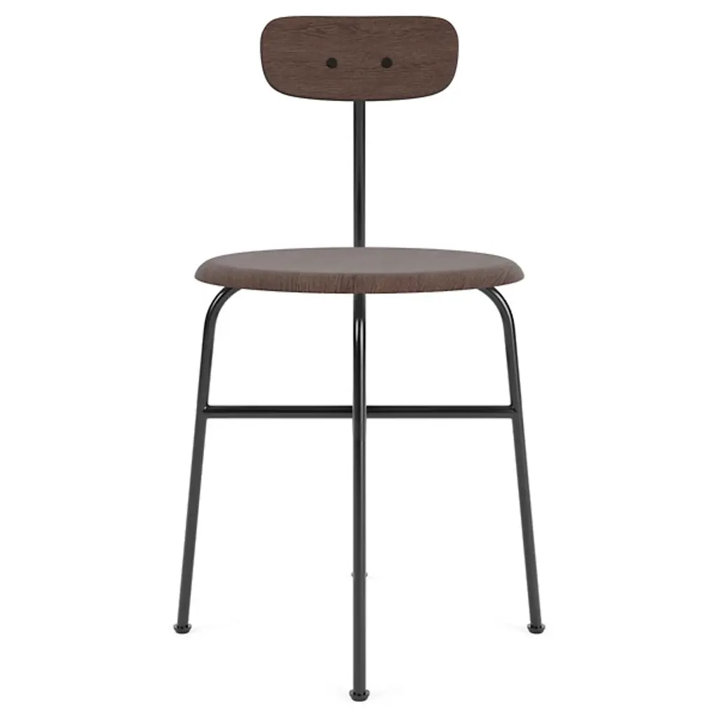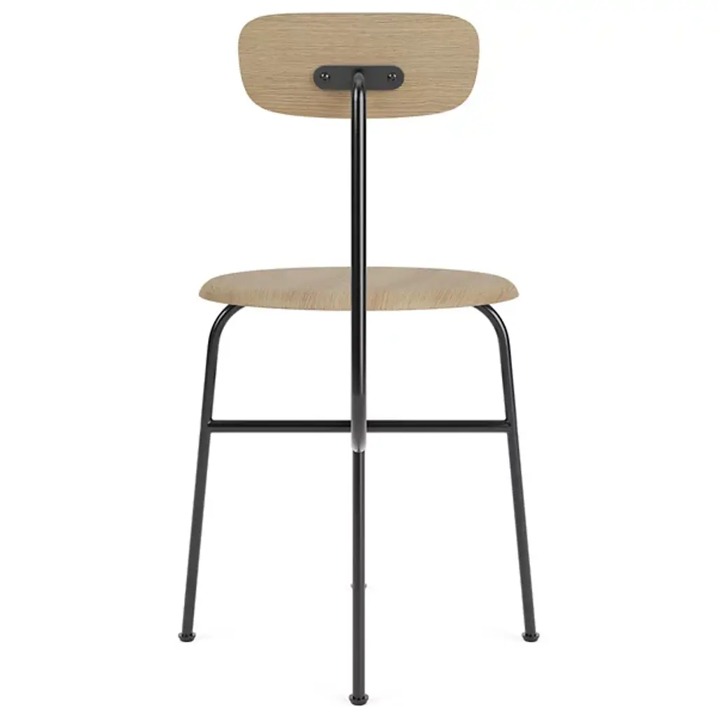 The Afteroom Dining Chair from Audo Copenhagen formerly known as Menu is designed by Afteroom. It evokes the utilitarian, function-first aesthetic and minimalist beauty of the Bauhaus movement. The wood veneer back and seat combine with the sturdy steel frame to provide a thin yet strong base. This Scandinavian-style piece is complemented by exquisite finishing. The framework's elegant contours offer a contemporary aesthetic that makes it highly versatile. Its armless form makes it easy to get in and out of.