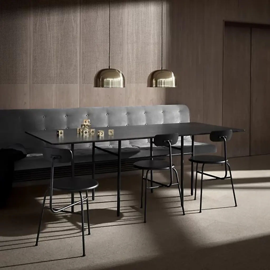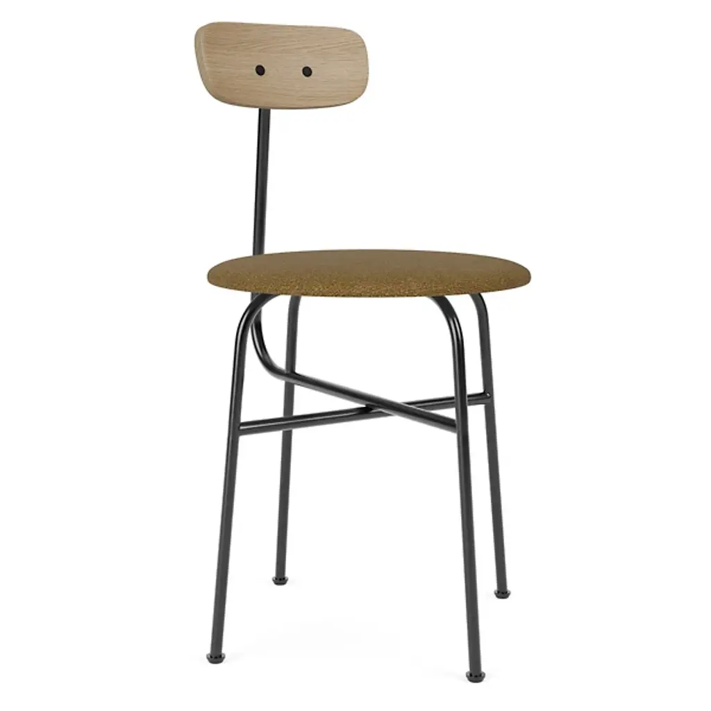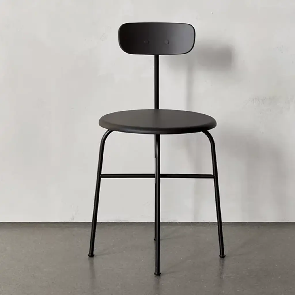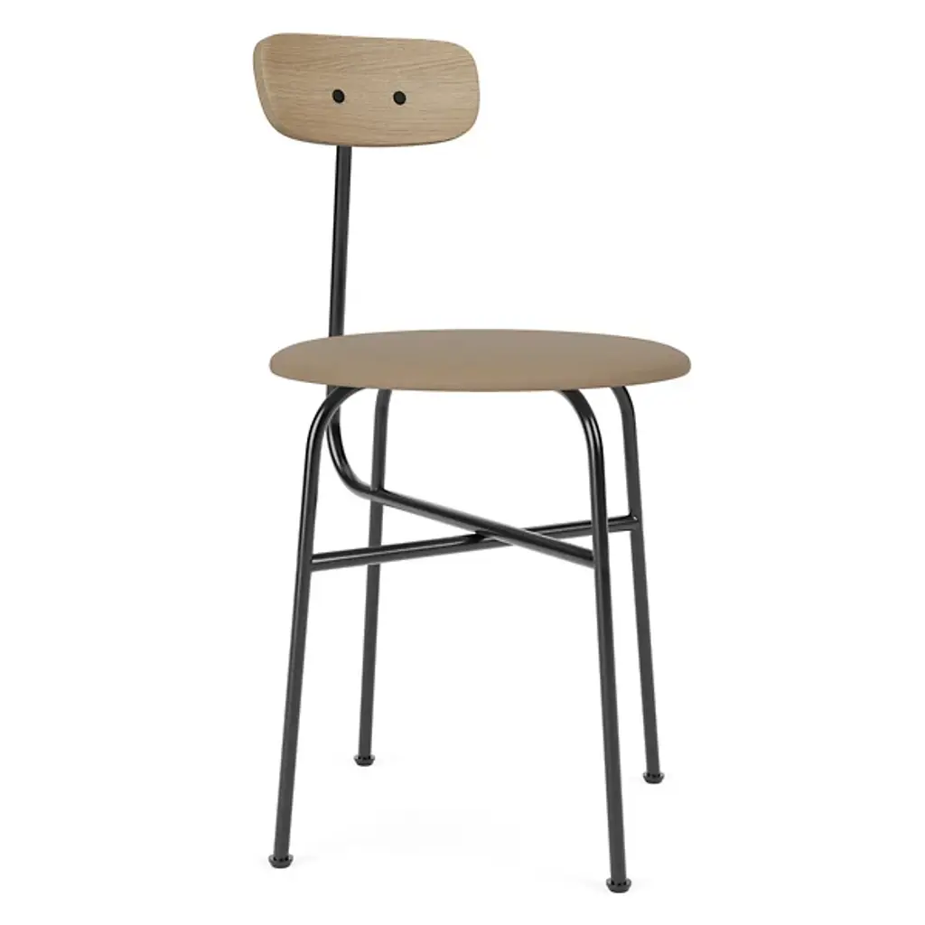 The Afteroom Dining Chair from Audo Copenhagen formerly known as Menu is designed by Afteroom. It evokes the utilitarian, function-first aesthetic and minimalist beauty of the Bauhaus movement. The wood veneer back and seat combine with the sturdy steel frame to provide a thin yet strong base. This Scandinavian-style piece is complemented by exquisite finishing. The framework's elegant contours offer a contemporary aesthetic that makes it highly versatile. Its armless form makes it easy to get in and out of.