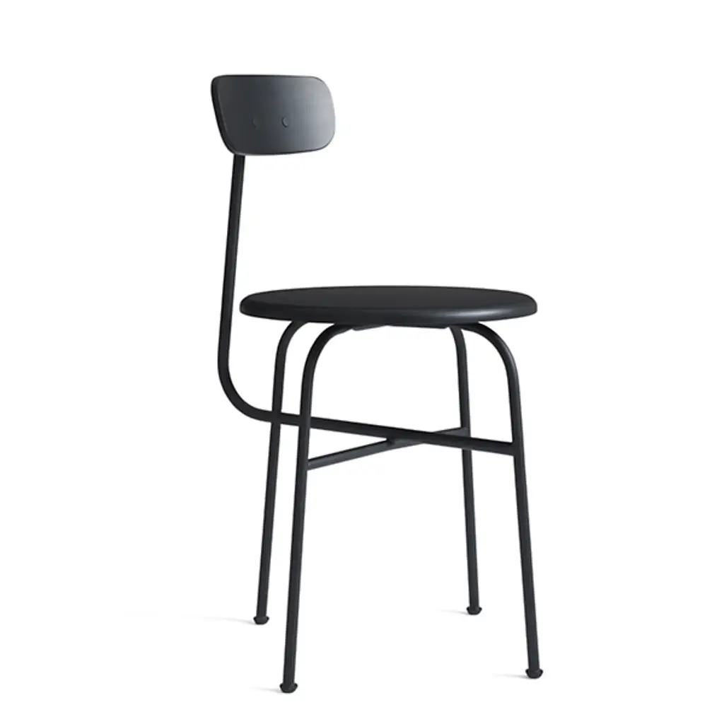 The Afteroom Dining Chair from Audo Copenhagen formerly known as Menu is designed by Afteroom. It evokes the utilitarian, function-first aesthetic and minimalist beauty of the Bauhaus movement. The wood veneer back and seat combine with the sturdy steel frame to provide a thin yet strong base. This Scandinavian-style piece is complemented by exquisite finishing. The framework's elegant contours offer a contemporary aesthetic that makes it highly versatile. Its armless form makes it easy to get in and out of.