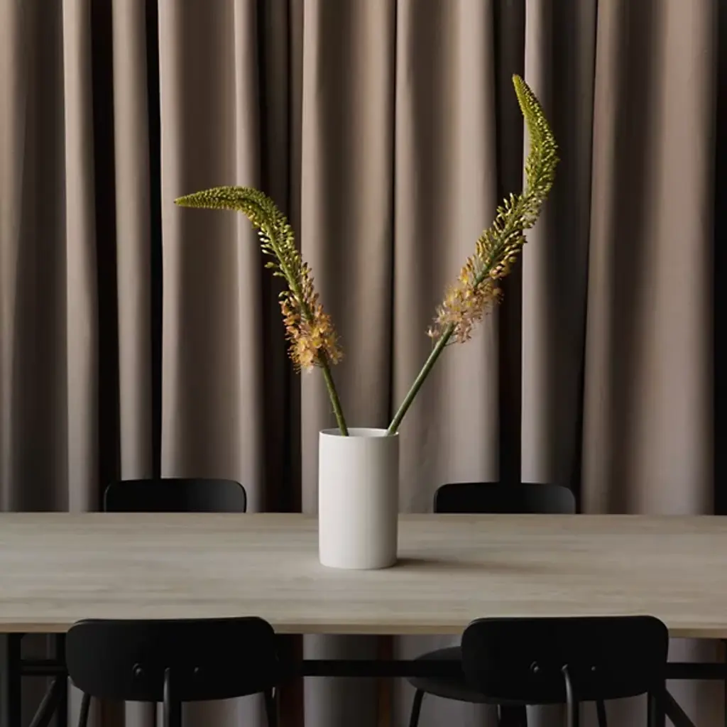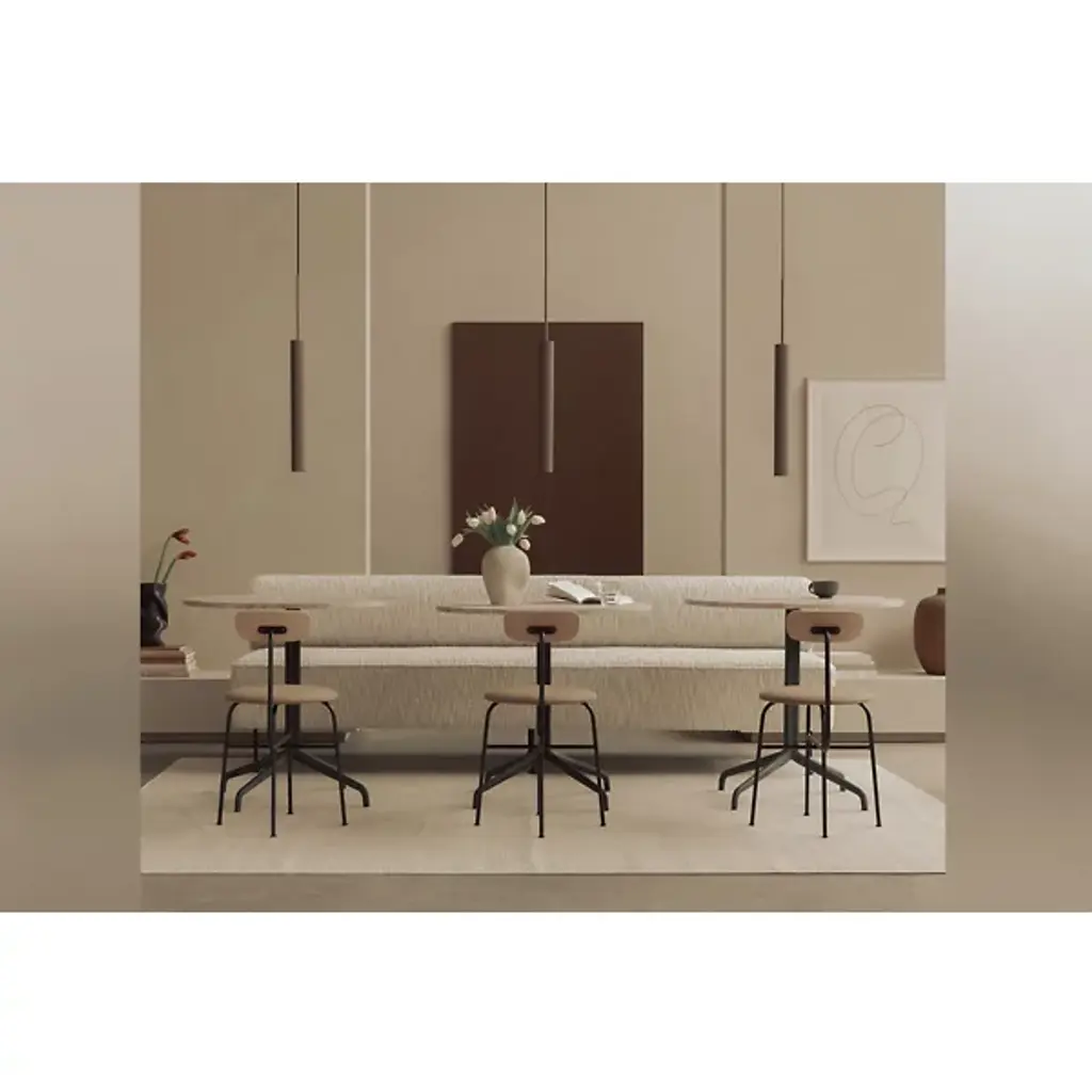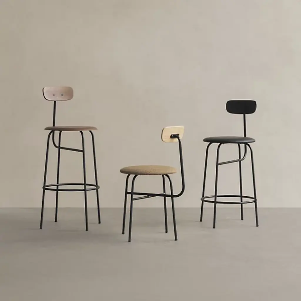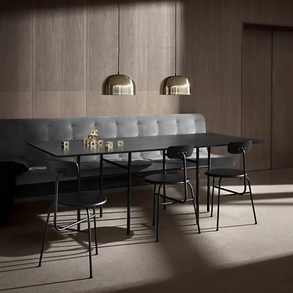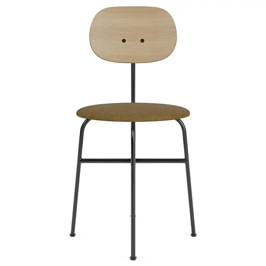 The Afteroom Plus Dining Chair with an upholstered seat from Audo Copenhagen was designed in collaboration with Afteroom Studio. The collection features a powder-coated tubular steel framework partnered with a wood veneer seatback and upholstered seat for added comfort. Scandinavian minimalism radiates from this magical combination of gently curved steel, wood and cushioning.