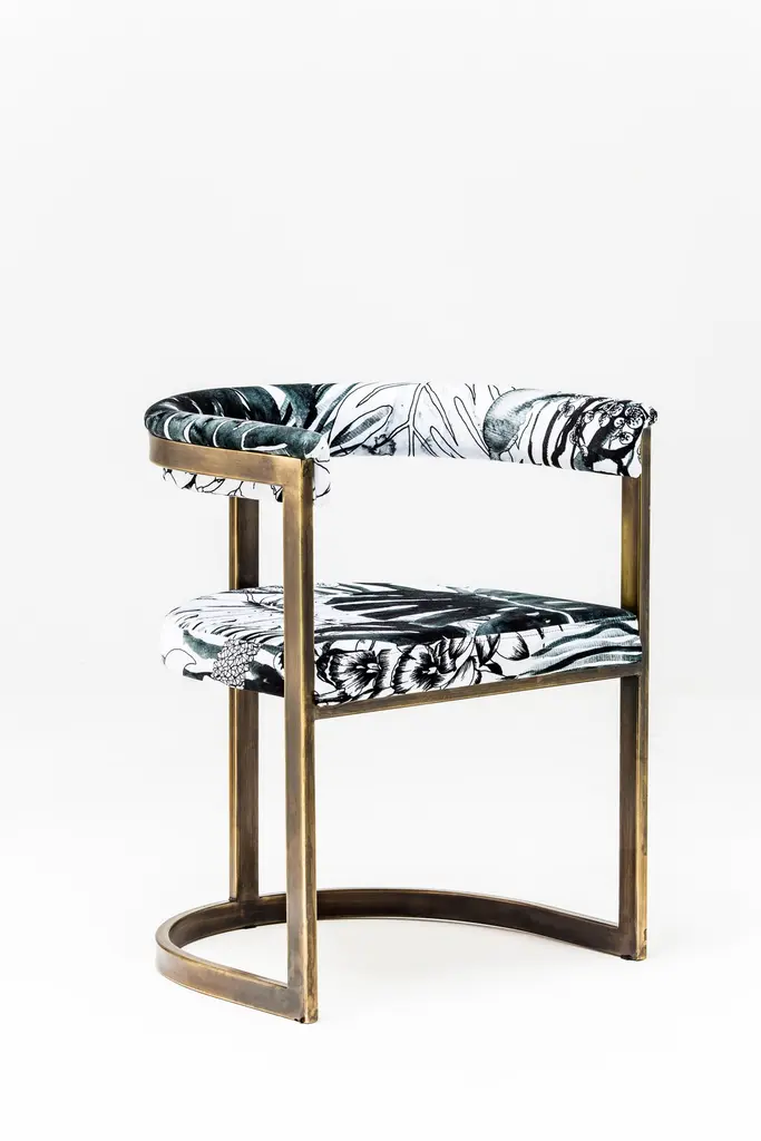 Agate dining chair by Egg DesignsDimensions: 56 L X 50 D X 70 H cmMaterials: Bronze coated steel, upholsteryFounded by South Africans and life partners, Greg and Roche Dry - Egg is a unique perspective in contemporary furniture inspired with a soul that’s deeply rooted in the African continent.We believe Egg has a distinctive African design dialect.We dream that our products will not only be judged by their function and form, but by the beauty of their eternal narrative.In everything we create we must answer the question, “Is it Egg enough?”Egg, is a spirited blend of heritage, passion, meaning and African soul. It stands the test of time. It’s curiosities that make you smile. It’s love and truth that can be seen from afar and equally found in the minutest details. That’s why every piece we craft comes from Africa and carries within it a part of the African soul. We’re a melting pot of tribal craft, African heritage and modern luxurious expression.“If it’s not Egg enough, it’s not worth doing!”We have widened the prism of contemporary African design in Modern Antiques, high-end Furniture, lighting and custom interiors inspired by an African provenance for a modern, international customer.