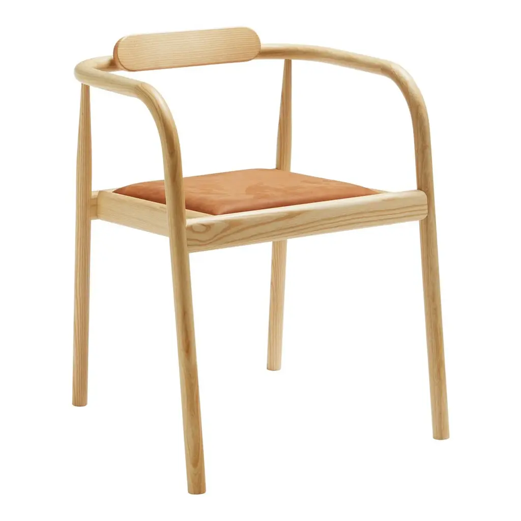 Stacking Capacity: 4 Chairs Shaped in curves from three pieces of interconnected wood, the eponymous AHM chair combines the sleek lines of early-'50s Danish design with a contemporary angle. Each natural ash wood piece is a subtle mix of straight and curved, and a versatile addition to home, office or public space. Light, elegant, tactile, stackable, practical. Natural ash, Navy Blue, Ash Grey, Indian Red or Black, with a seat of classic wooden cane or upholstered. Beautiful, functional, organic, and with a smooth and stylish character that can enhance your personal space or add flavor to a restaurant, cafe or corporate setting.