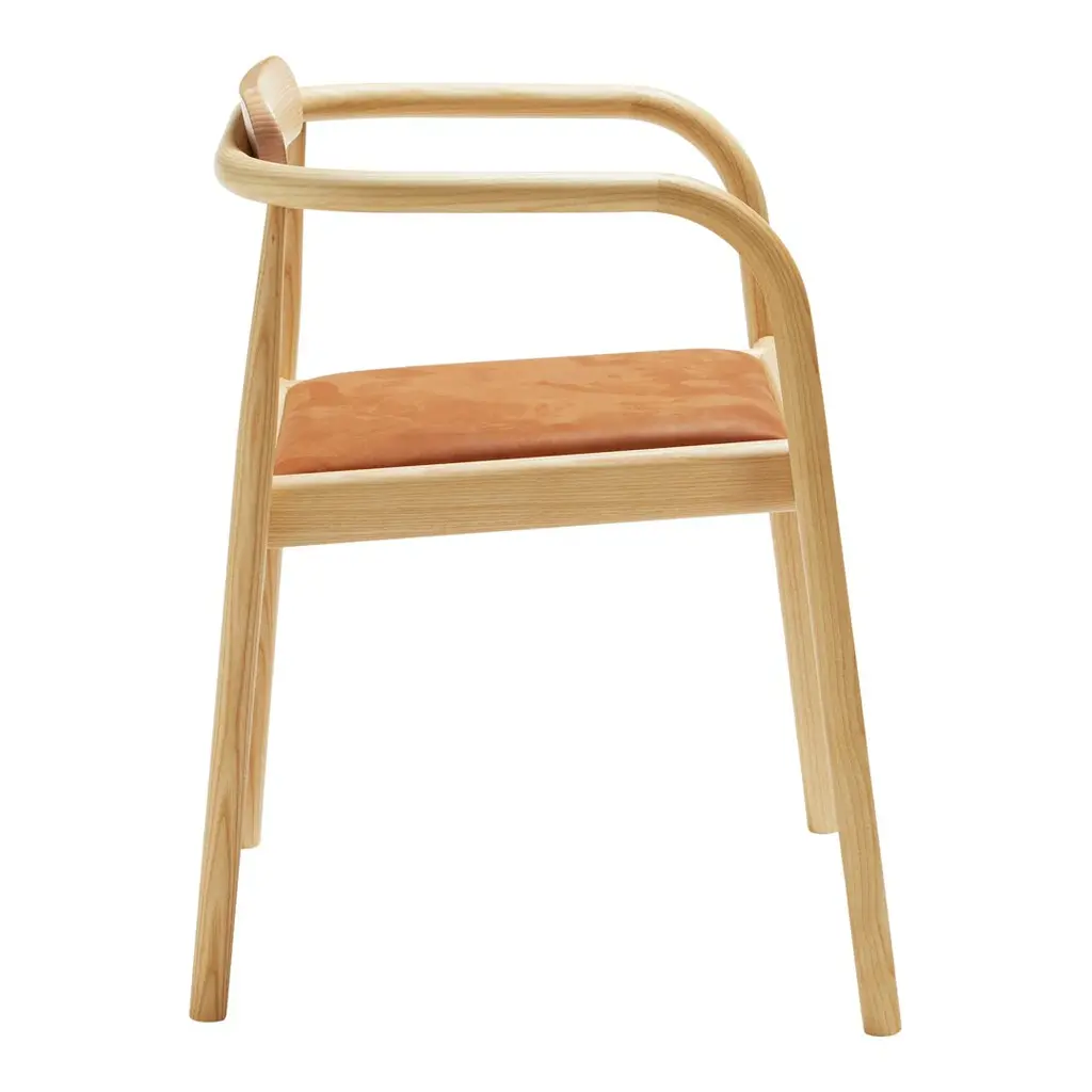 Stacking Capacity: 4 Chairs Shaped in curves from three pieces of interconnected wood, the eponymous AHM chair combines the sleek lines of early-'50s Danish design with a contemporary angle. Each natural ash wood piece is a subtle mix of straight and curved, and a versatile addition to home, office or public space. Light, elegant, tactile, stackable, practical. Natural ash, Navy Blue, Ash Grey, Indian Red or Black, with a seat of classic wooden cane or upholstered. Beautiful, functional, organic, and with a smooth and stylish character that can enhance your personal space or add flavor to a restaurant, cafe or corporate setting.