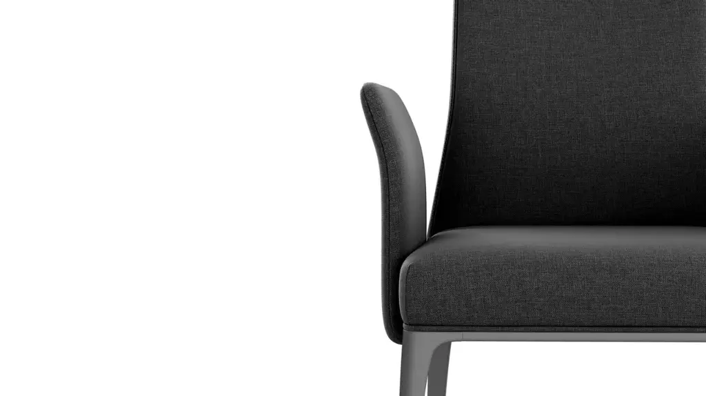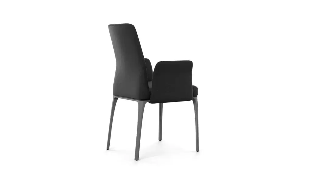 The Aida dining armchair features a sophisticated and sober design. The seat is soft and complimented by an elegantly curved back, coming together with the armrests to create an elegant, fluid look. The thin, tapered beech legs create a feeling of lightness.