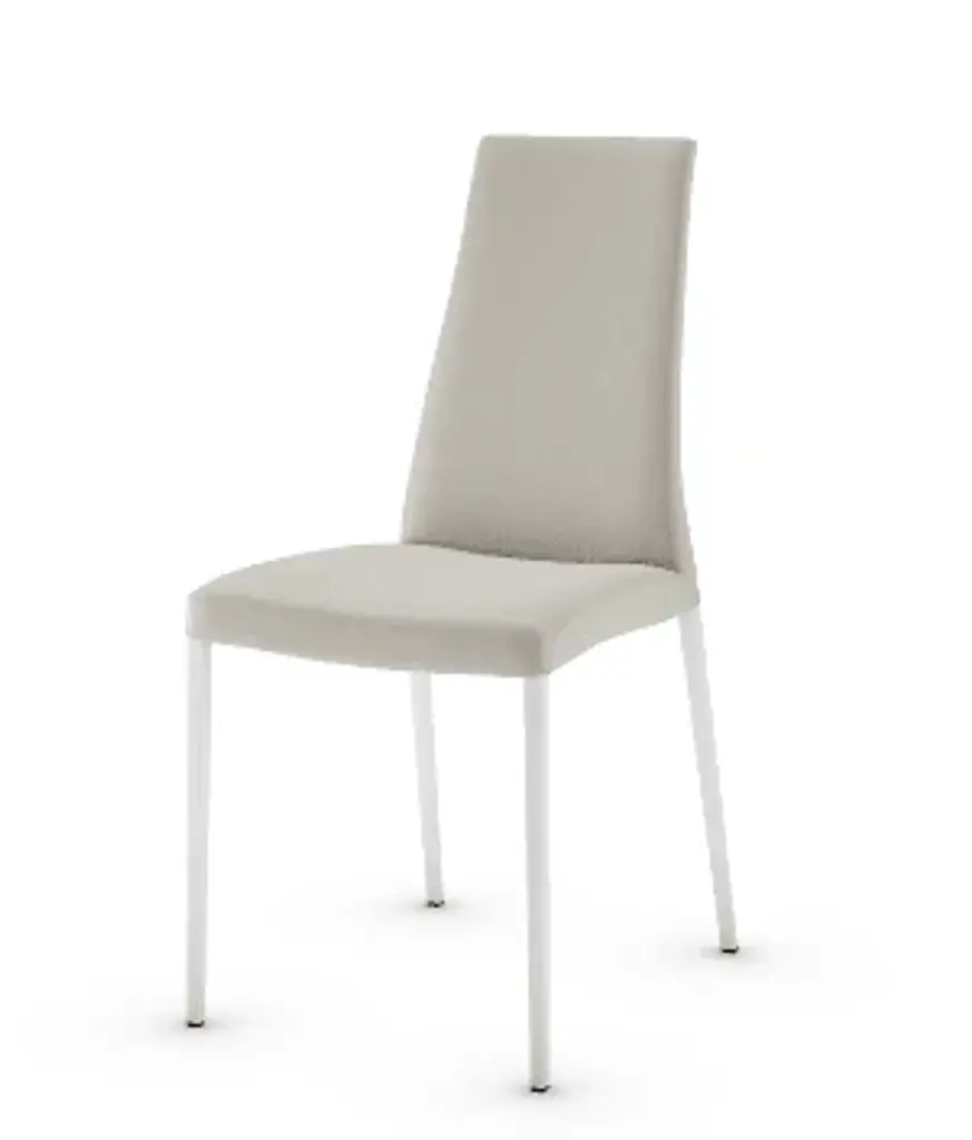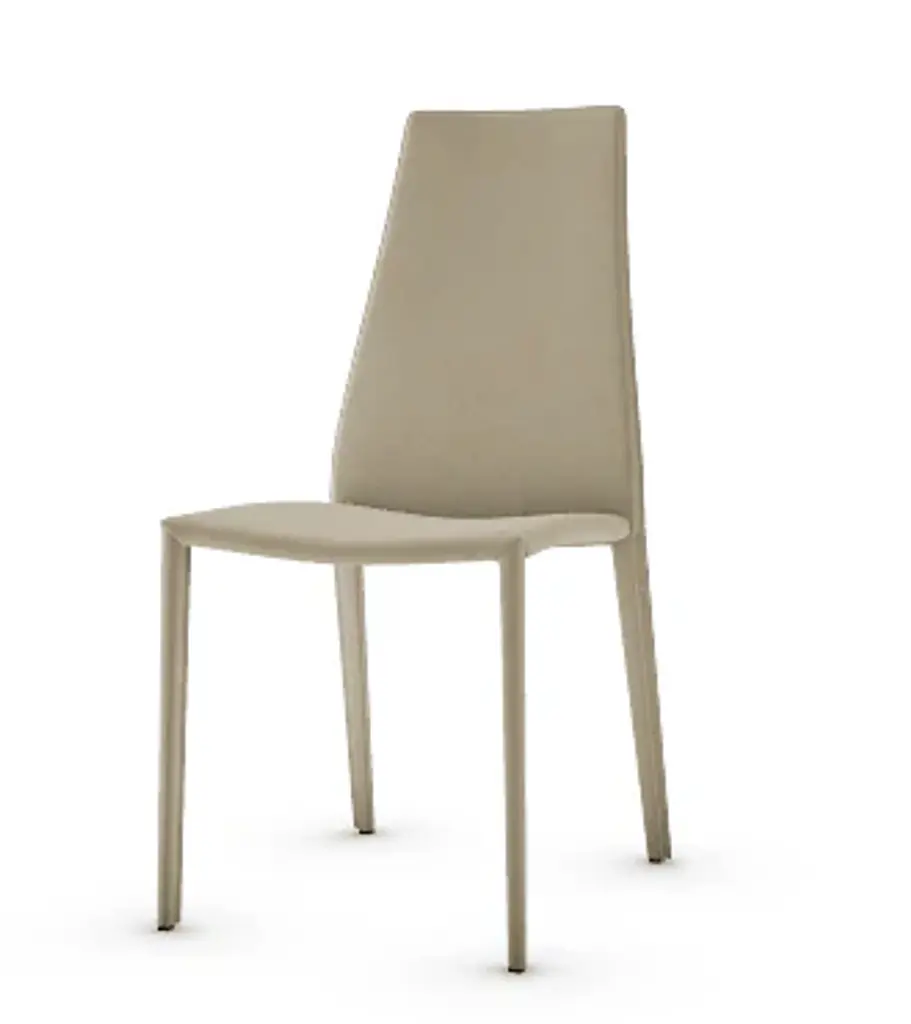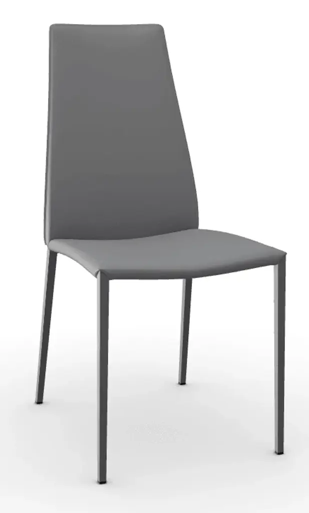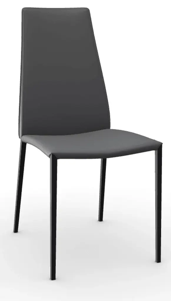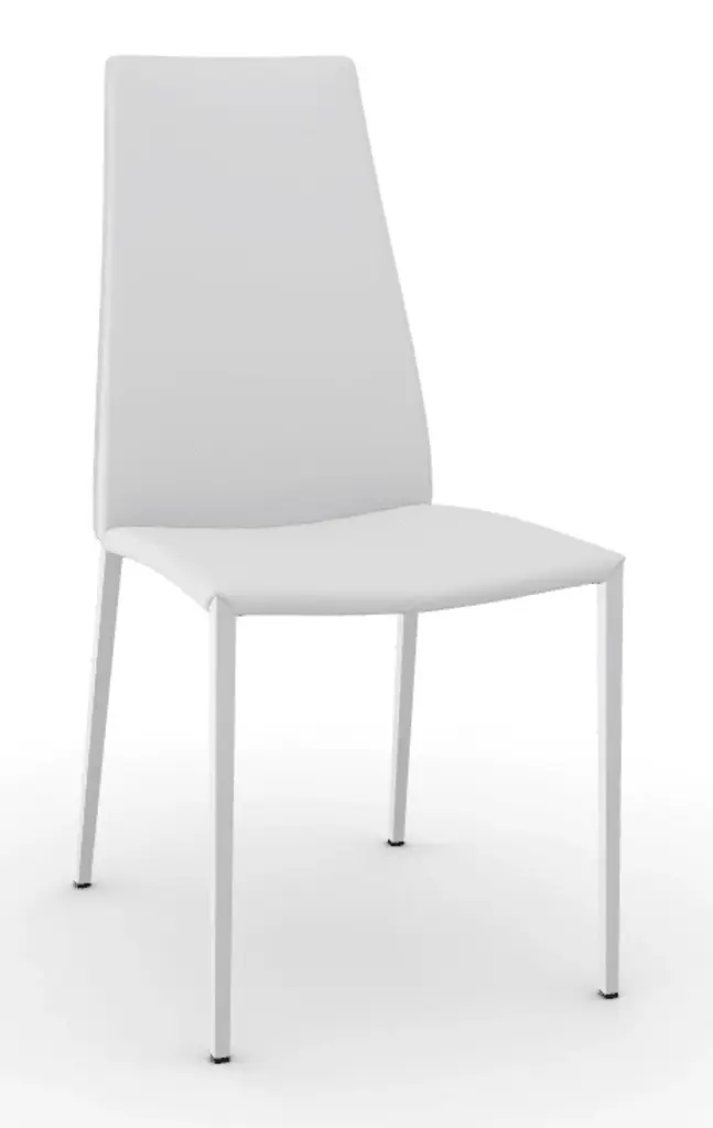 Model AIDA chair, with metal frame and upholstered seat covered in regenerated leather. Boasting a minimalist and elegant design, the AIDA chair stands out for its high backrest and slender line. The 4 legs, thin but resistant, are made of coated metal in the same finish as the seat, a detail of great aesthetic value. A chair that decorates the dining room with elegant personality. Choose the finish that meets your taste. ***Available for quick ship in matte black, matte grey, matte optic white and matte taupe regenerated leather. Lead time for quick ship program is approximately 2-3 weeks. ***Available in various custom order finishes. Please contact your nearest showroom for further details.
