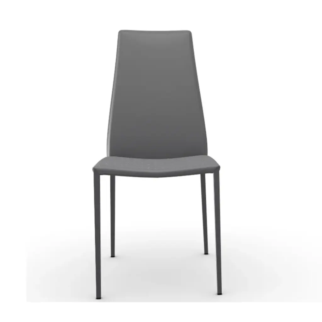 This chair with metal frame and an upholstered seat covered in regenerated leather. Boasting a minimalist and elegant design, the Regenerated Leather Upholstered Dining Chair stands out for its high backrest and slender line. The 4 legs, thin but resistant, are made of coated metal in the same finish as the seat, a detail of great aesthetic value. A chair that decorates the dining room with an elegant personality. Choose the finish that meets your taste.