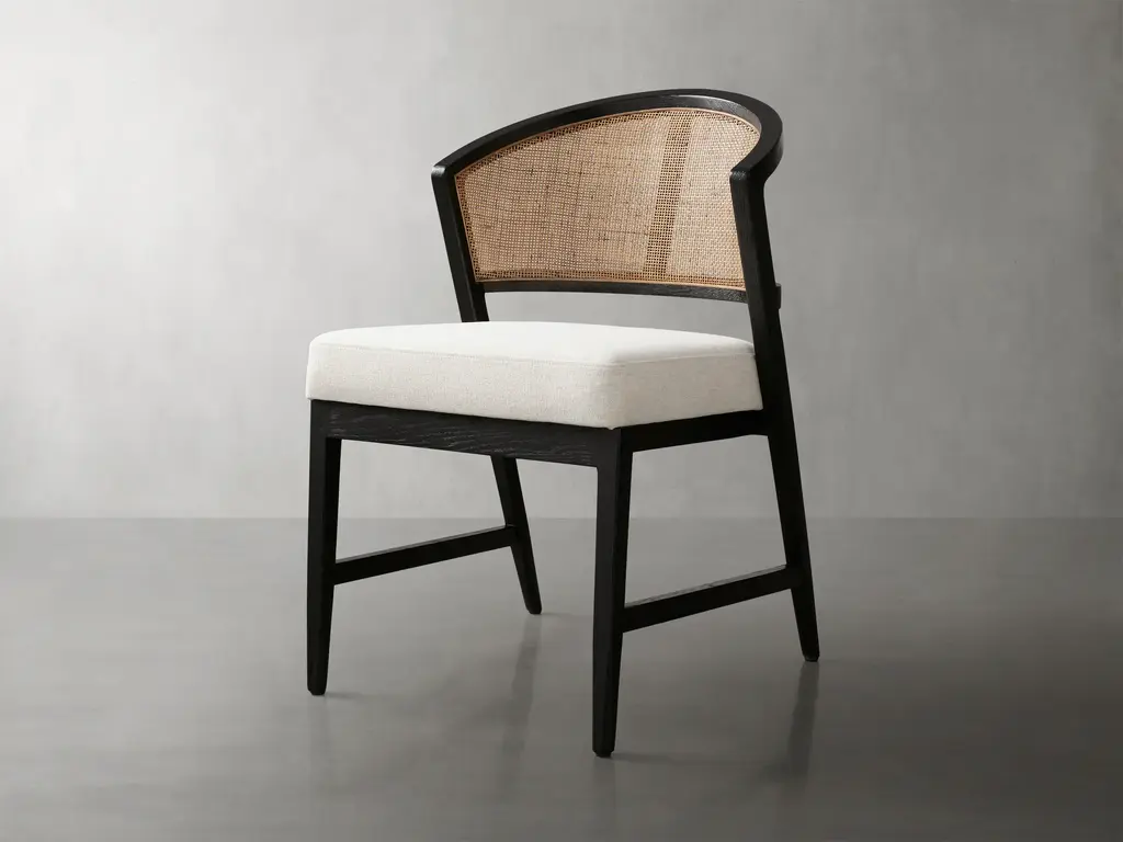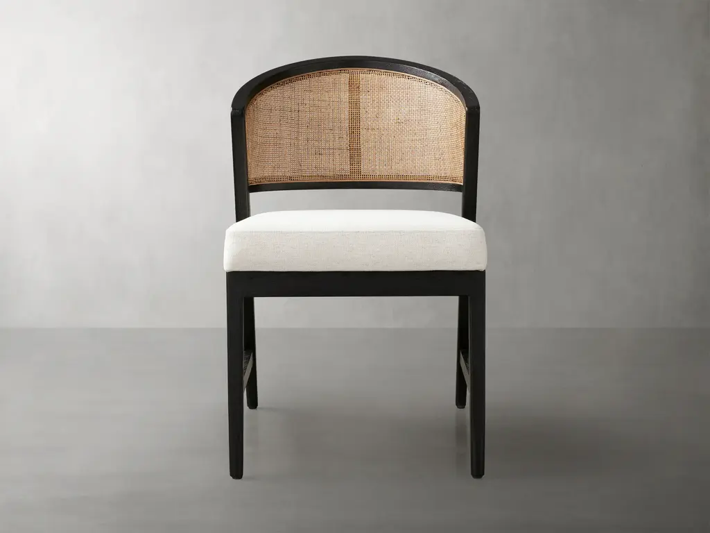 With a softly curved back, rattan caning, and chic flared legs, our Aimee Dining Collection is thoughtfully crafted to capture the styles of both classic French antiques and iconic midcentury modern designs. Each frame is made from solid oak wood paired with a generously upholstered cushion resulting in welcoming comfort that complements any aesthetic.