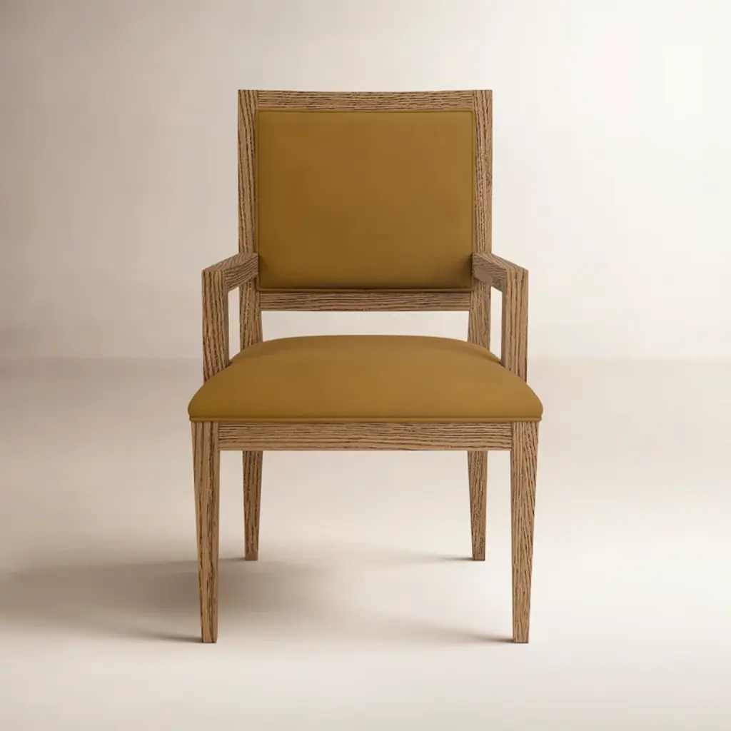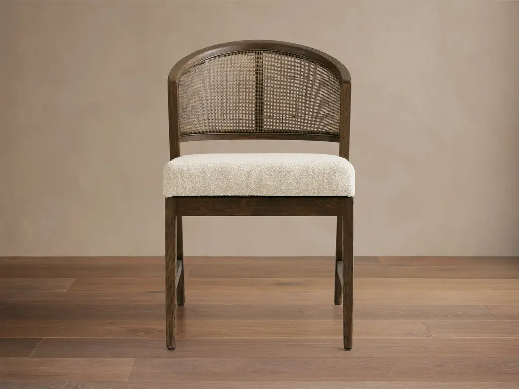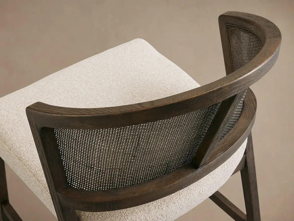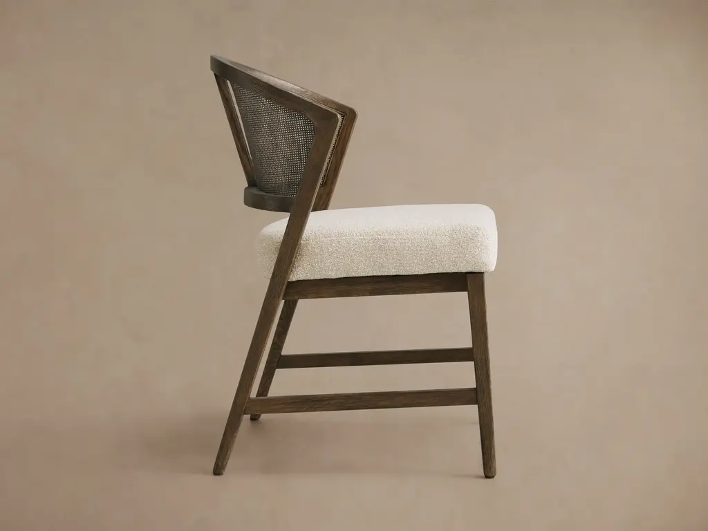 With a softly curved back, rattan caning, and chic flared legs, our Aimee Dining Collection is thoughtfully crafted to capture the styles of both classic French antiques and iconic midcentury modern designs. Each frame is made from solid oak wood paired with a generously upholstered cushion resulting in welcoming comfort that complements any aesthetic.