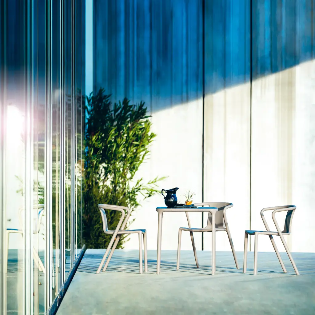 Experience exceptional sophistication and durability with the Air Outdoor Stacking Armchair (Set of 4) from Magis. Crafted from polypropylene using gas-injection molding for enhanced durability and superior strength, these chairs are the perfect choice for indoors and out. Stackable, lightweight, and easy to clean, these dining chairs are ready to take on anything that comes their way. Highlights