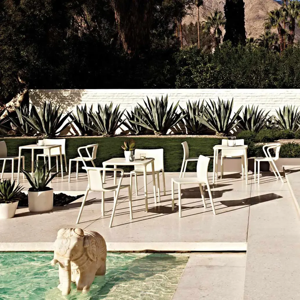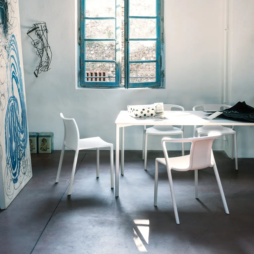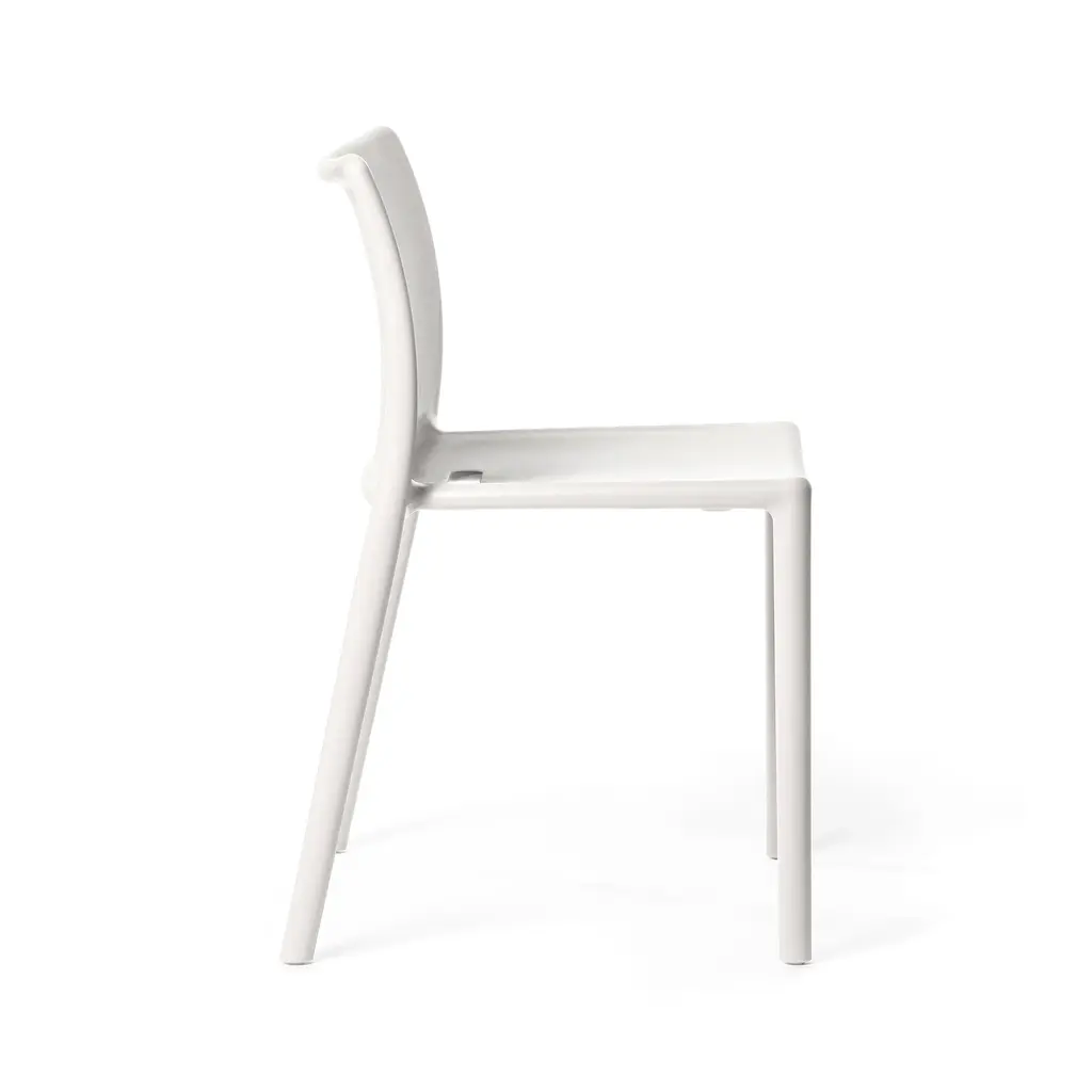 Welcome guests to your dining space with the Air Outdoor Stacking Chair (Set of 4) from Magis. This stackable dining chair offers streamlined sophistication, making it perfect for both indoor and outdoor occasions. Crafted from durable, yet lightweight polypropylene, this set of chairs is designed for maximum practicality, convenience, and easy cleaning. Stackable for easy storage, this chair is ready to be used to its fullest potential. Highlights