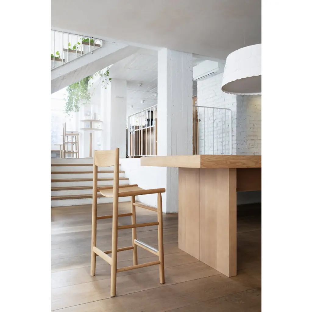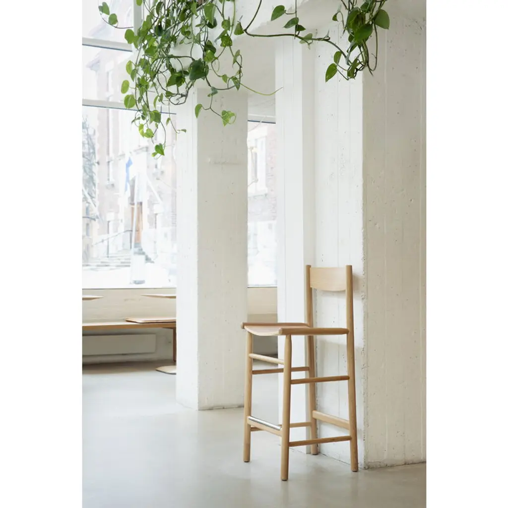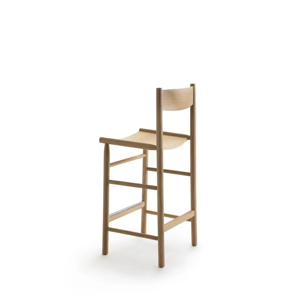 The Akademia High bar chair by Nikari is a harmonious and refined wooden chair designed by Wesley Walters and Salla Luhtasela, also known as Studio Kaksikko. The balanced and organic appeal of the Akademia bar chair draws from Scandinavian design heritage, Japanese esthetics, and the simple, honest Shaker style. Characterized by softly rounded shapes, Akademia High offers the same level of comfort as the dining chair from the series, making it ideal for use in homes, restaurants, hotels and offices alike. As its name suggests, the Akademia chair has academic origins, resulting from Wesley Walters' Master's thesis at Aalto University in Helsinki. Nikari products are made in Finland using only certified wood.