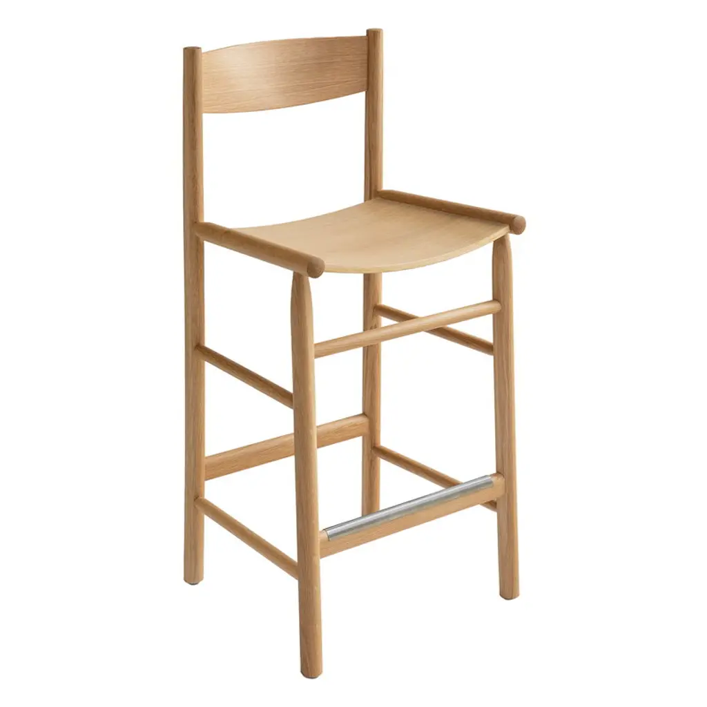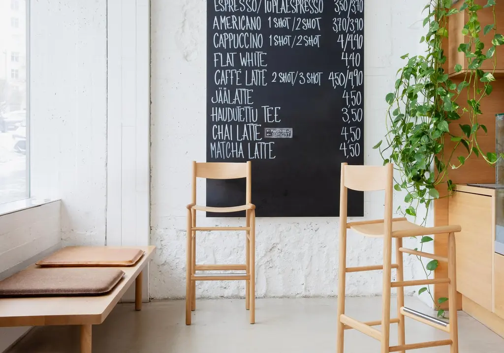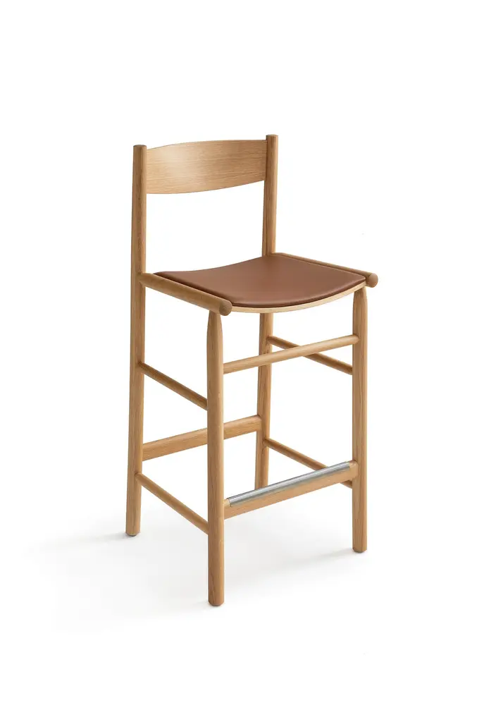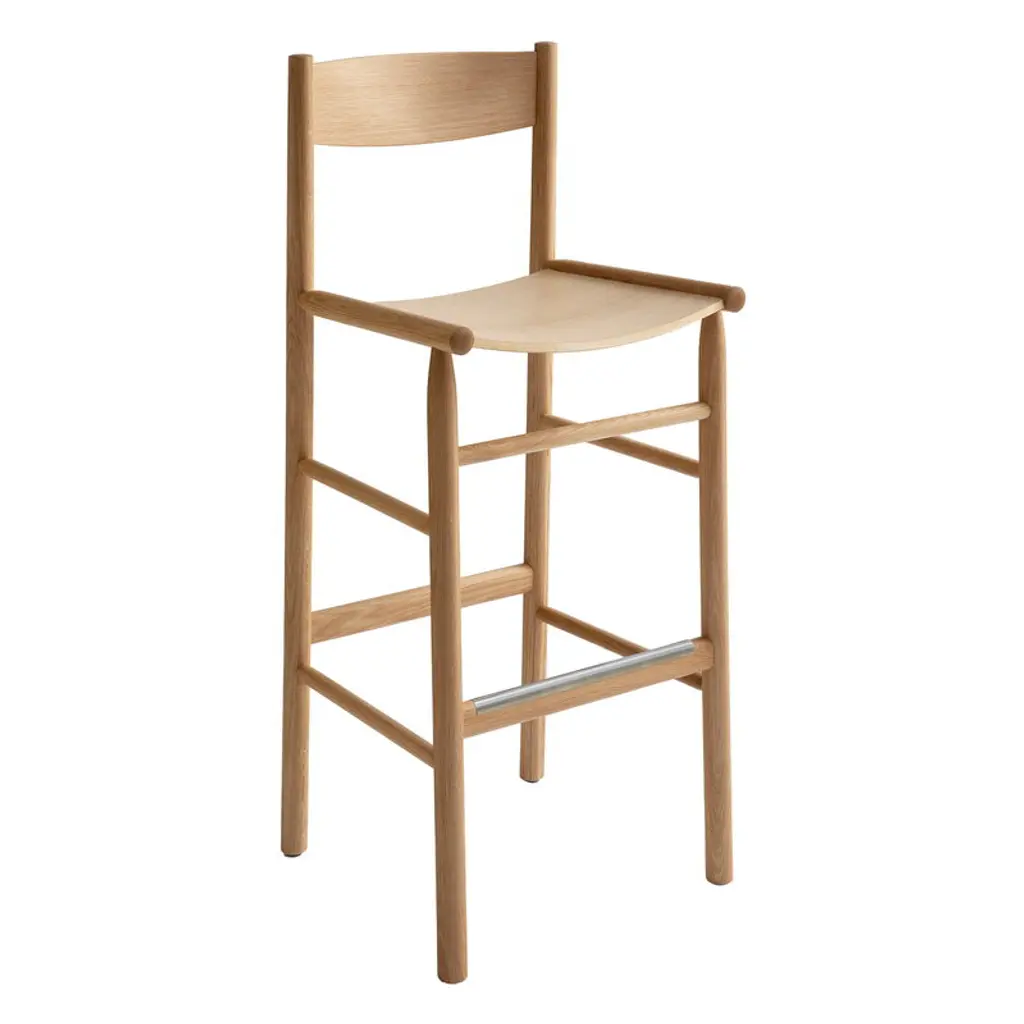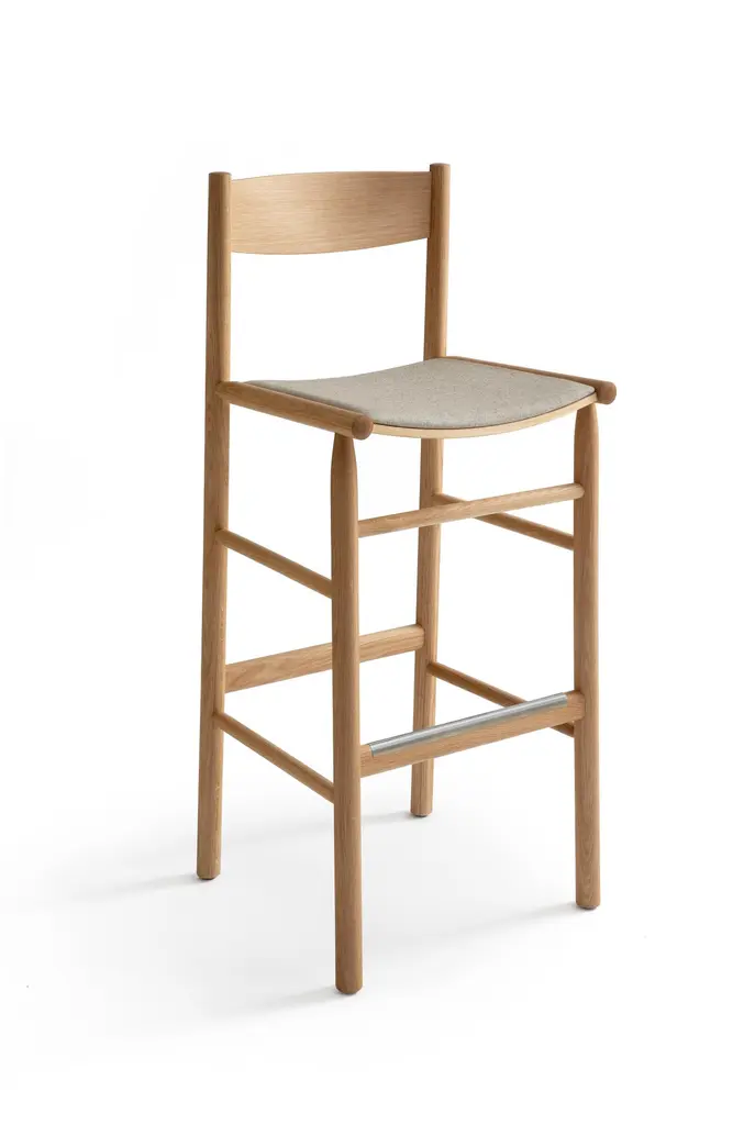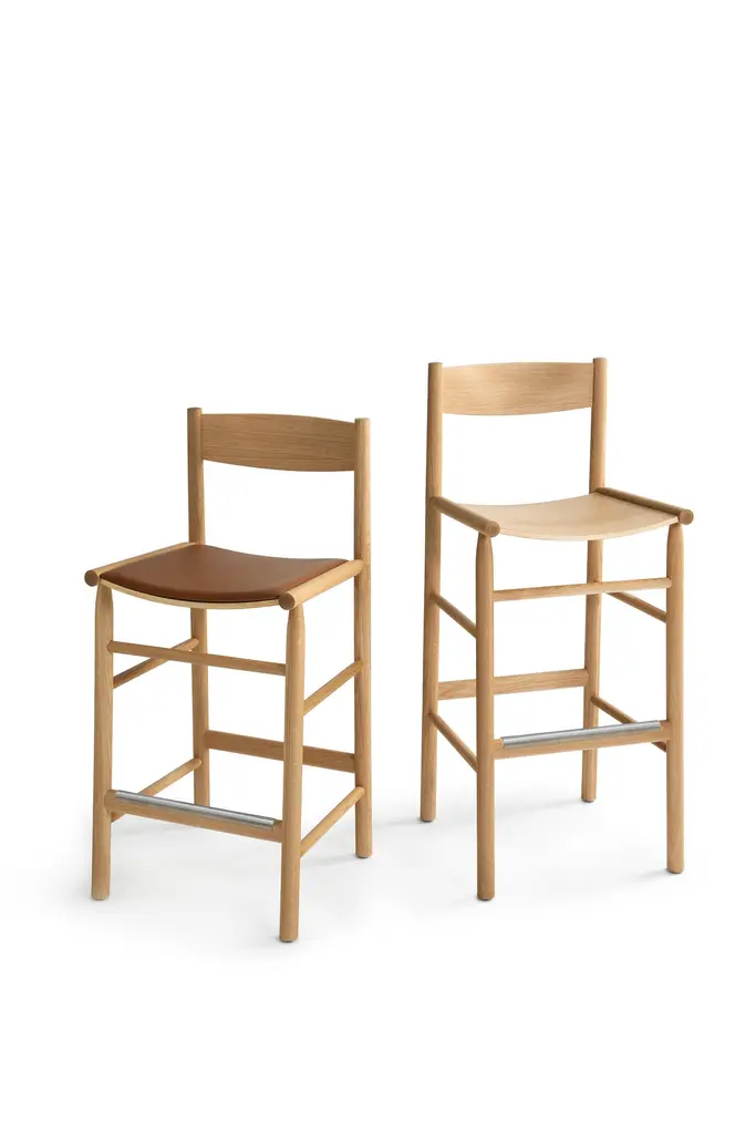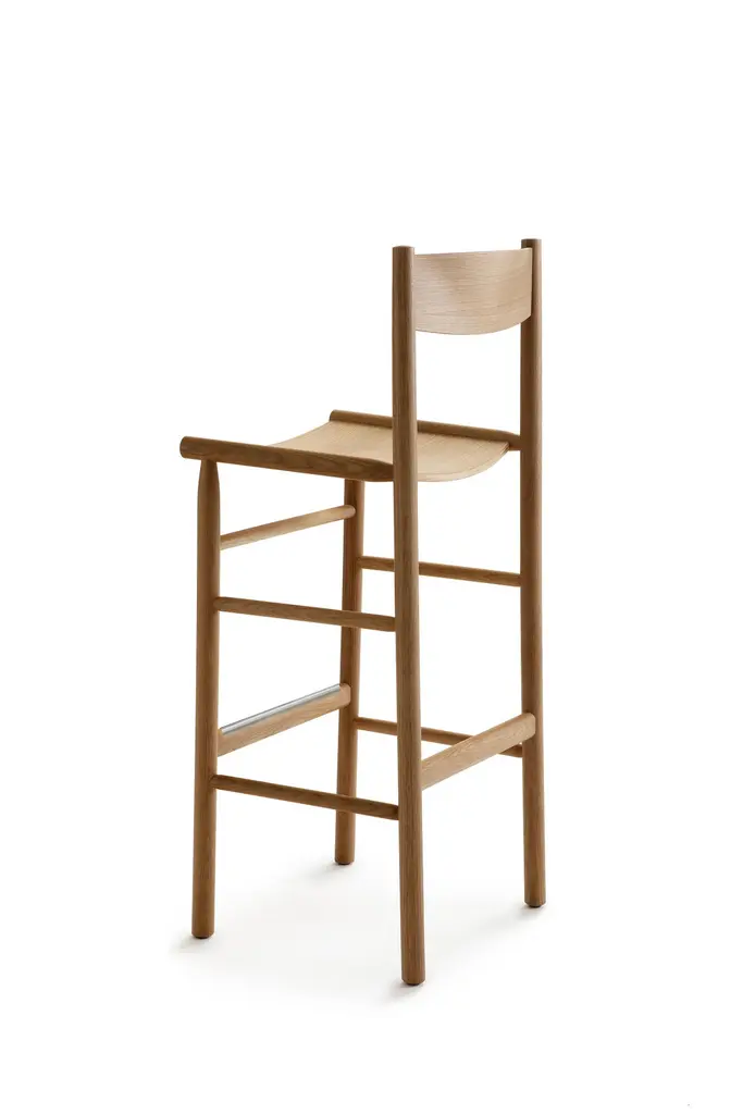Akademia High is a useful addition to Akademia series; a high version of the comfortable chair to be used both at home as well as at the office, restaurant, café, hotel etc. surroundings. Akademia High is available in two heights, 65cm and 75cm, and with various finishes. The seat can be upholstered.The chair was originally the result of Master’s Thesis work at Aalto University by a member of the Kaksikko team; Wesley Walters. It is a fascinating combination of different cultures – simplistic Shaker style, Japanese design traditions, and Finnish craftsmanship heritage.“The intention of the Akademia Bar Chair was to make bar-height seating that is as comfortable as a dining chair. The relatively high backrest and ample seat width ensures that even a full meal can be enjoyed at the bar. As with the Akademia chair, minimal, vertical lines are complemented by the thin curved plywood of the seat and backrest. Available with leather or textile upholstery for additional comfort.” — Kaksikko (Wesley Walters & Salla Luhtasela), 2024