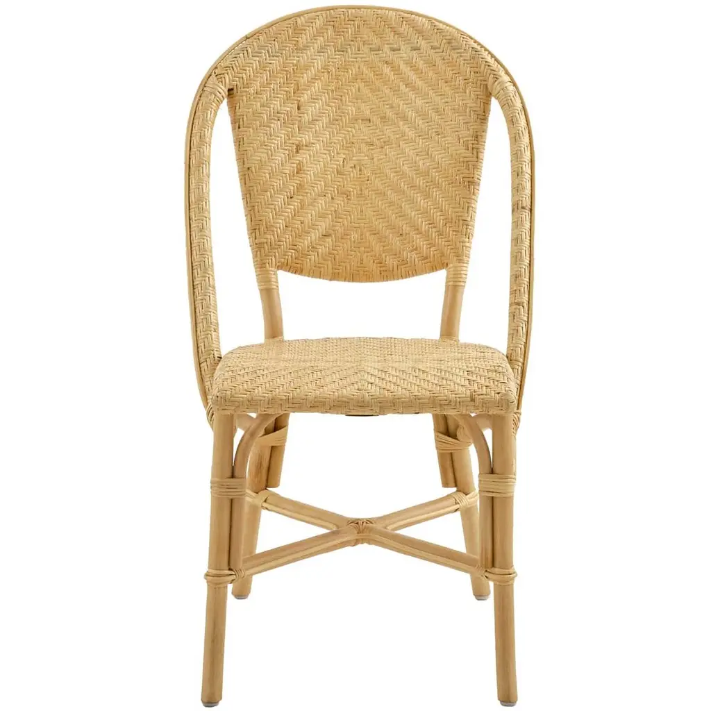 The Alanis Side Chair by Sika Design is an elegant update to the popular Sofie bistro chair. A reimagined design takes the Sofie silhouette and elevates it with a 100% handwoven herringbone weave on the back, arms, and chair seat. Crafted from Indonesian rattan, the beautifully woven chair seat has a waterfall front for comfortable seating. The Alanis is a stackable dining chair that enhances the look of a breakfast nook or dining room and complements an upscale brasserie, café, or restaurant.