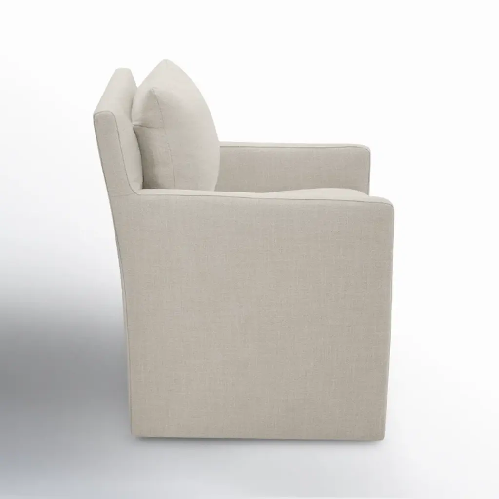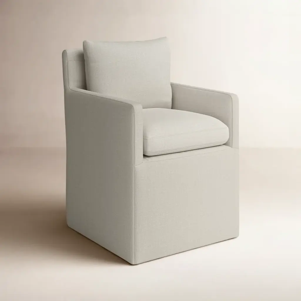 Discover the ideal blend of modern design and everyday practicality with this dining chair, ideal for your kitchen or home office. Its solid wood frame and linen upholstery offer a cozy seat, while the foam and down filling ensure support. The chair's stain-resistant material and easy-to-clean surface make maintenance a breeze. Plus, smooth-rolling caster wheels provide silent and flexible movement. This armchair is a versatile choice for enhancing your space without compromising on comfort. Plus, no assembly is required, so you can enjoy it right away.