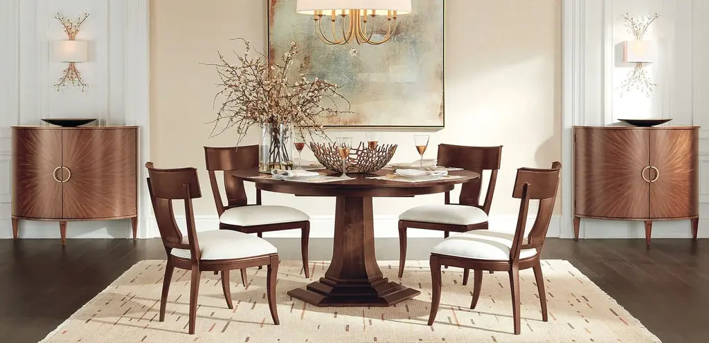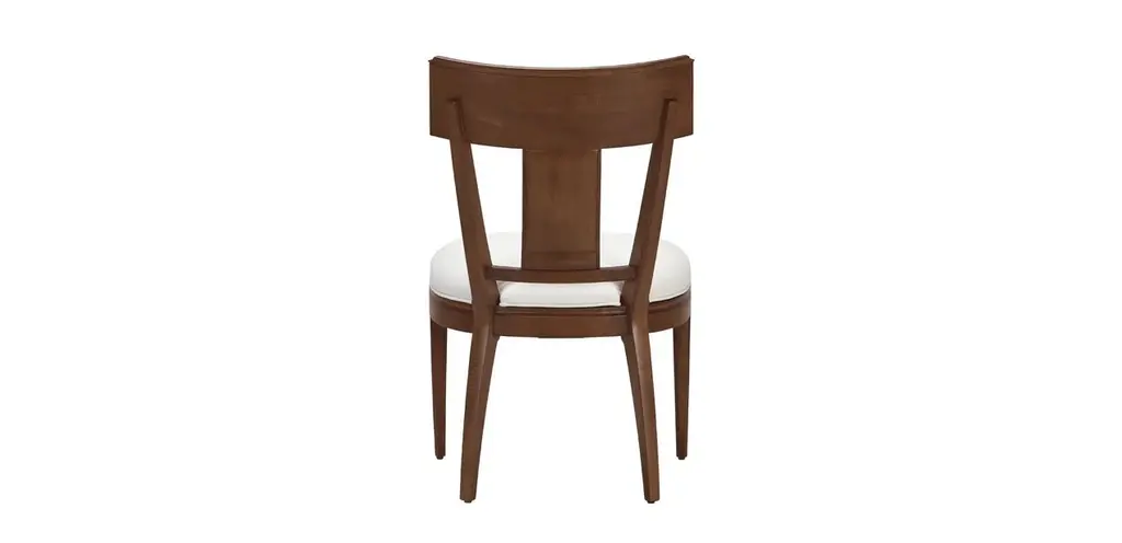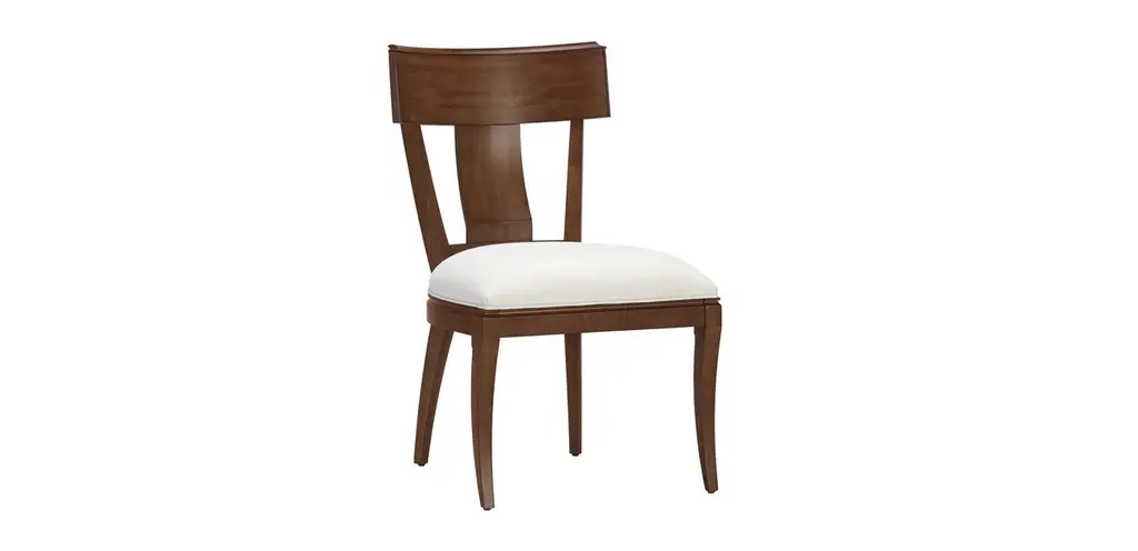 An ode to a Grecian classic, our Alessio klismos-style dining side chair is made for today's dining spaces; customize it with your favorite wood finish and the seat fabric or leather of your choice. Its lower back height follows timeless klismos curves while ensuring perfect comfort. Carved moldings and details make it totally of today.
