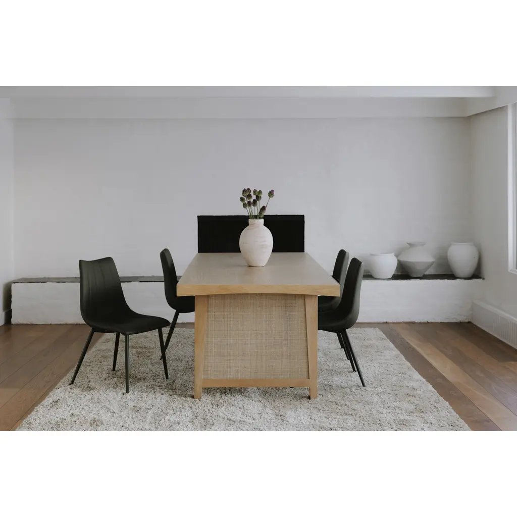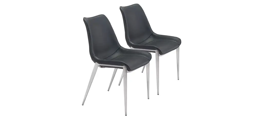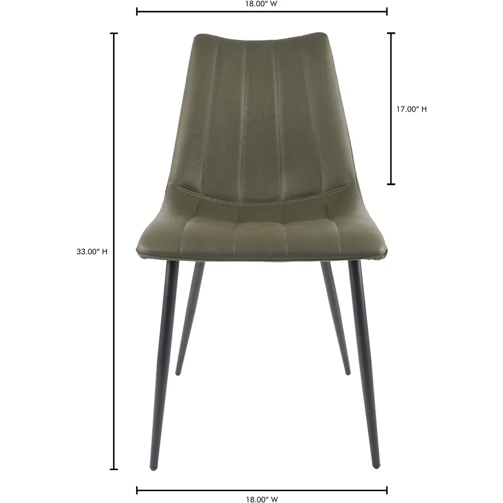A new take on contemporary dining. The Alibi dining chair’s sleek modern aesthetic features striking vertical accent stitching, adding subtle detail to its simple and elegant design. An easy-to-clean, soft vegan leather seat is perfectly shaped for comfort, so guests and hosts alike can relax after the digestif is served.