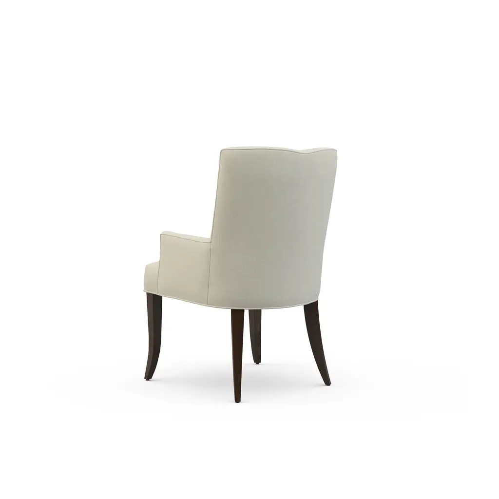 Refined yet relaxed, the Alice Arm Chair blends graceful curves with clean tailoring. A gently arched backrest and delicately flared arms provide supportive comfort, while the tapered legs add an elegant lift. Whether gathered around a dining table or placed as a statement piece, this chair brings quiet elegance to any setting. Ships In 8-10 Weeks Tight back Tight seat As Shown Fabric: Rayburn Oatmeal As Shown Finish: Antique Walnut If you choose to purchase COM, once you have placed your order a customer service rep will contact you regarding where to send your fabric. Please note that current lead time is 17-19 weeks once your fabric arrives at the factory, and if unused fabric is under 1.5 yards, it cannot be sent back to you.This product can be special ordered in additional fabrics, leathers, and finishes. Click here to email us for for additional information about special ordering.This image is for illustrative purposes only. The colors shown are accurate within the constraints of lighting, photography, and the color accuracy of your screen.