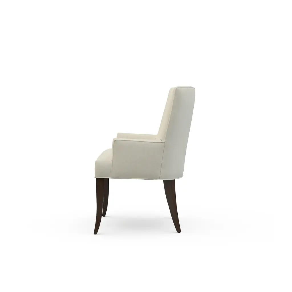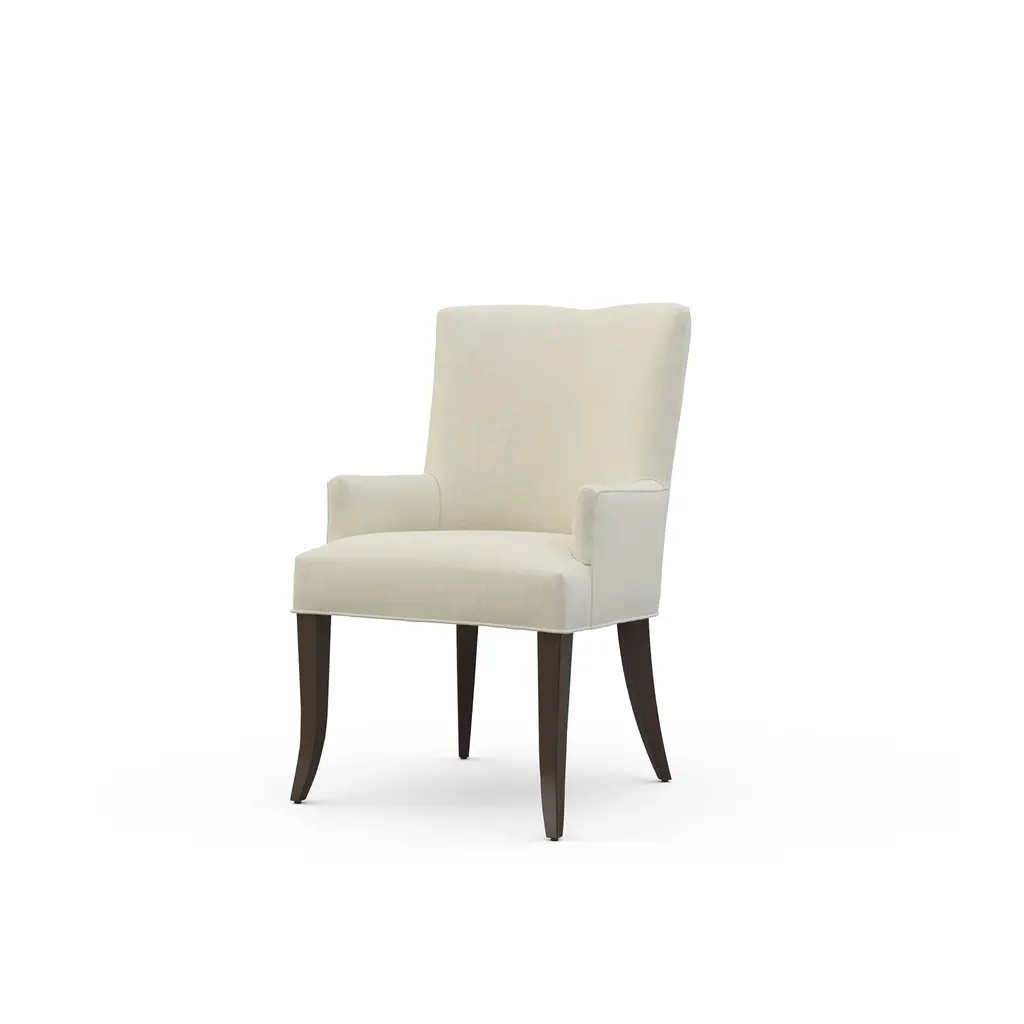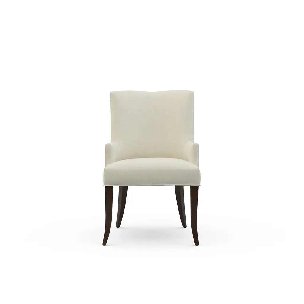 Refined yet relaxed, the Alice Arm Chair blends graceful curves with clean tailoring. A gently arched backrest and delicately flared arms provide supportive comfort, while the tapered legs add an elegant lift. Whether gathered around a dining table or placed as a statement piece, this chair brings quiet elegance to any setting. Ships In 8-10 Weeks Tight back Tight seat As Shown Fabric: Rayburn Oatmeal As Shown Finish: Antique Walnut If you choose to purchase COM, once you have placed your order a customer service rep will contact you regarding where to send your fabric. Please note that current lead time is 17-19 weeks once your fabric arrives at the factory, and if unused fabric is under 1.5 yards, it cannot be sent back to you.This product can be special ordered in additional fabrics, leathers, and finishes. Click here to email us for for additional information about special ordering.This image is for illustrative purposes only. The colors shown are accurate within the constraints of lighting, photography, and the color accuracy of your screen.