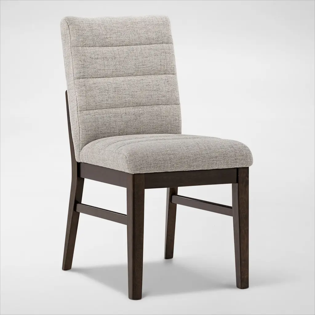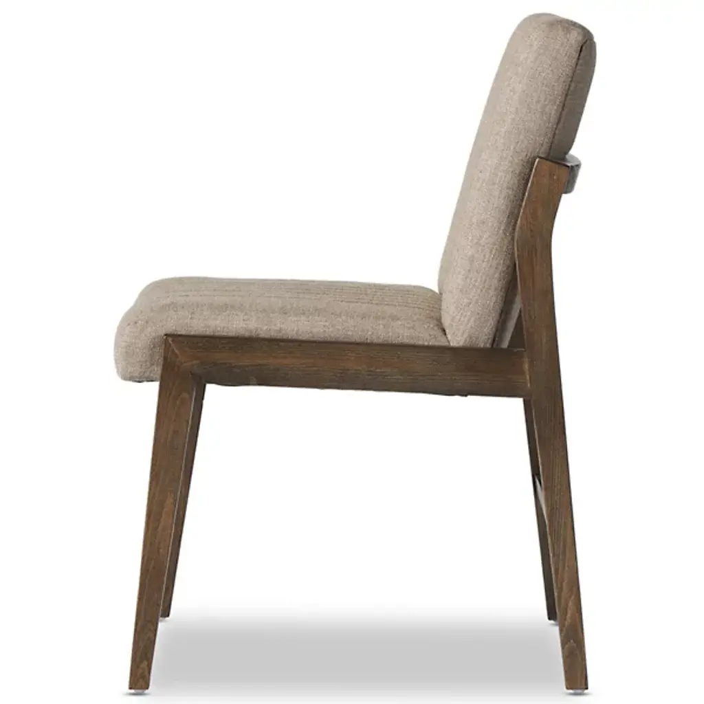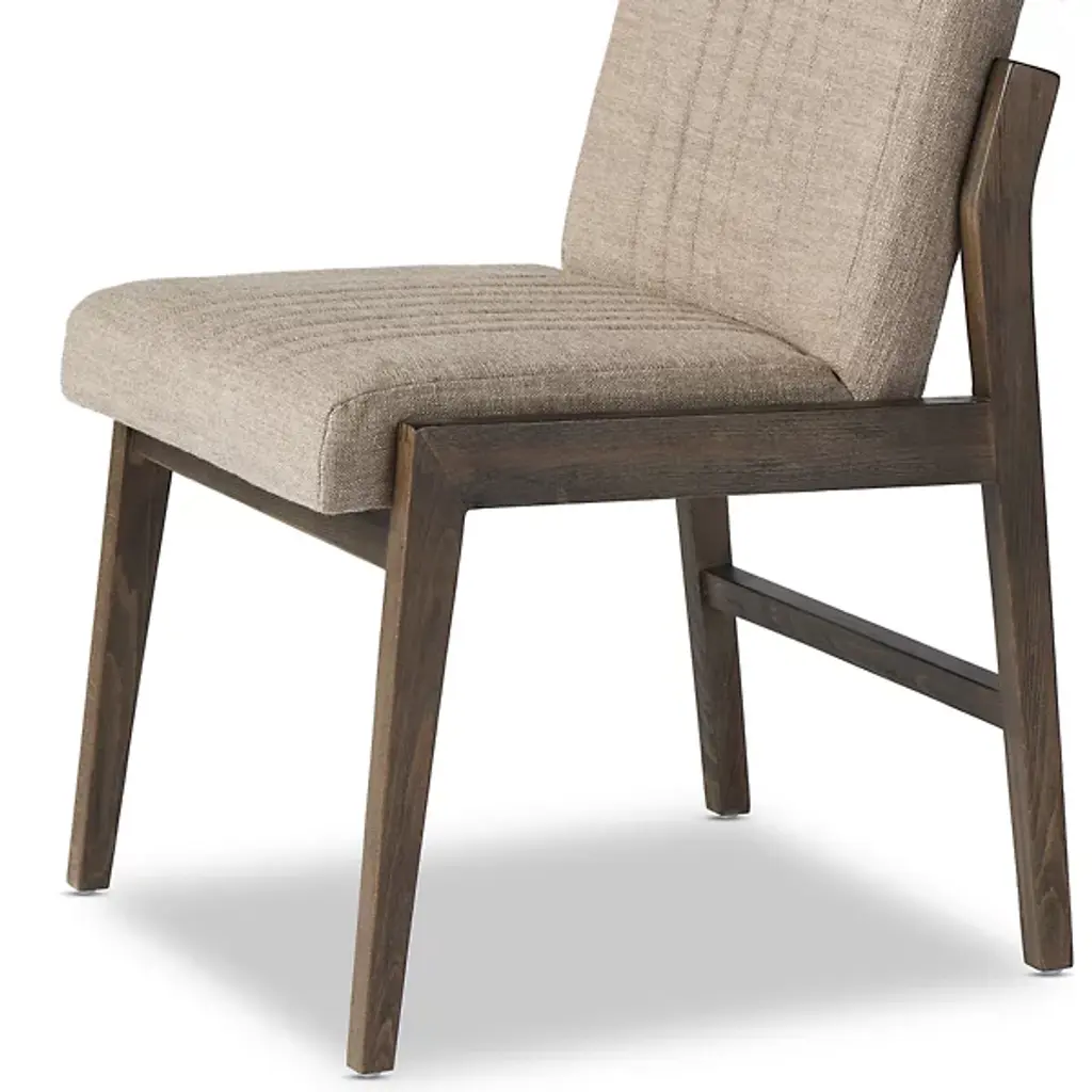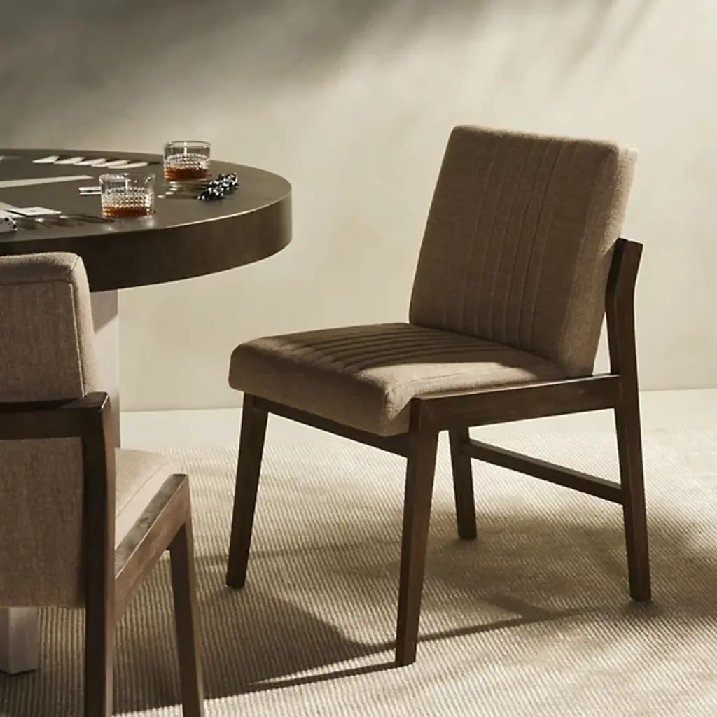 The Alice Dining Chair from Four Hands is a contemporary piece designed to enrich your dining experience. With its thoughtful, armless design, this chair effortlessly complements your 21st-century dining setting. The subtle striped pattern on the upholstery, crafted from a blend of 70% polyester, 20% viscose, and 10% linen, adds sophistication. The chair's solid beech frame ensures that your chair will stay properly balanced and in place as you eat your delicious meals.