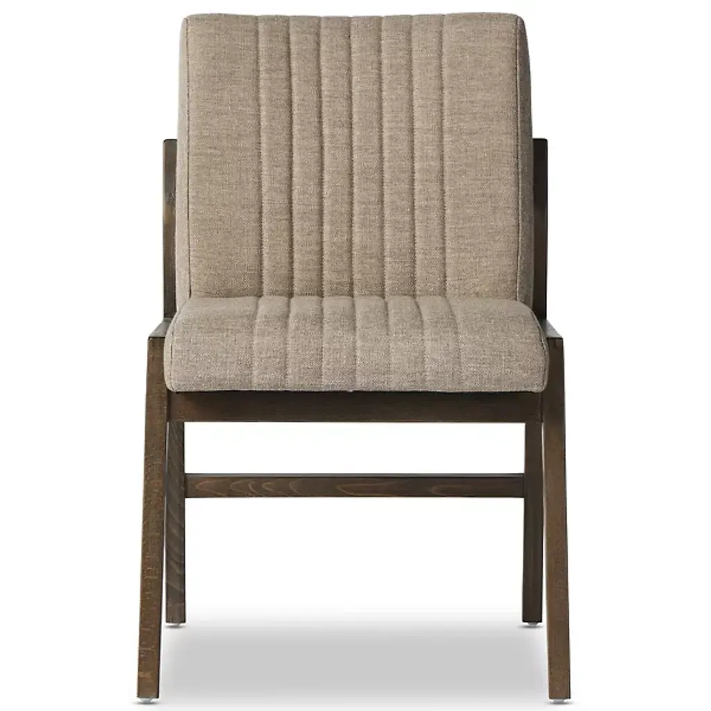 The Alice Dining Chair from Four Hands is a contemporary piece designed to enrich your dining experience. With its thoughtful, armless design, this chair effortlessly complements your 21st-century dining setting. The subtle striped pattern on the upholstery, crafted from a blend of 70% polyester, 20% viscose, and 10% linen, adds sophistication. The chair's solid beech frame ensures that your chair will stay properly balanced and in place as you eat your delicious meals.