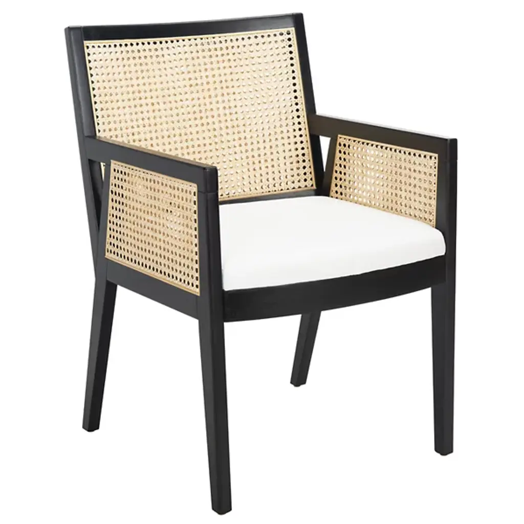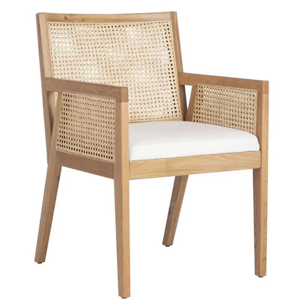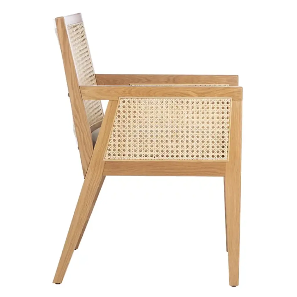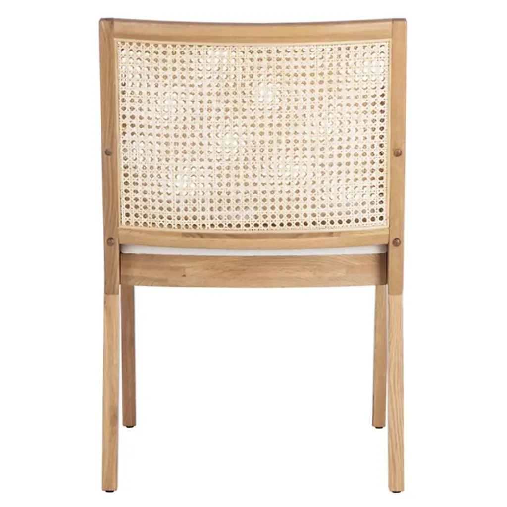 The Alivia Dining Chair is presented by Alder & Ore. This chair exudes a contemporary coastal aesthetic with natural woven rattan that creates a warm and inviting atmosphere. The solid oak frame ensures durability and stability, while the soft linen cushion provides comfort during long meals or gatherings. Subtle cutouts on the side of the chair enhance its visual appeal. Its combination of natural materials, chic design, and comfortable seating will transform your dining area into a coastal haven.