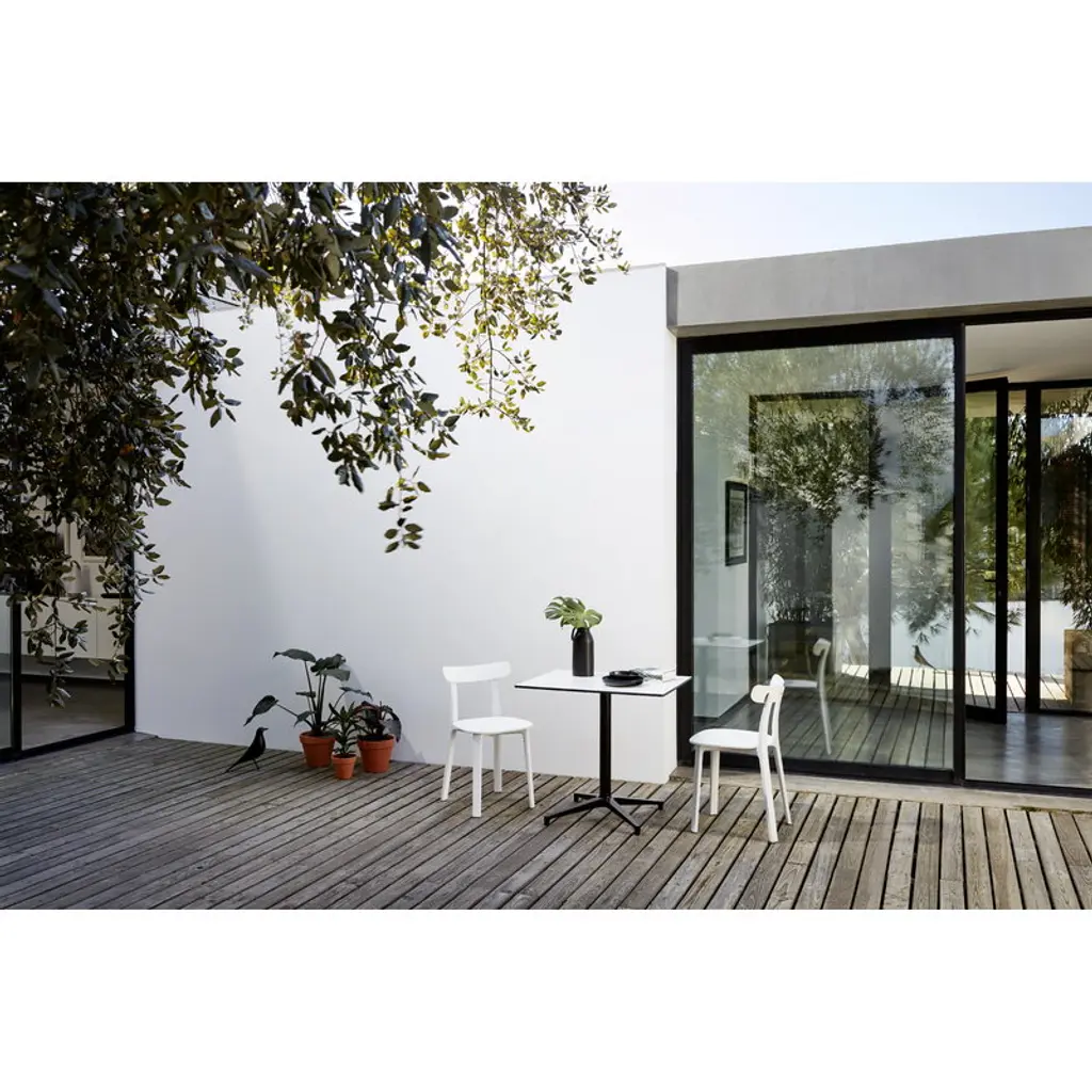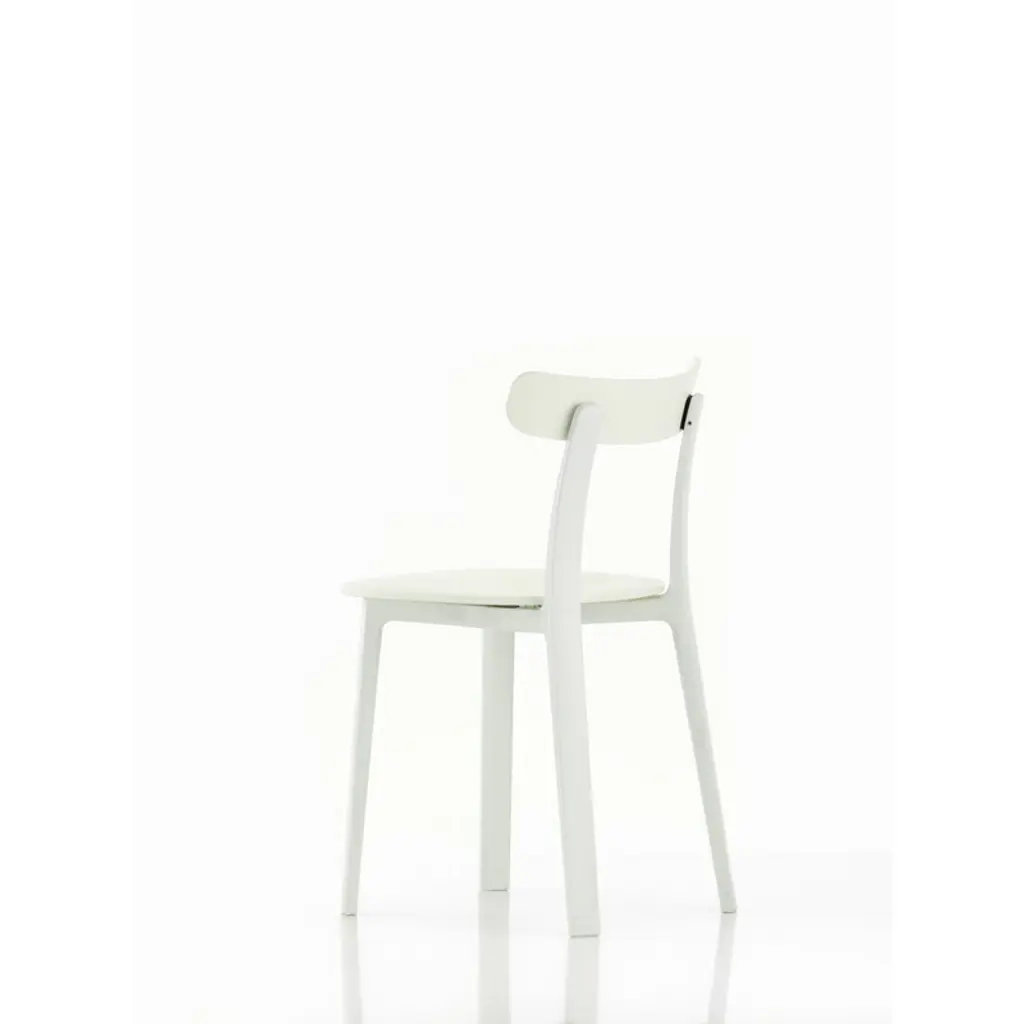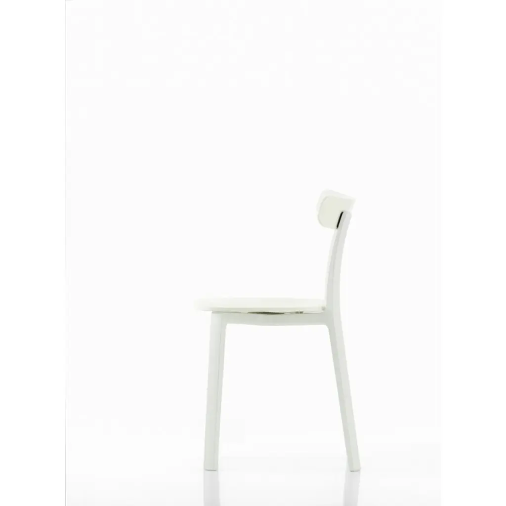 Vitra’s All Plastic Chair is a compact polypropylene chair with a flowing design that resembles traditional European wooden chairs. Designed by Jasper Morrison, the versatile All Plastic Chair combines a flat-legged frame with a comfortable seat. The comfortability of All Plastic Chair derives from its organic design and the resilient connectors of the backrest that allow the chair to adapt to the movements of the person sitting on it. The color palette of the All Plastic Chair is vivid and well thought out: the color of the frame is slightly darker than the seat and back.