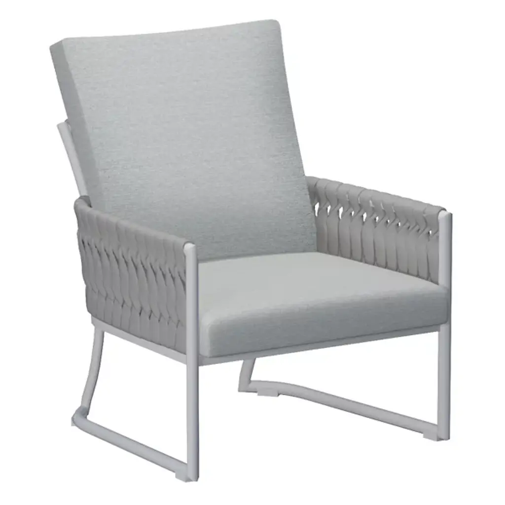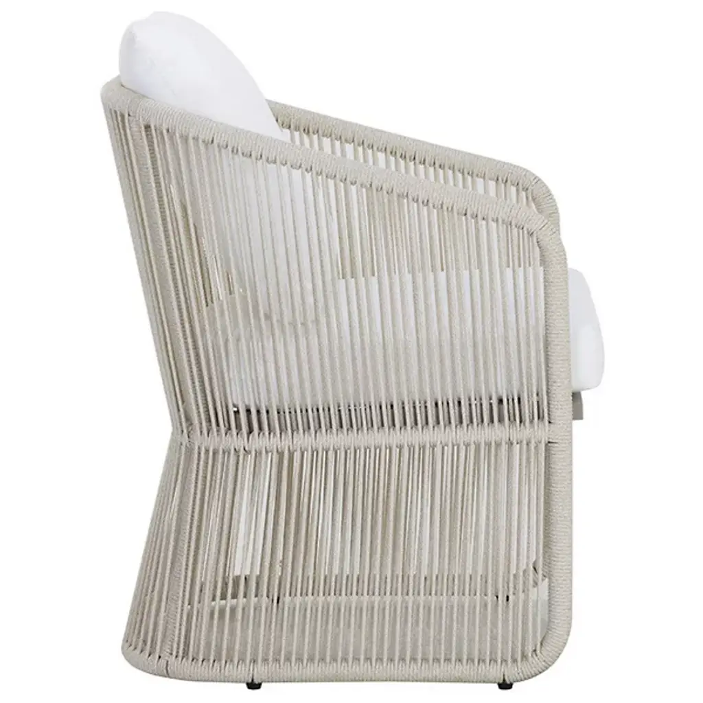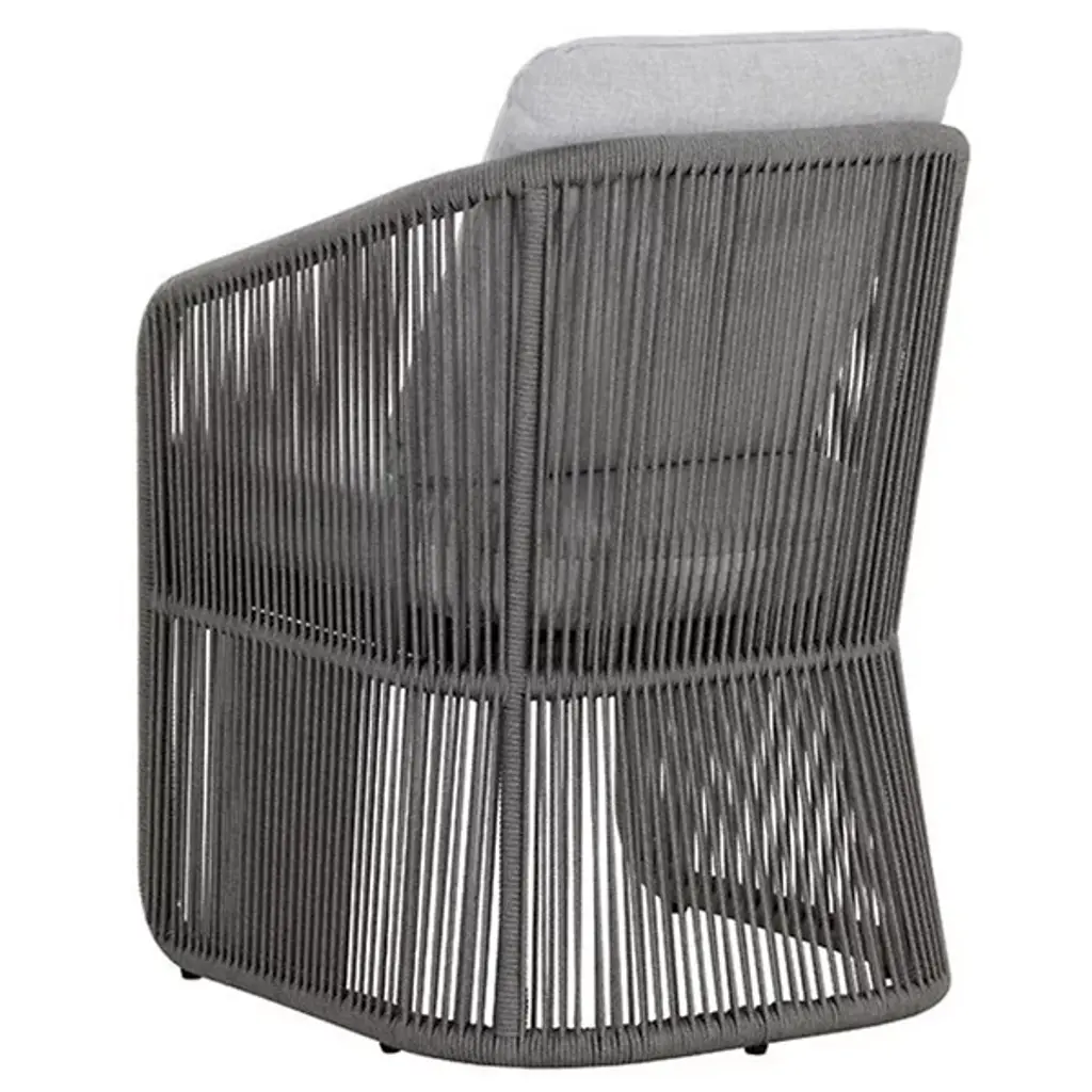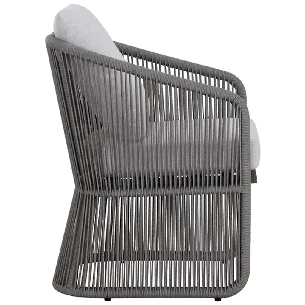 The Allariz Outdoor Dining Armchair from Sunpan combines durability with ingenious design. The aluminum frame undergoes powder coating for exceptional weather resistance, while the Olefin fabric, certified Oeko-tex safe, withstands intense UV exposure. Handwoven rope details create airy vertical patterns, complementing the quick-dry foam cushions that provide superior comfort. Perfect for patios and poolside settings, this chair features smart design elements that perform in outdoor environments.