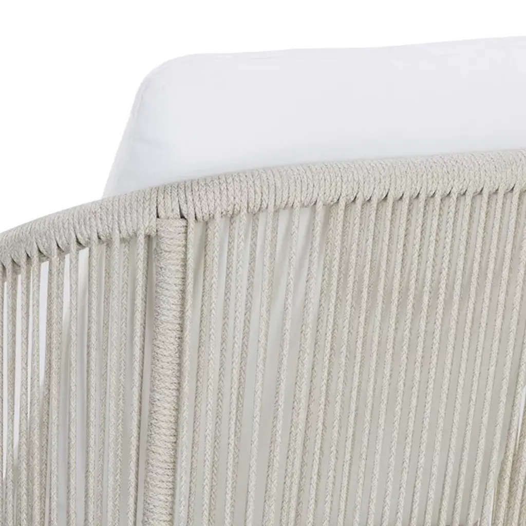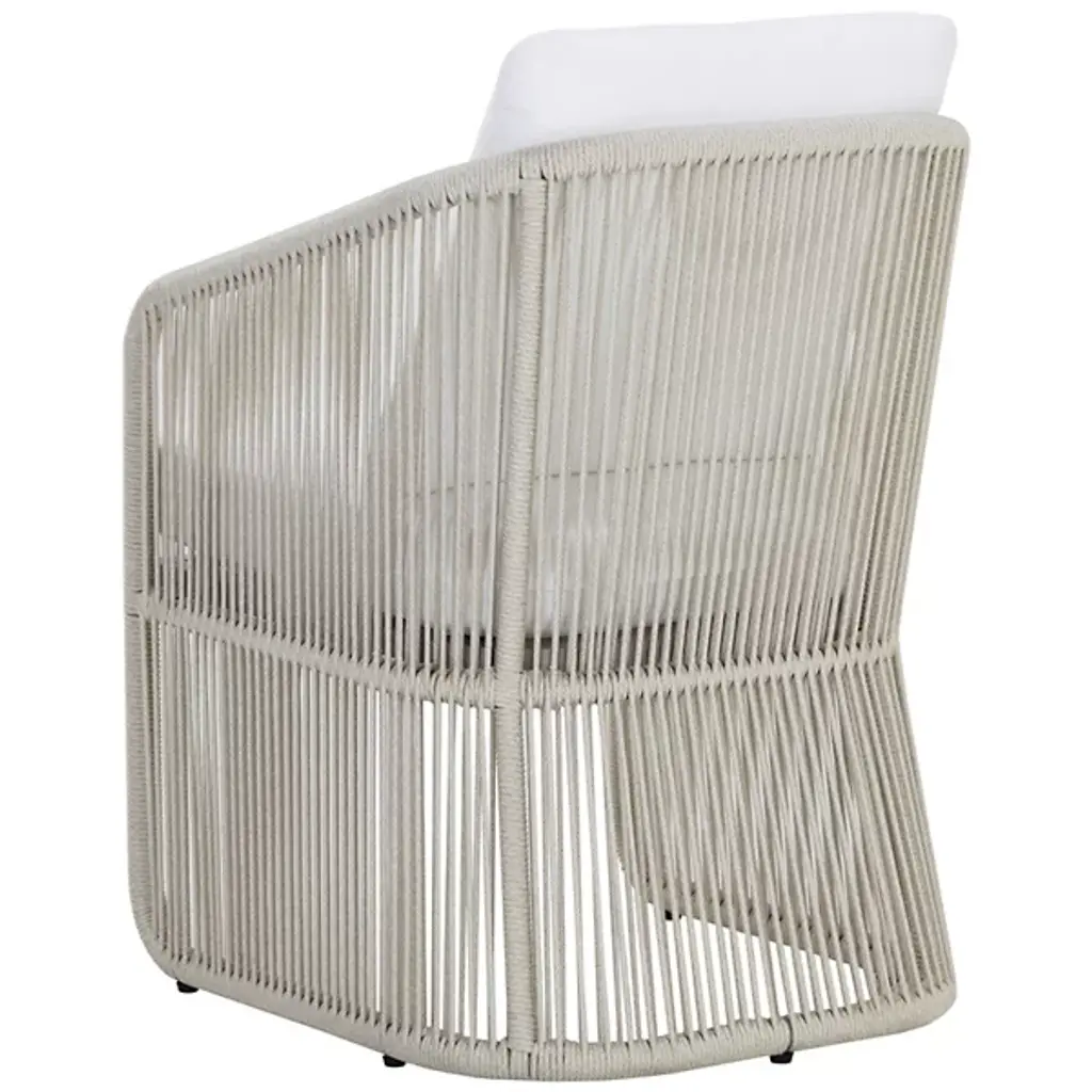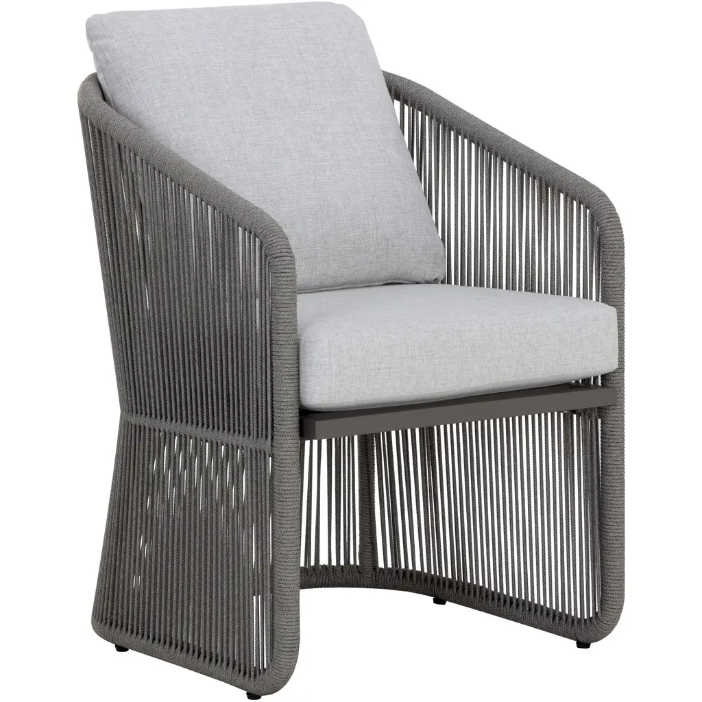 The Allariz Outdoor Dining Armchair from Sunpan combines durability with ingenious design. The aluminum frame undergoes powder coating for exceptional weather resistance, while the Olefin fabric, certified Oeko-tex safe, withstands intense UV exposure. Handwoven rope details create airy vertical patterns, complementing the quick-dry foam cushions that provide superior comfort. Perfect for patios and poolside settings, this chair features smart design elements that perform in outdoor environments.