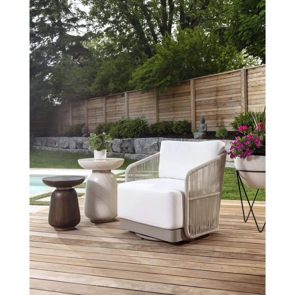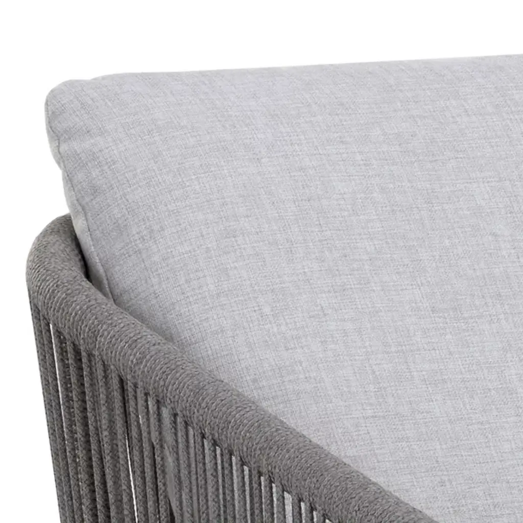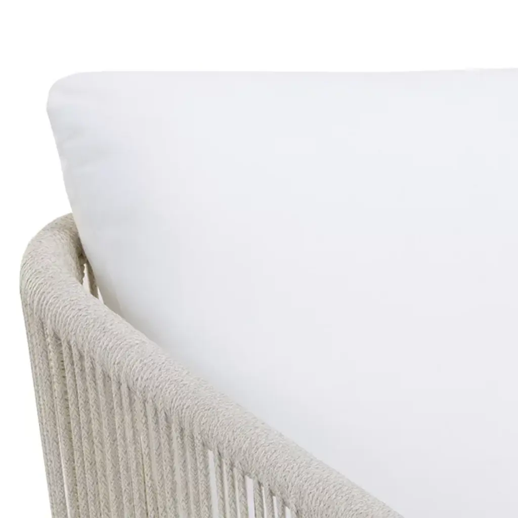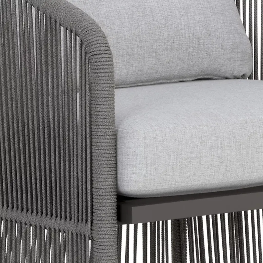 The Allariz Outdoor Dining Armchair from Sunpan combines durability with ingenious design. The aluminum frame undergoes powder coating for exceptional weather resistance, while the Olefin fabric, certified Oeko-tex safe, withstands intense UV exposure. Handwoven rope details create airy vertical patterns, complementing the quick-dry foam cushions that provide superior comfort. Perfect for patios and poolside settings, this chair features smart design elements that perform in outdoor environments.