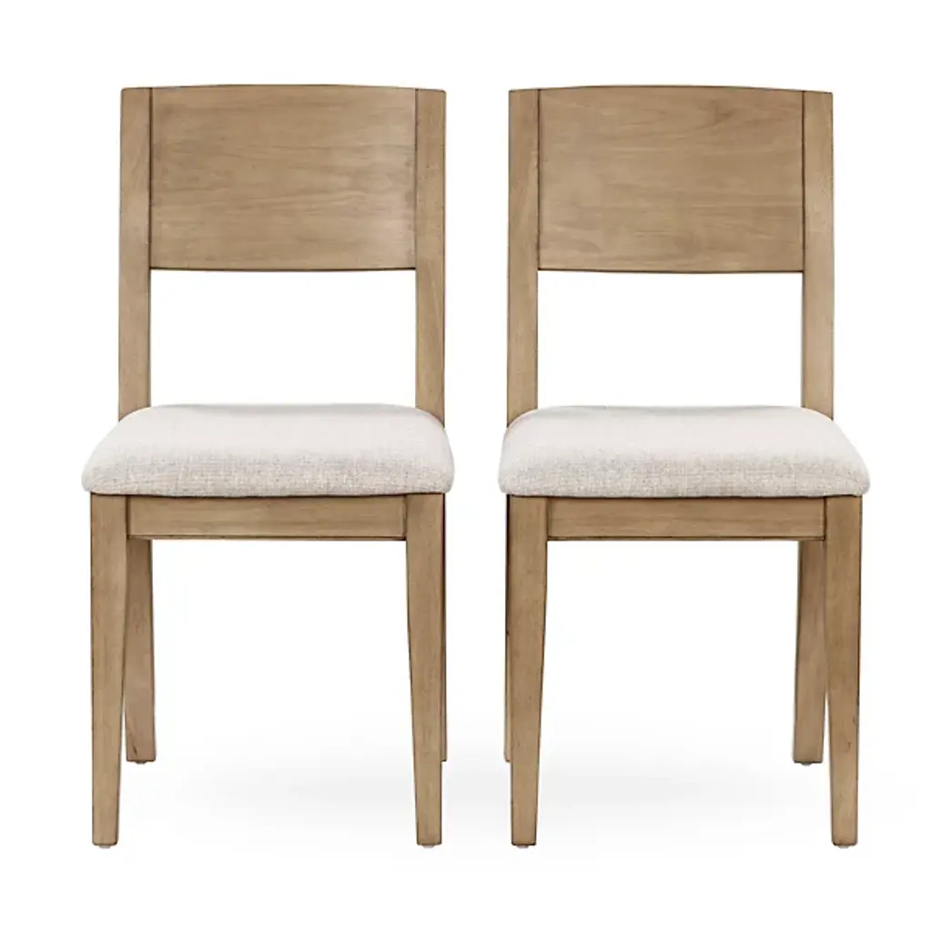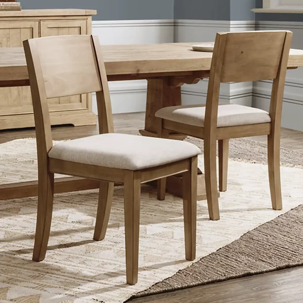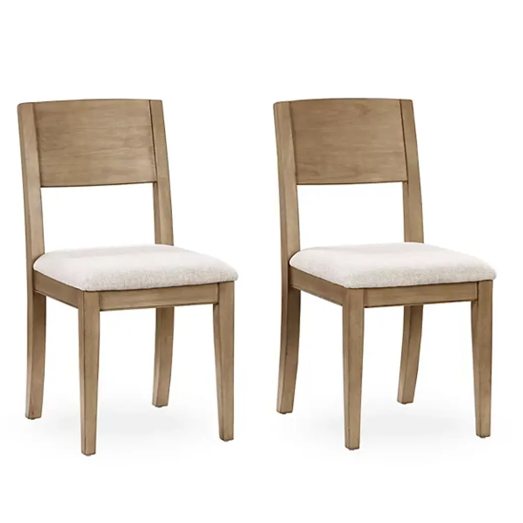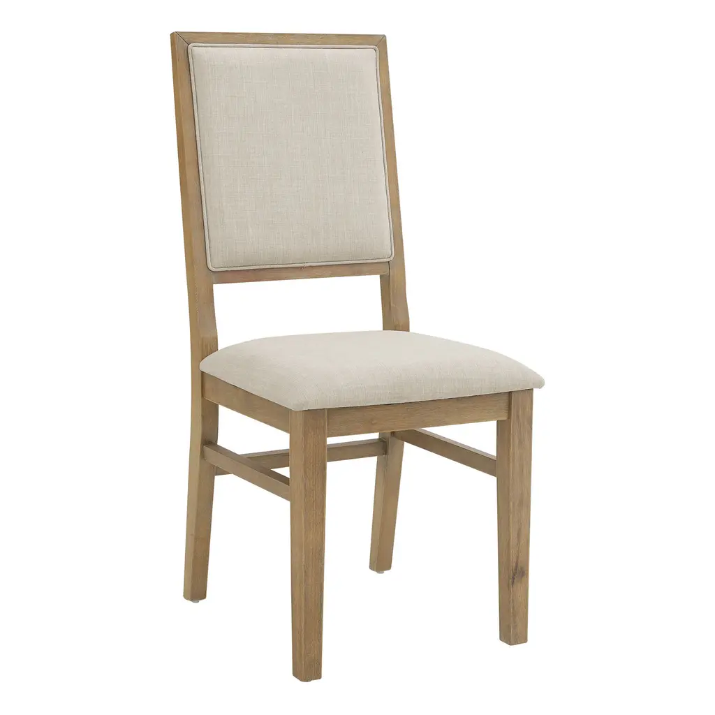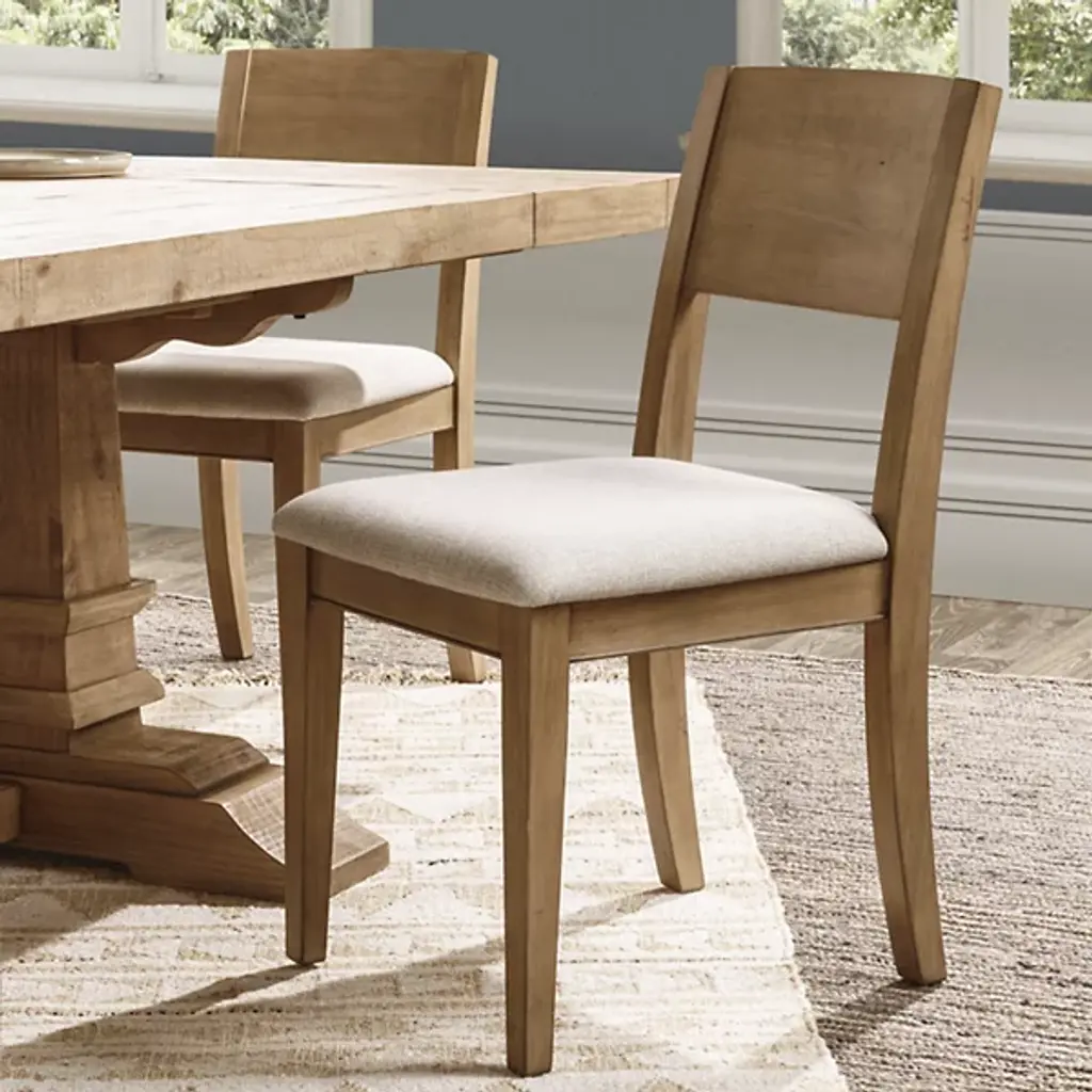 The Allegra Dining Chair, Set of 2 from Classic Home uses reclaimed pine frames with soy-based foam cushioning beneath buttercream fabric upholstery. Natural grain variations across each frame tell the story of the wood's previous use, while curved backrests provide ergonomic support that encourages lingering over meals. Water-based semi-gloss finishing protects the weathered pine without masking its authentic character. The sustainable materials extend beyond aesthetics—soy-based foam offers environmental benefits alongside comfort during extended dining sessions.