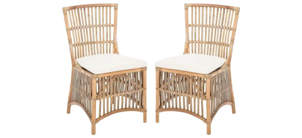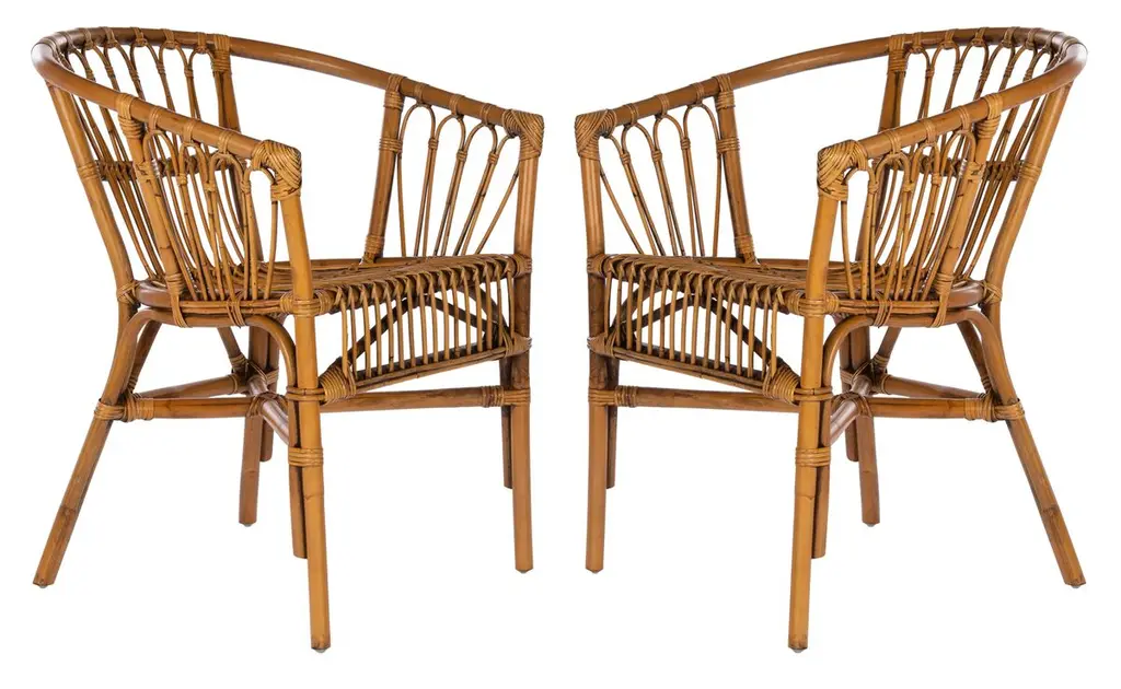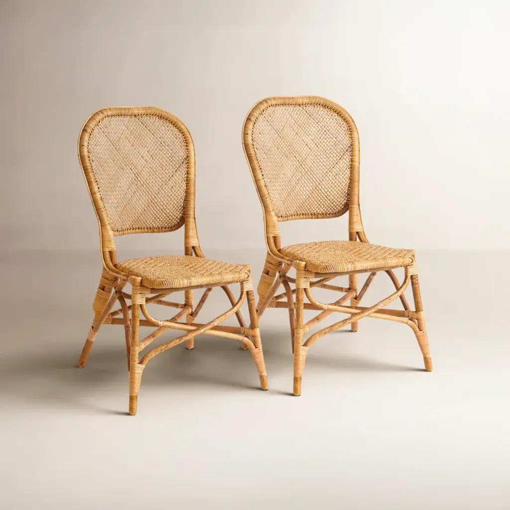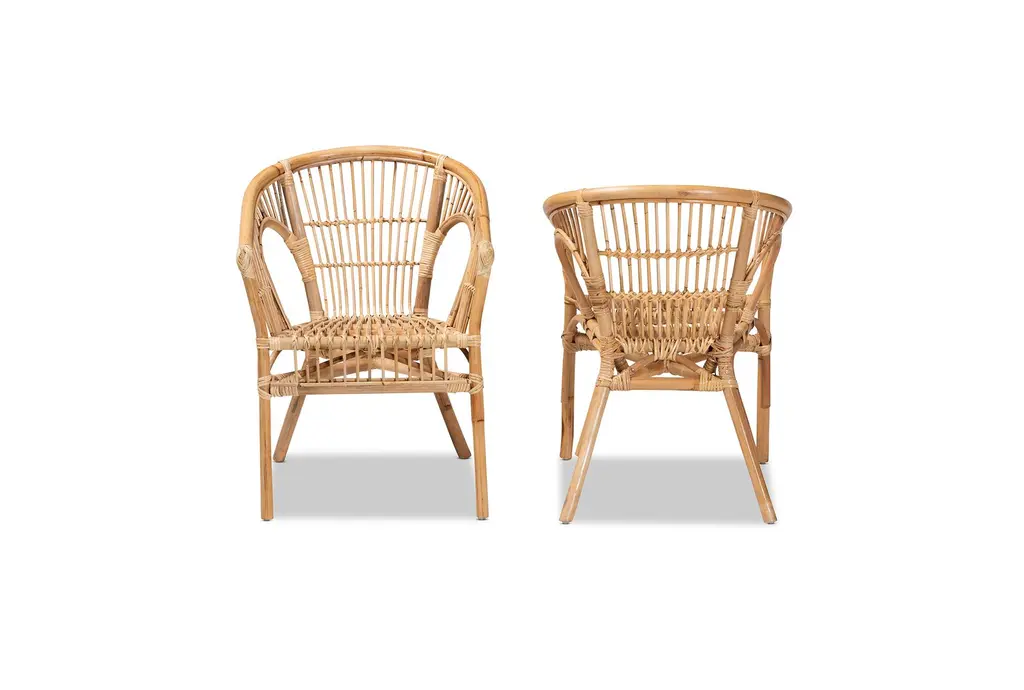 Alleta Modern Bohemian Natural Brown Rattan Dining Chair Set Of 2 | Woven