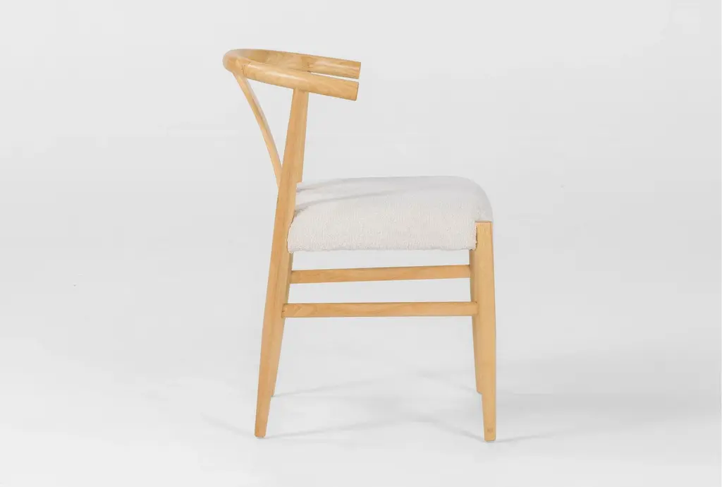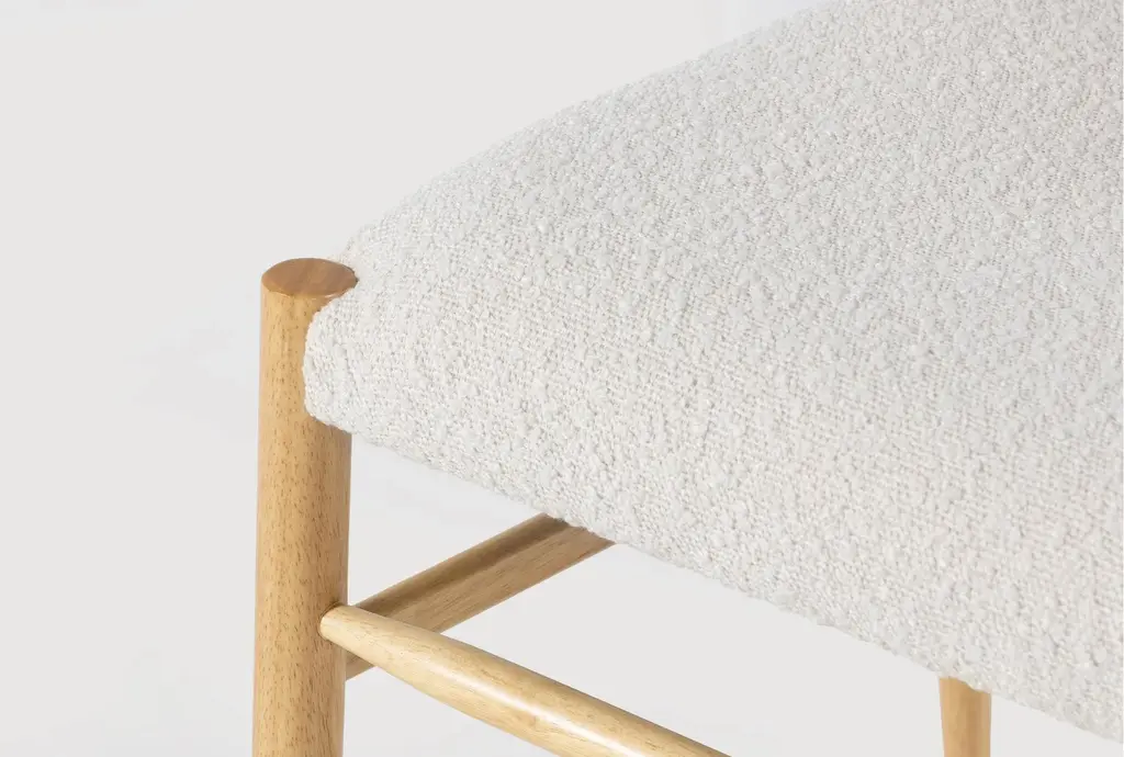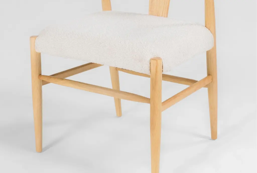 Our version of an iconic piece, the Alva wishbone dining chair allows you to bring timeless appeal to your space. First manufactured in 1950, the original wishbone chair was conceived by Hans Wegner, who was inspired by the minimal designs of China's Ming dynasty. The chair became a hallmark of Scandinavian and mid-century modern style and has been popular ever since. The sleek silhouette with a supportive bentwood armrest celebrates the beauty of simplicity and features sturdy solid rubberwood, as well as a boucle fabric seat. Available in multiple finishes, it is sure to be a highlight of your home.
