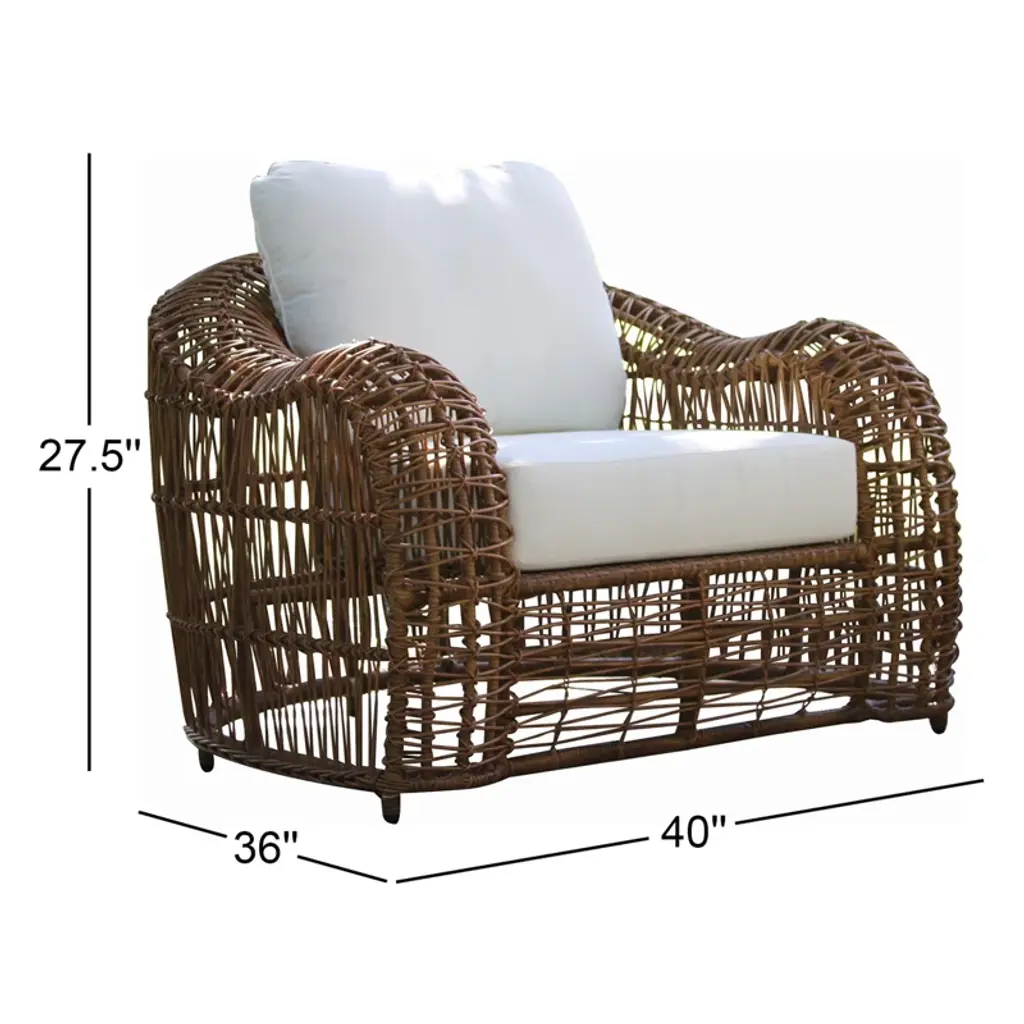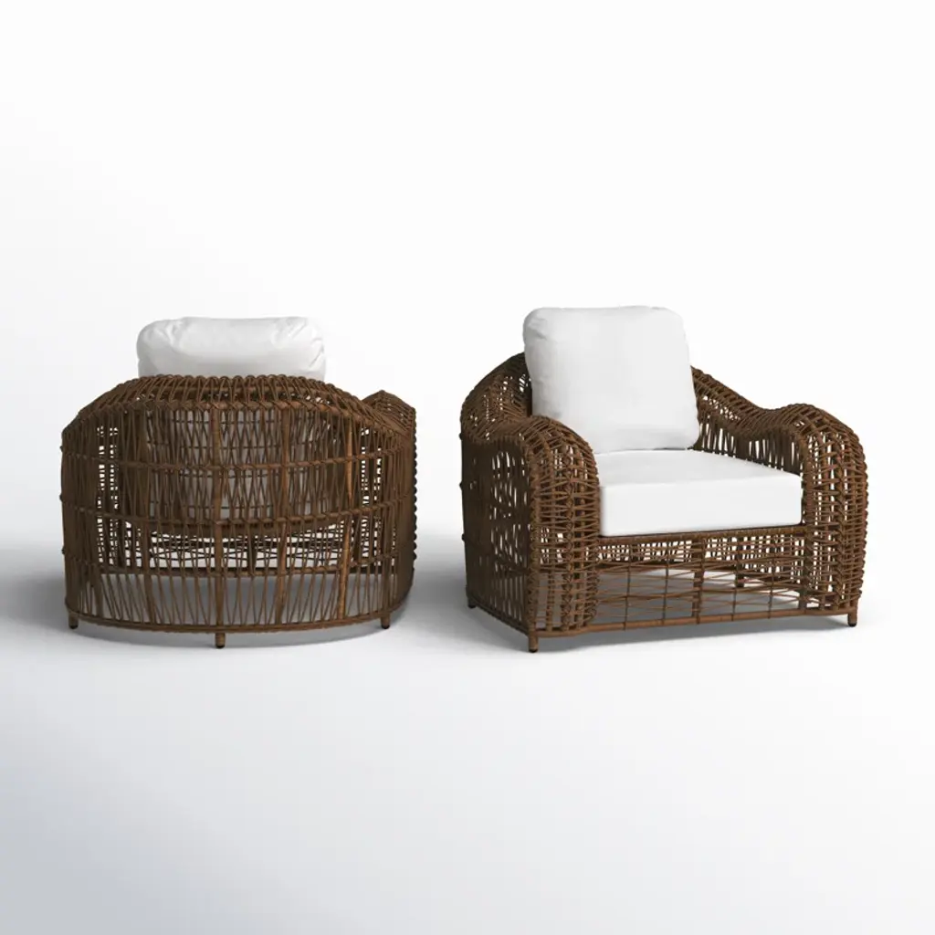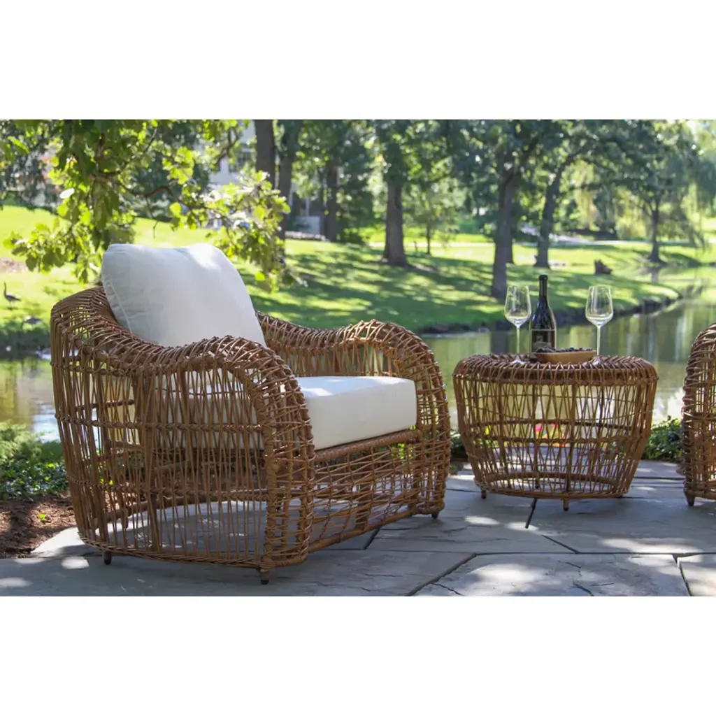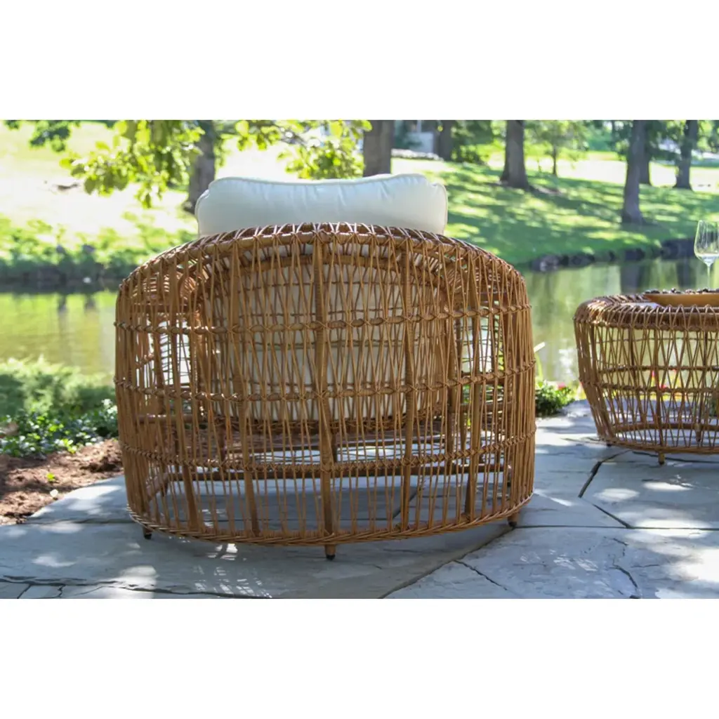This piece brings the luxury vineyard-inspired look to any patio. Fashioned with handwoven butterscotch-colored wicker and a deep breezy aesthetic. The armchair is sold in packs of 2 and can be paired with the full set or with an accent table of your choice! The chairs come fully assembled. The HDPE all-weather wicker is handwoven around powder-coated aluminum frames and finished with Sunbrella fabrics.