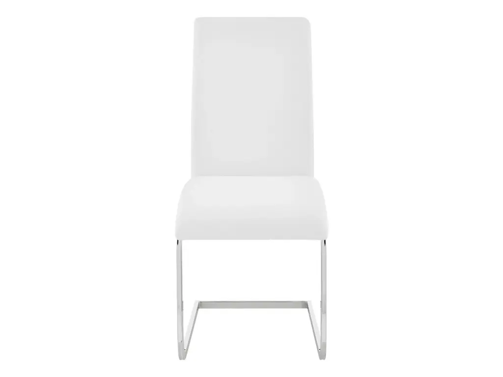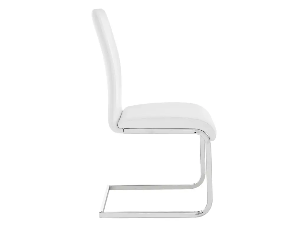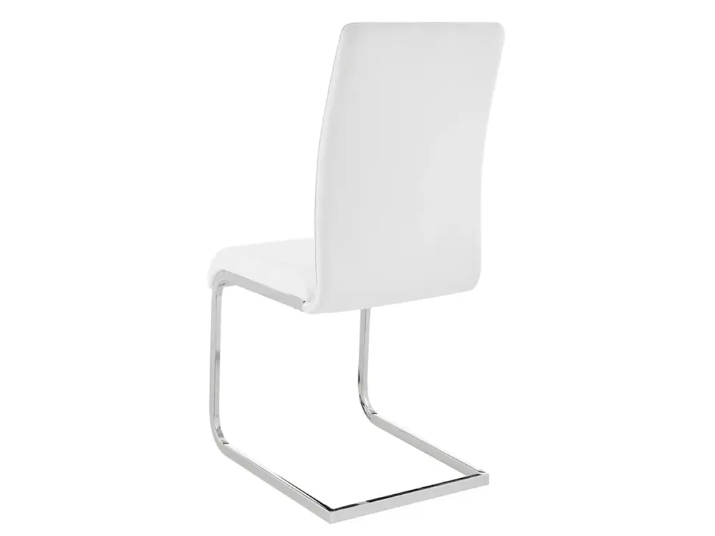 The Armen Living Amanda contemporary side chair is a sleek and stylish addition to the modern household. This beautiful side chair sports a chrome metal frame upholstered with stylish faux leather. The stylized bend of the Amanda's base makes this chair a standout without compromising on the durability of the product. Pair the Amanda side chair with the Amanda dining table and corner sofa for enhanced aesthetic cohesion. This is simple but yet sophisticated design that you can play up or down in any room in your home. The high cushion back is ideal for posture alignment and an unmatched support for days on end. The smooth and soft upholstery will keep you at ease all day with the high back to help keep your back in the upright posture. The foundation of the product is supported by solid chrome steel for a sturdy and modern look without comprising practicality and functionality of this item. This item is a versatile piece that can be ideal for dining, kitchen or even home office desk chairs. This product ships in one box with easy and quick set up. We stand by the quality, the craftsmanship and the integrity of our product by offer 1-year warranty for all our products. The Amanda's plush, yet sleek upholstery is available in three colors: black, white, and grey. The Amanda side chair is sold in a set of 2. Product Dimensions: 17"W x 23"D x 38"H