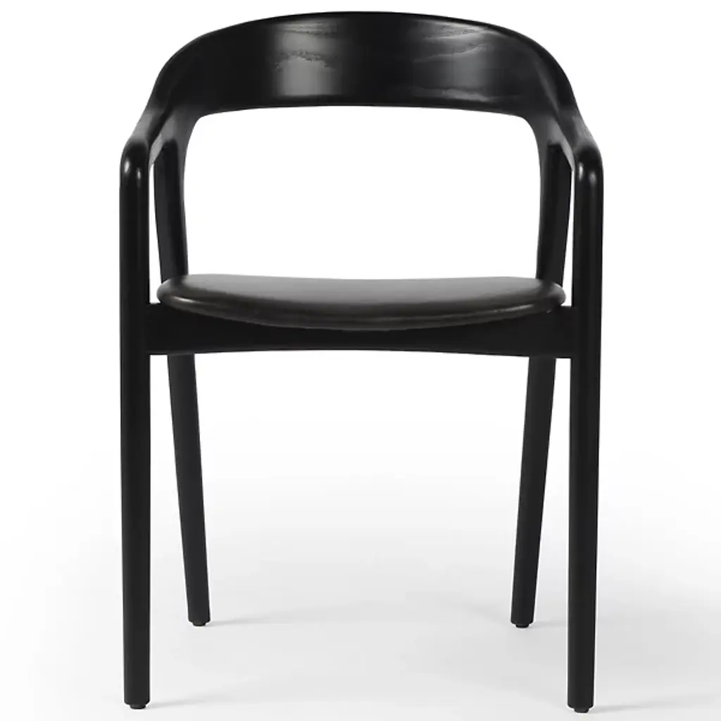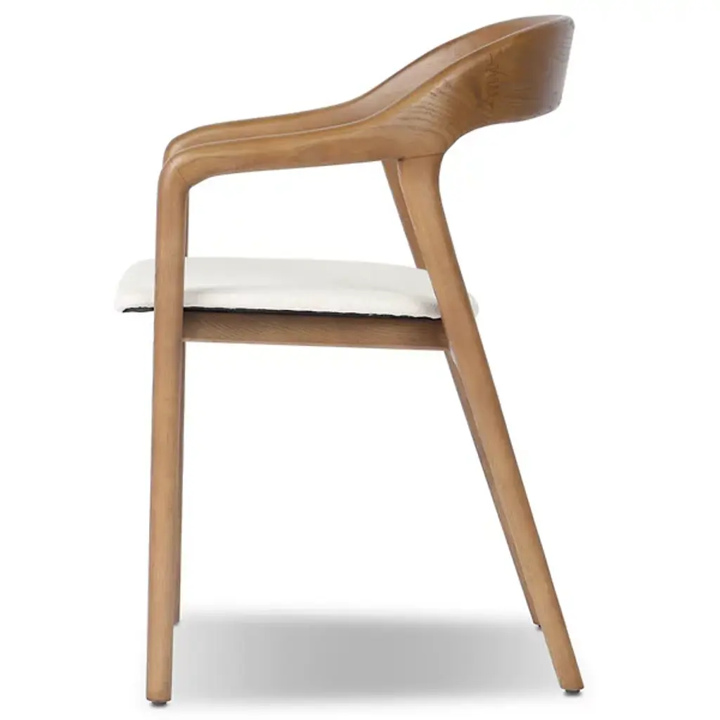 The Amare Dining Armchair by Four Hands creates intrigue for your dining arrangement. This chair is composed of solid ash that has been intricately worked for a fluid presentation. A curved seatback blends seamlessly into this chair’s arms and legs, forming lines which are unbroken. The edge of Amare’s seat extends slightly beyond the length of the frame for a comfortable seating experience. One of this chair’s front legs is fixed diagonally as opposed to a corresponding leg at the rear, forming acute angles.
