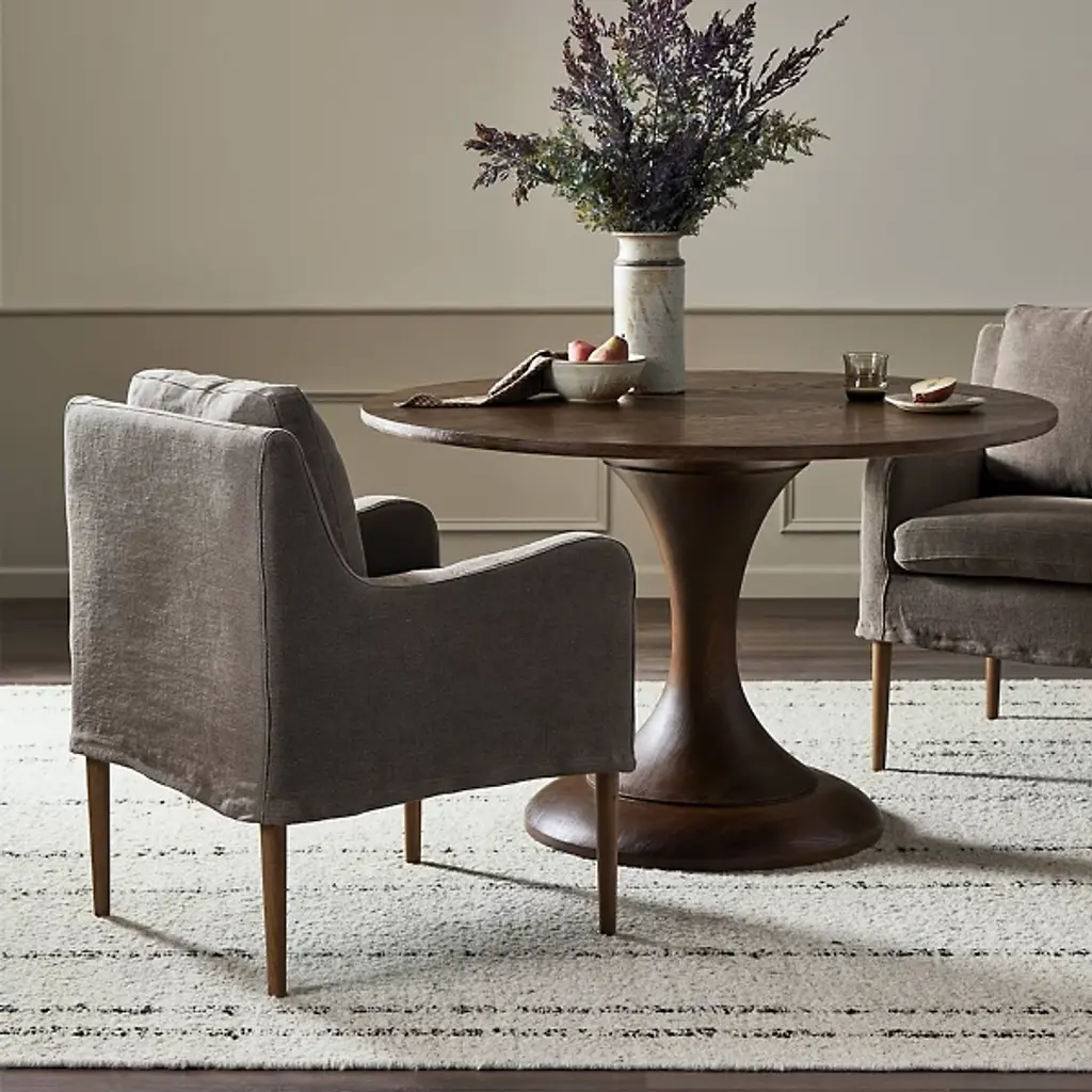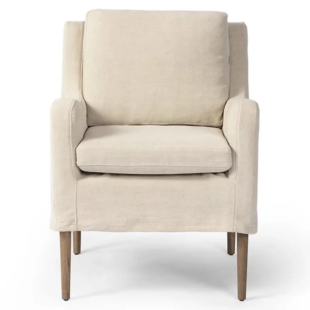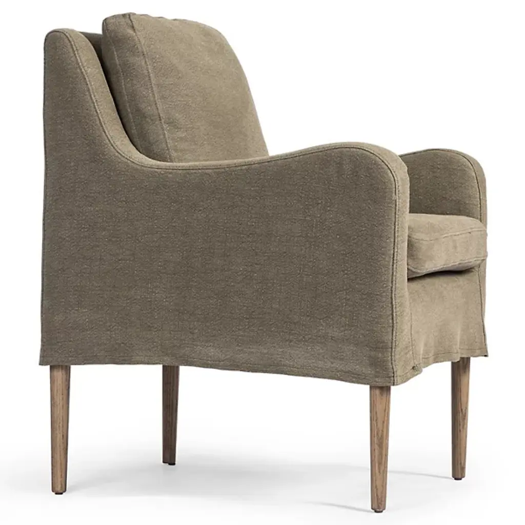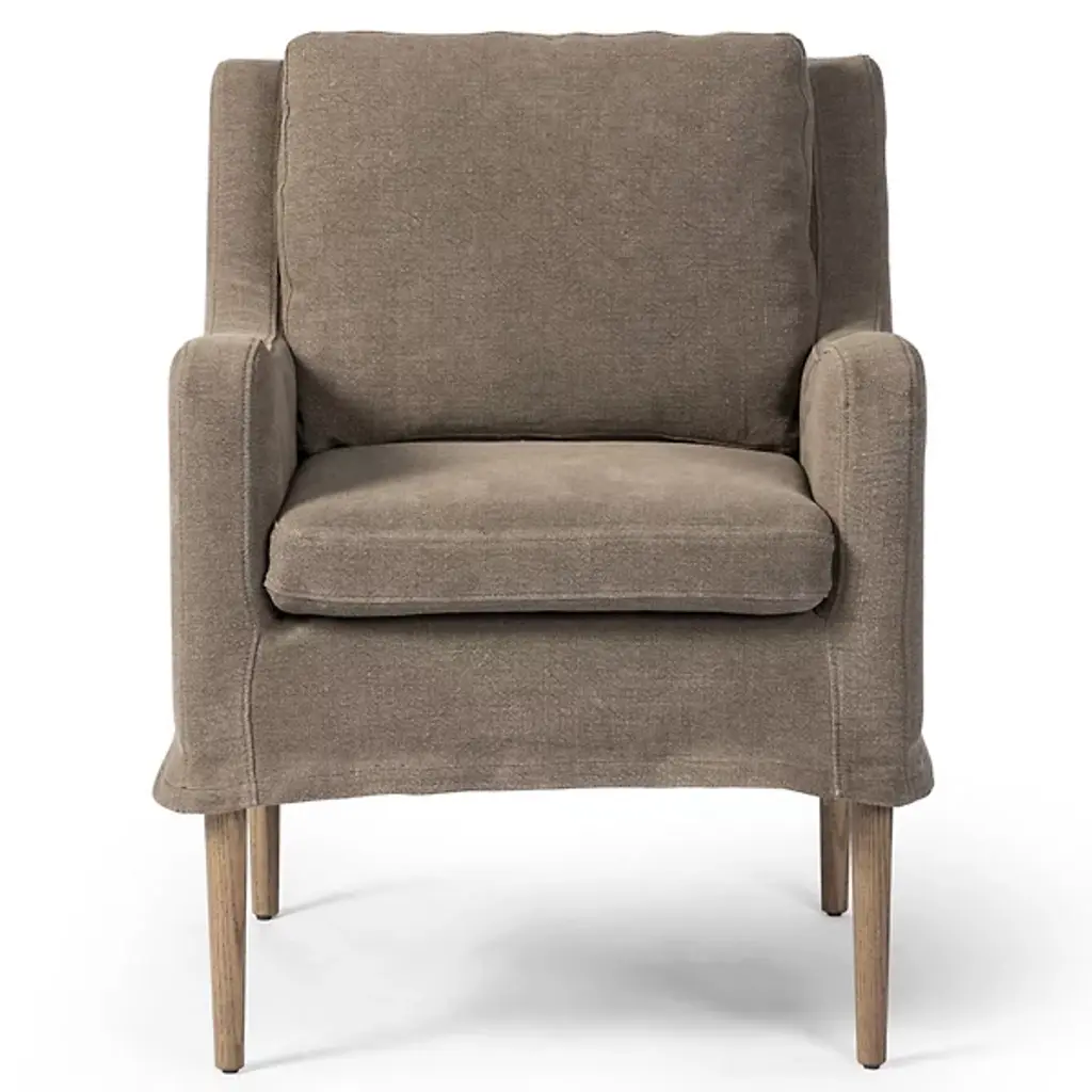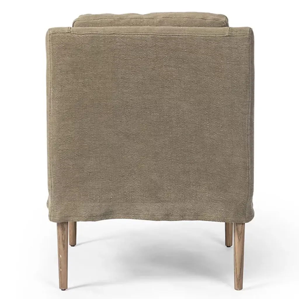 Crafted for comfort and style, the Amber Lewis x Four Hands Aurelia Dining Chair from Four Hands features a sturdy solid oak frame complemented by plush polyester upholstery with flax/linen blend fabric. Its classic design adds an elegant touch to any dining space, while the cushioned seat ensures a cozy seating experience. From a collaboration of Amber Lewis X Four Hands, it is perfect for long dinners and gatherings; this chair seamlessly combines durability with sophistication, making it a versatile addition to your home decor.