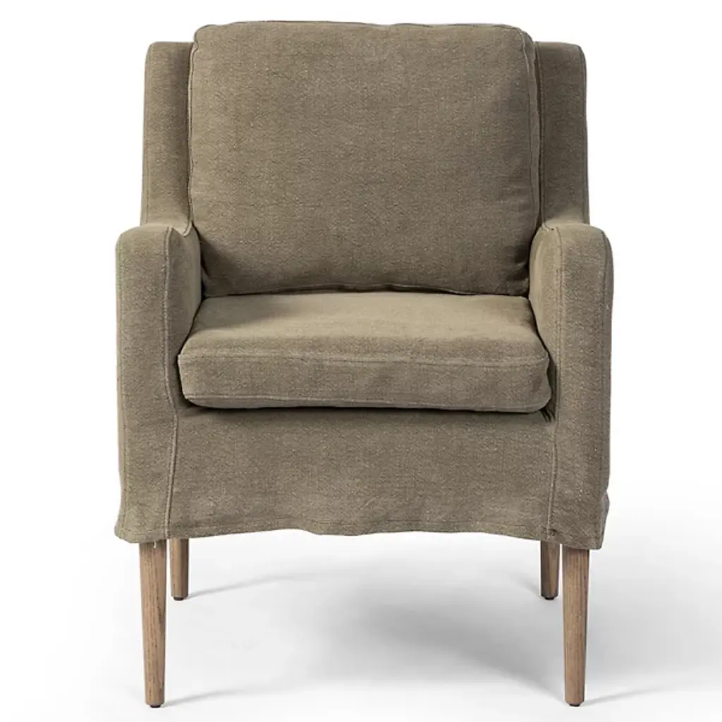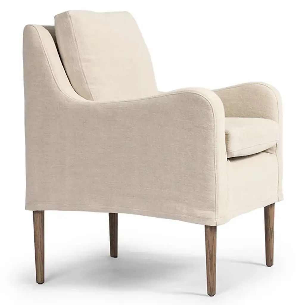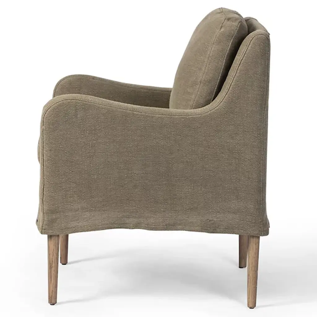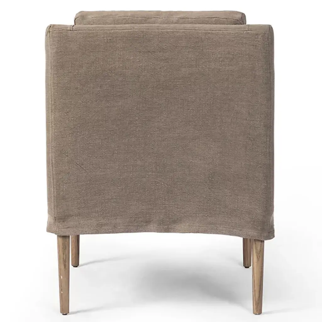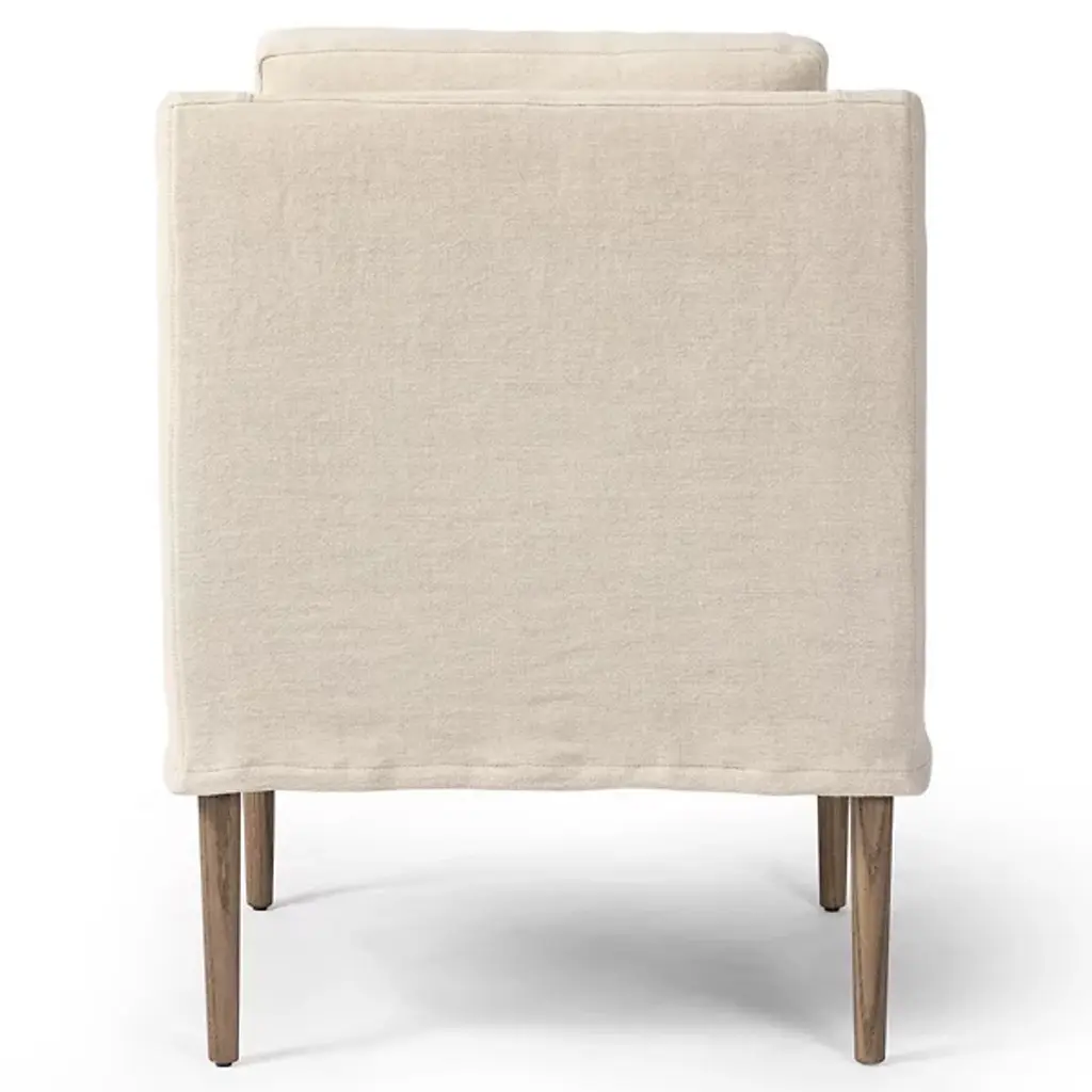 Crafted for comfort and style, the Amber Lewis x Four Hands Aurelia Dining Chair from Four Hands features a sturdy solid oak frame complemented by plush polyester upholstery with flax/linen blend fabric. Its classic design adds an elegant touch to any dining space, while the cushioned seat ensures a cozy seating experience. From a collaboration of Amber Lewis X Four Hands, it is perfect for long dinners and gatherings; this chair seamlessly combines durability with sophistication, making it a versatile addition to your home decor.
