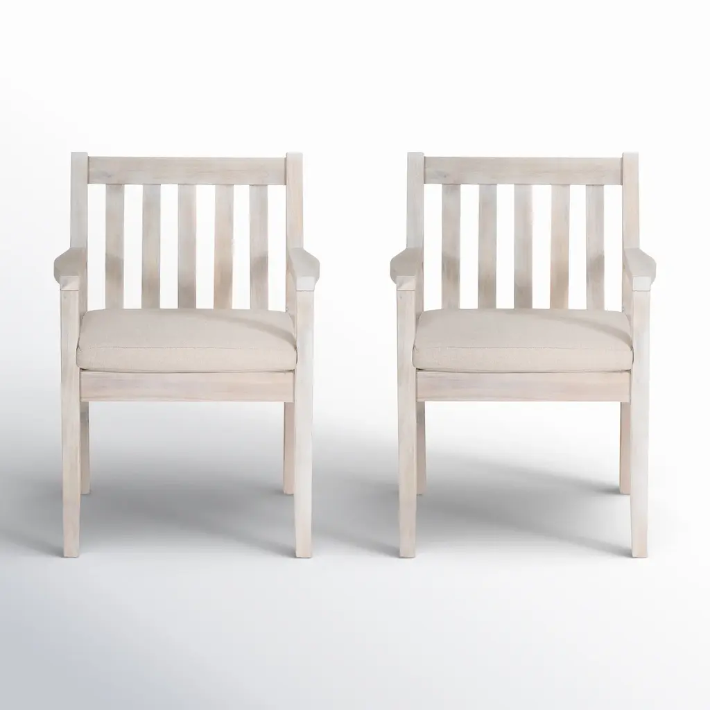 Pull up a chair and savor every moment with this double-troubled dining chair duo! Crafted from acacia wood with a luscious natural oil stain finish, these chairs boast a perfect partnership of style and sturdiness. Sink into luxury with 100% olefin beige cushions, bringing comfort to your dining adventures. These chairs are the ultimate blend of functionality and flair for your dining space!