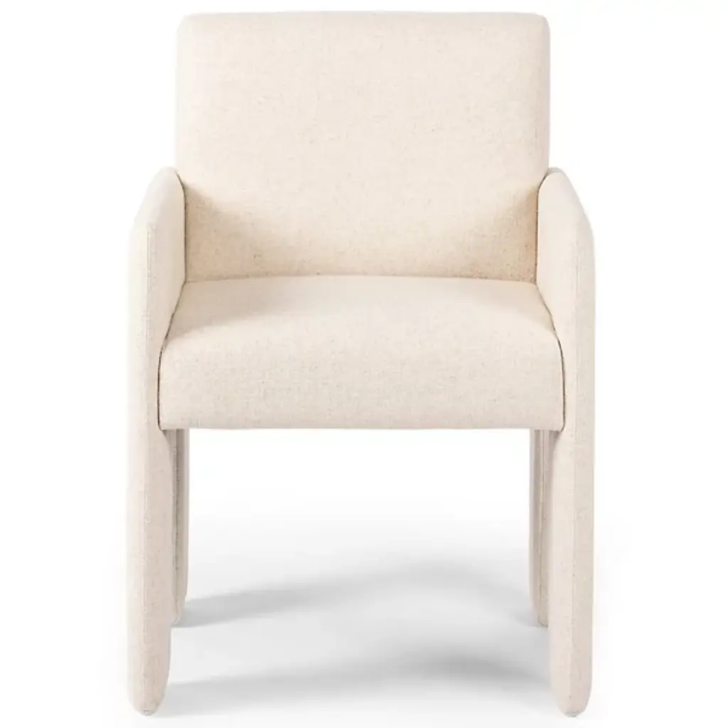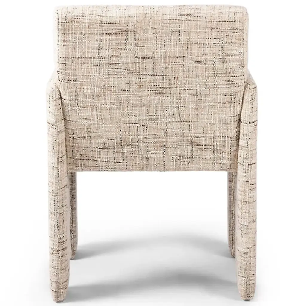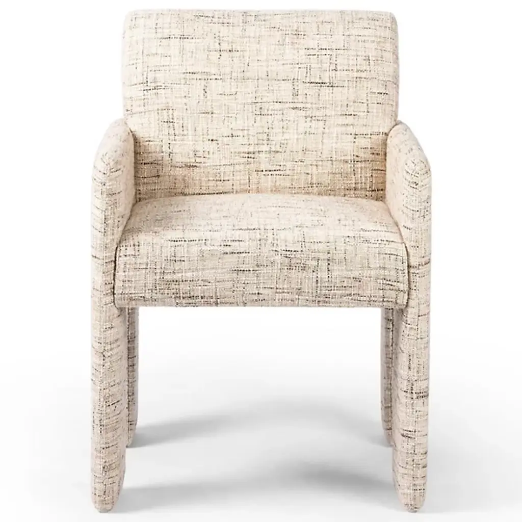 Step up your dining game with the Amur Dining Armchair from Four Hands. Amur has a boxy design with an angular silhouette. Its rectangular cutouts add stylistic flair, making it visually intriguing. Fully upholstered in high-quality fabric and generously padded with polyurethane foam, this dining armchair offers style and comfort for everyday dining experiences. With its blend of mid-century modern and contemporary styles, the ensemble effortlessly merges retro charm with elegance.