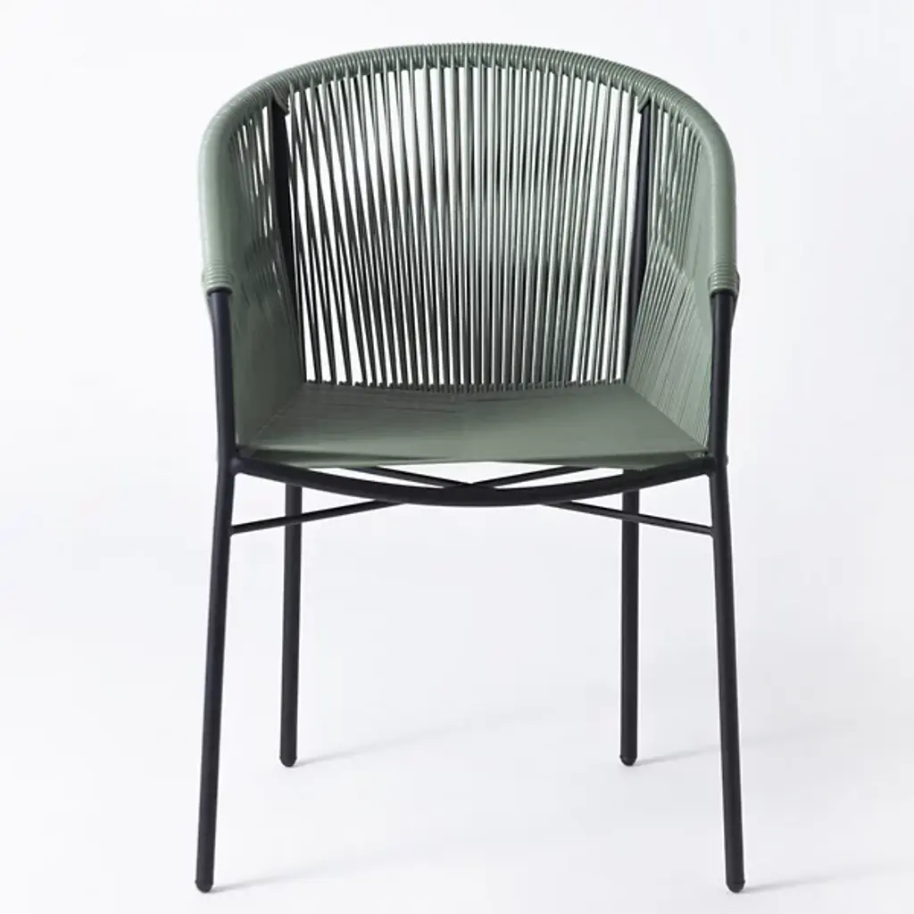 Embrace airy elegance with the Anais Dining Chair from Mexa Design. Paying homage to Mexican design heritage from the 1950s, this chair features a masterfully woven PVC cord seat and back that wraps around a curved, powder-coated steel frame. Made in Mexico, its four-legged construction provides sturdy support while maintaining a visually lighter presence. The retro-inspired design brings a light, adaptable personality to modern dining spaces.