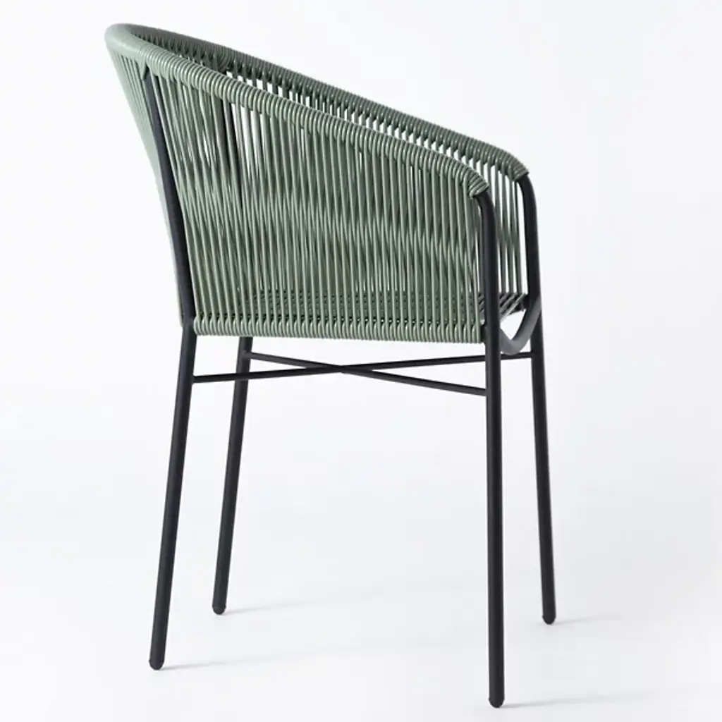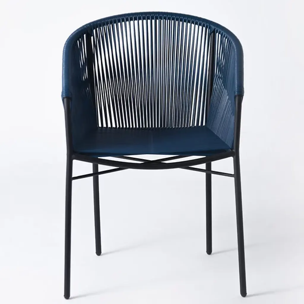 Embrace airy elegance with the Anais Dining Chair from Mexa Design. Paying homage to Mexican design heritage from the 1950s, this chair features a masterfully woven PVC cord seat and back that wraps around a curved, powder-coated steel frame. Made in Mexico, its four-legged construction provides sturdy support while maintaining a visually lighter presence. The retro-inspired design brings a light, adaptable personality to modern dining spaces.