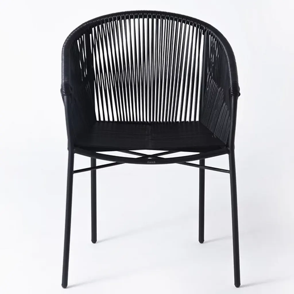 Embrace airy elegance with the Anais Dining Chair from Mexa Design. Paying homage to Mexican design heritage from the 1950s, this chair features a masterfully woven PVC cord seat and back that wraps around a curved, powder-coated steel frame. Made in Mexico, its four-legged construction provides sturdy support while maintaining a visually lighter presence. The retro-inspired design brings a light, adaptable personality to modern dining spaces.