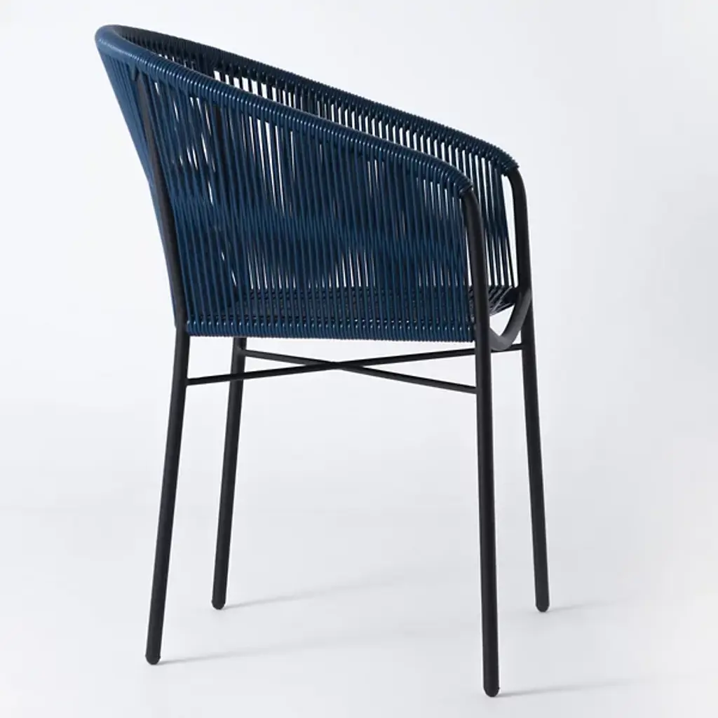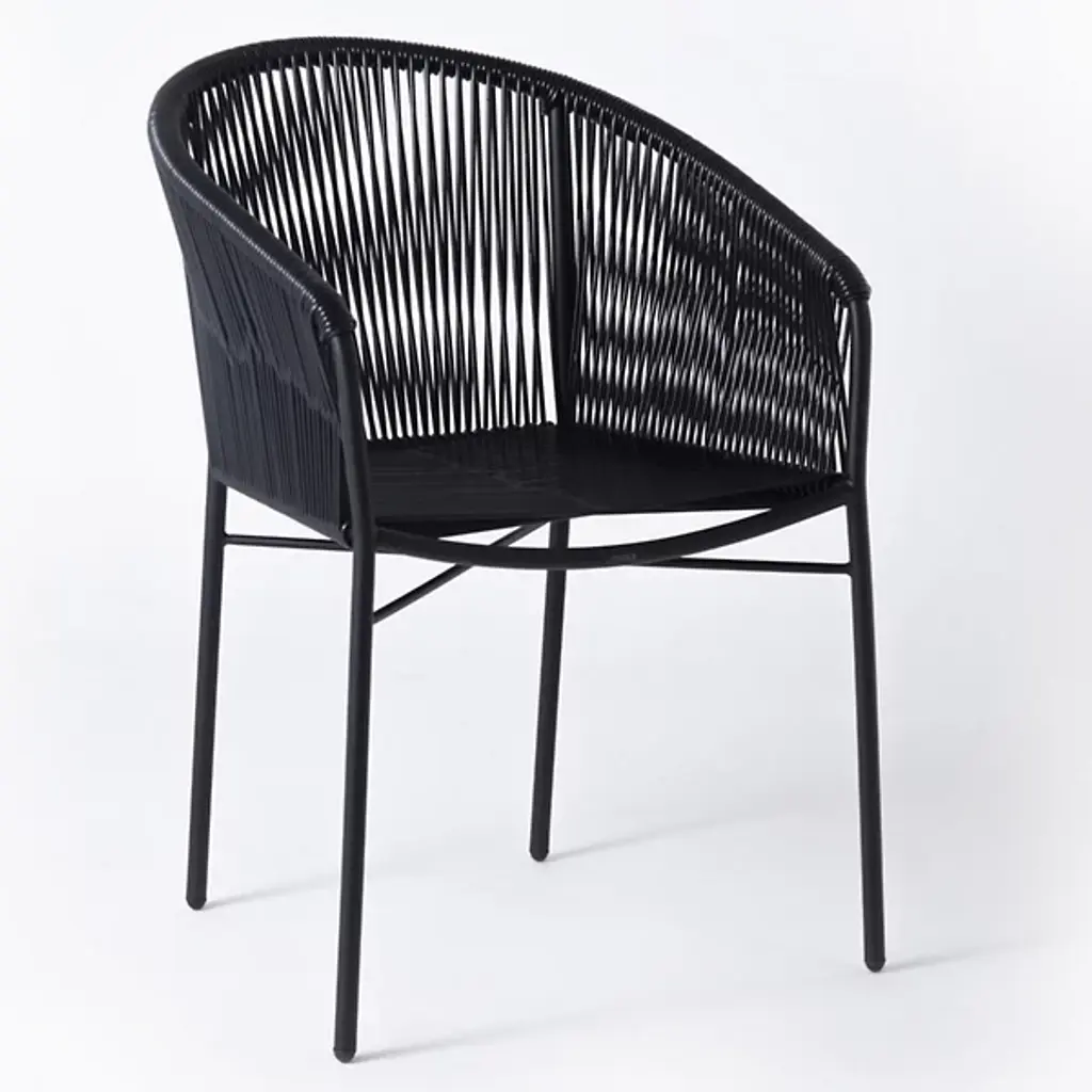 Embrace airy elegance with the Anais Dining Chair from Mexa Design. Paying homage to Mexican design heritage from the 1950s, this chair features a masterfully woven PVC cord seat and back that wraps around a curved, powder-coated steel frame. Made in Mexico, its four-legged construction provides sturdy support while maintaining a visually lighter presence. The retro-inspired design brings a light, adaptable personality to modern dining spaces.