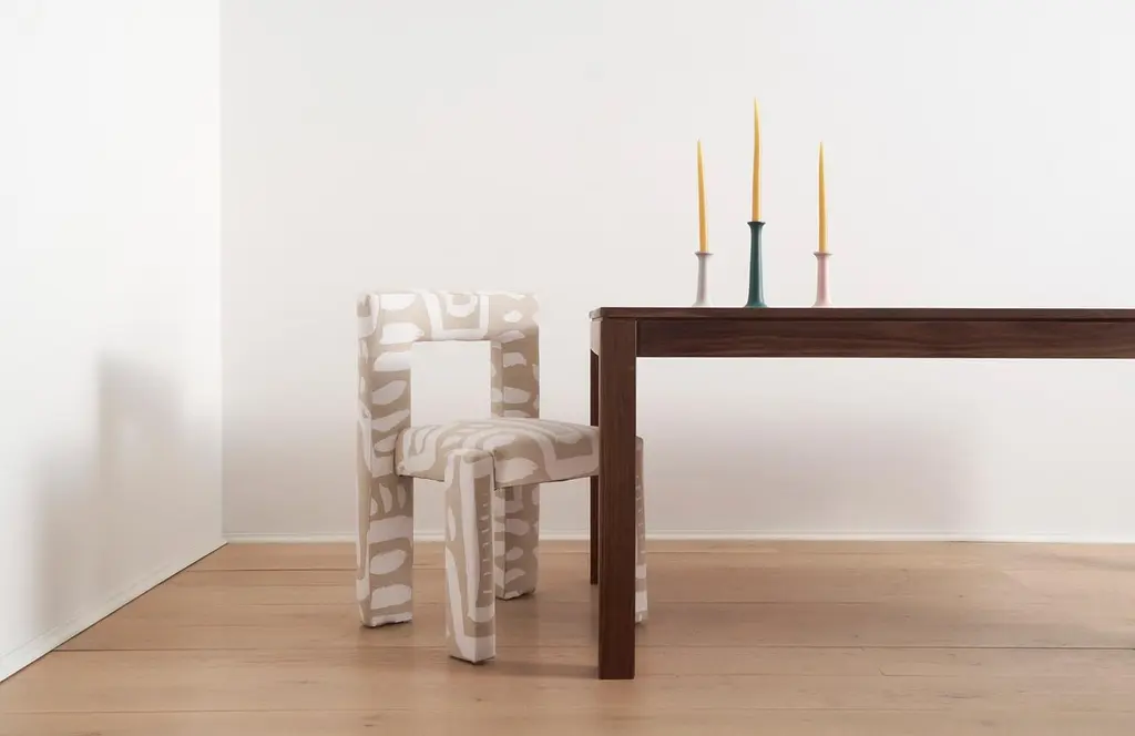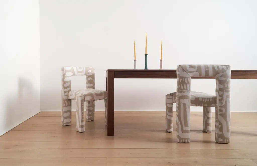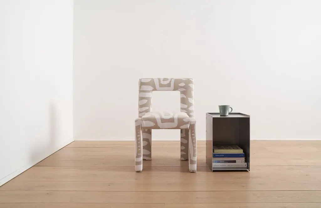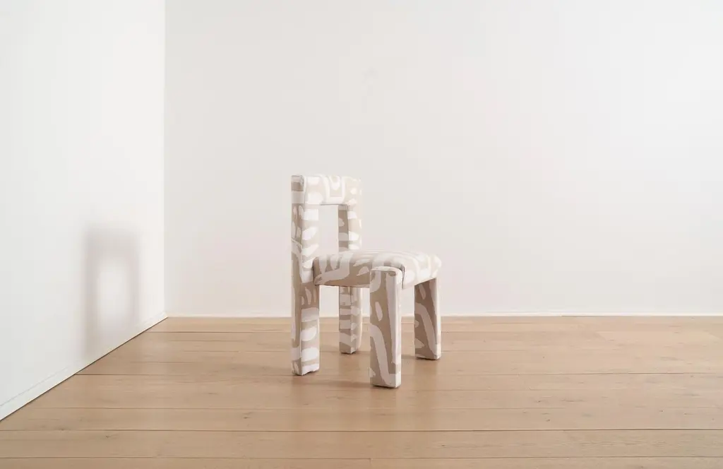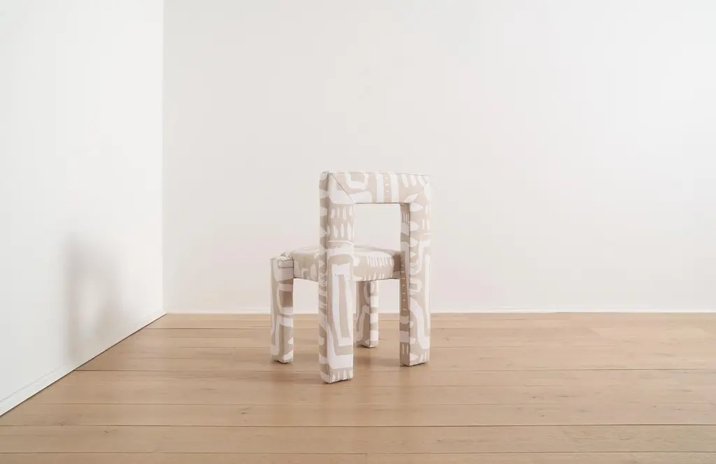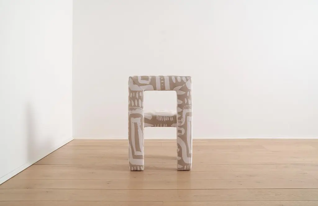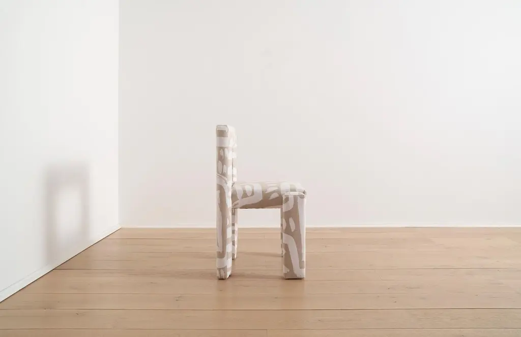 Incorporate this upholstered black and white lounge chair in your living room, or as a bold addition to a dining table or desk. This chair brilliantly balances both form & function — it is not so stiff that you don’t feel comfortable, and not so soft that you don’t feel supported. The black and white fabric was thoughtfully reupholstered in Patrick Mele’s “Grace” fabric. Named “Grace” in honor of Grace Jones, whose body was famously painted by Keith Haring, the fabric’s vibrance depicts both Haring’s iconographic visual movement and Grace’s exquisitely singular persona.The Angle II Series is a graduation from its namesake Angle collection via the addition of cut-outs to highlight negative space, while remaining uniquely comfortable and functional. Simple and striking, this chair combines an appreciation for elegant, yet practical design with the best qualities of American manufacturing. Designed with less-than-spacious living spaces in mind, this work undoubtedly elevates one’s style without the sacrifice of comfort.-Lifetime Warranty: Every TRNK frame and seating suspension system includes a lifetime warranty (residential use only)-Designed in NYC, constructed in Los Angeles, CA-Rock-solid CAD-engineered kiln-dried hardwood frame-Interlocking mortise and tenon joints-100k+ double rub tested fabric that’s able to withstand years of use-Greenguard Gold Certified: Meets or exceeds stringent chemical and VOC emissions standards-Fabric materials: 45% Cotton, 28% Linen, 27% Rayon