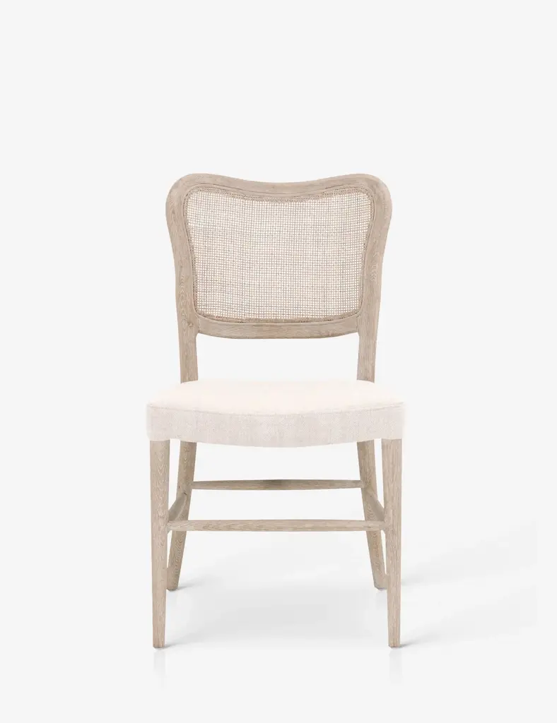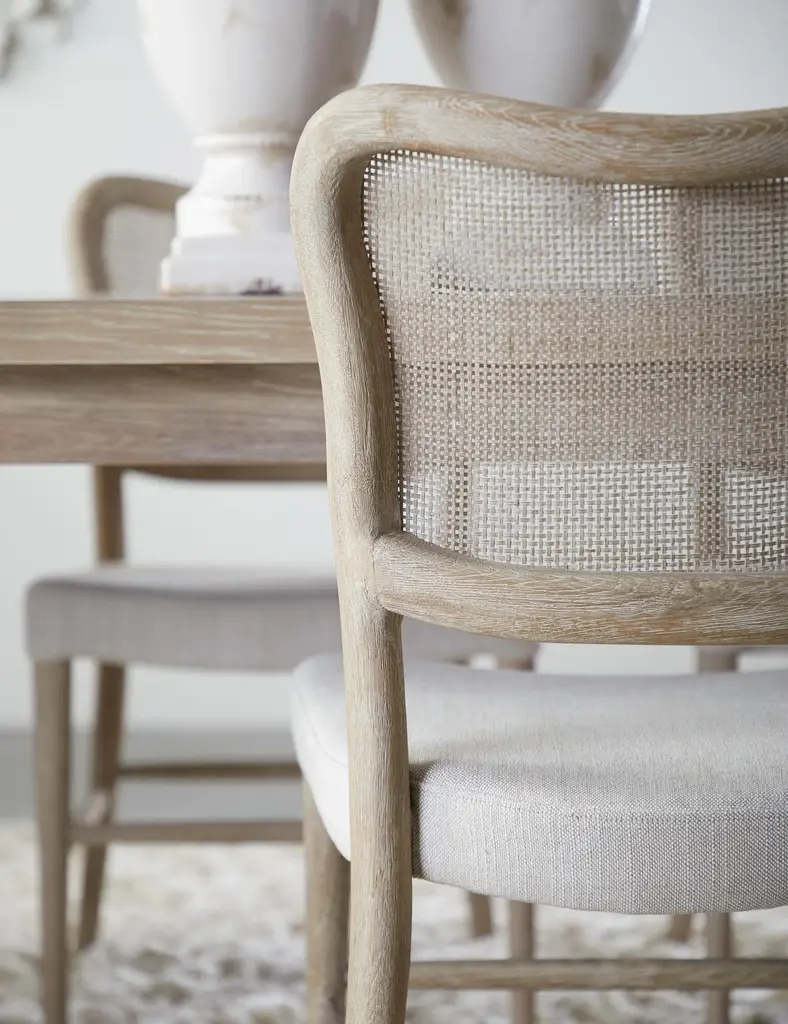 With a classic pairing of wood grain and cane, these dining chairs are a stylish addition to your table. An upholstered seat finishes the shaped frame with comfort and elegance. These dining chairs are sold as a set of two.