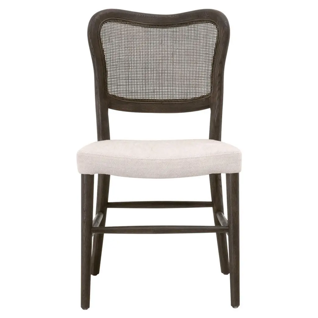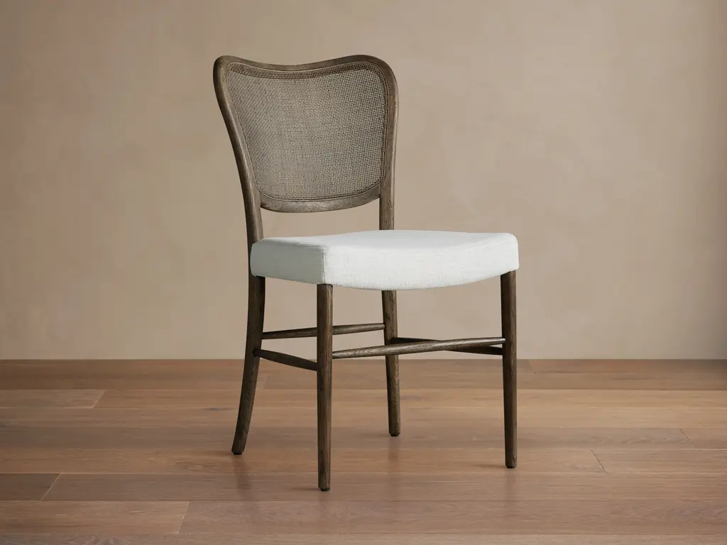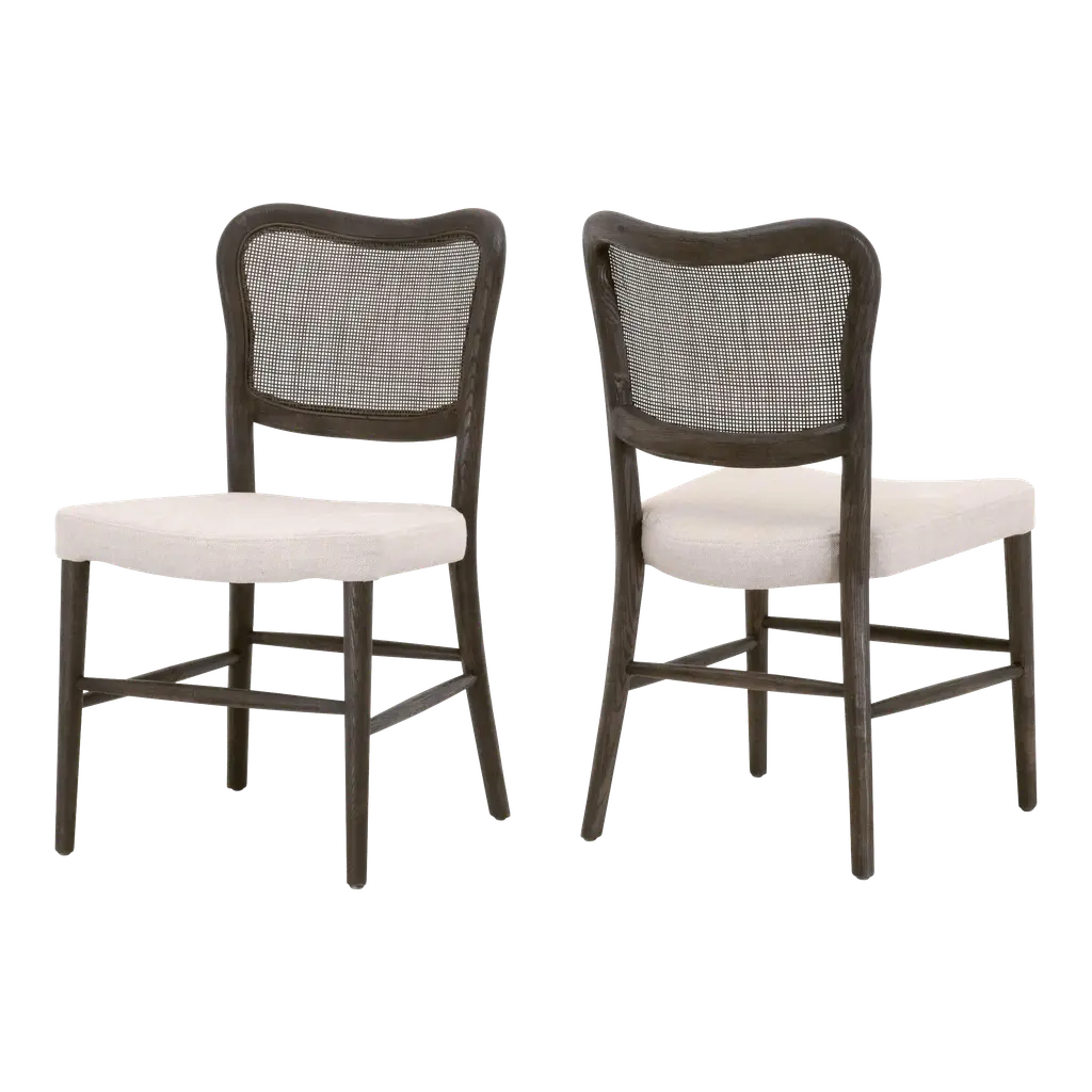 With a classic pairing of wood grain and cane, these dining chairs are a stylish addition to your table. An upholstered seat finishes the shaped frame with comfort and elegance. These dining chairs are sold as a set of two.