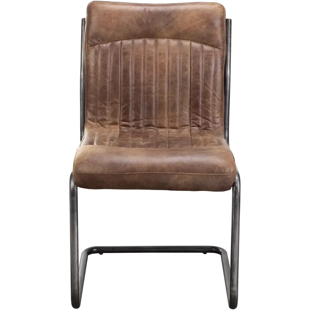 Industrial leather luxury. The Ansel dining chair’s sturdy iron frame is a bold statement, with distressed easy-to-clean top-grain leather upholstery bringing an elevated comfort to the setup. With ultra-soft foam padding ensuring a restful seat, allow Ansel to add contemporary cool to your dining area.